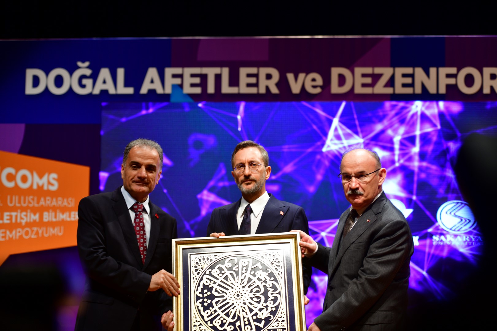 Oysa ki, bakın aksam herkesin kabul ettiği kadar aksamdır.’ Buna rağmen, gözleri ve gönülleri körelmiş uluslararası kurumlar, ajanslar, liderler… gözümüzün içine baka baka yalan söylüyorlar. Mazlumu zalim, bebekleri terörist gösterecek kadar yalan söylüyorlar. Savaşın silahsız kuvvetlerini oluşturan medya ve uluslararası ajanslar, ekranlarımıza kirli ve yalan haberleri insafsızca boca ediyorlar. Zihinlerimizi o zalim ve hiçbir hukuk tanımayan terör devletine karşı yıkamak, o kanlı elleri konvansiyonel ve yeni medyalarıyla temizlemek için cephedeki terör devleti askerlerinden daha fazla gayret gösteriyorlar. Neyse ki, şükür ki hala uyanık olan kişiler ve kurumlarımız var. Bebekler ölürken uyuyan dünyayı uyandırmak için tüm varlığı ile mücadele veren bir kurum var. Terör devletinin yalanlarını bir bir çürüten ve tüm dünyaya karşı gerçekleri gün gibi ortaya çıkaran Cumhurbaşkanlığı İletişim Başkanlığı var. Hem kurumsal, hem de kişisel olarak hedef olmayı göze alarak, küresel medya tekellerinin ve terör devletinin dezenformatik haberlerini çürütmeye devam eden cesur yürekler var. Sakarya Üniversitesi İletişim Fakültesi olarak Uluslararası İletişim Bilimleri Sempozyumumuzun ana temasını Doğal Afetler ve Dezenformasyon olarak belirledik. Özellikle afet ve savaş dönemlerinde bilgi kirliğinin arttığı hepimizin malumudur.Bizler iletişimciler olarak her zaman ve her hâlükârda doğrudan, haktan ve hakikatten yana olmak zorundayız. Bizler sözün gücüne inanıyoruz.Sempozyuma onur konuğu olarak katılan Cumhurbaşkanlığı İletişim Başkanı Prof. Dr. Fahrettin Altun ise yaptığı konuşmada önemli mesajlar verdi.