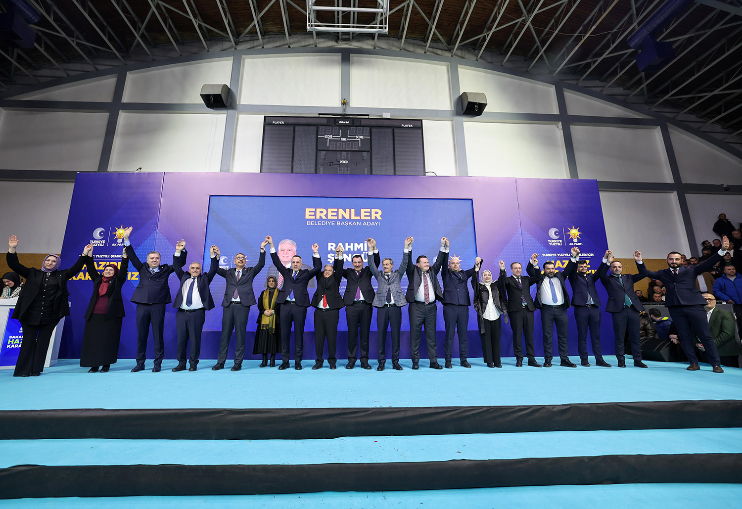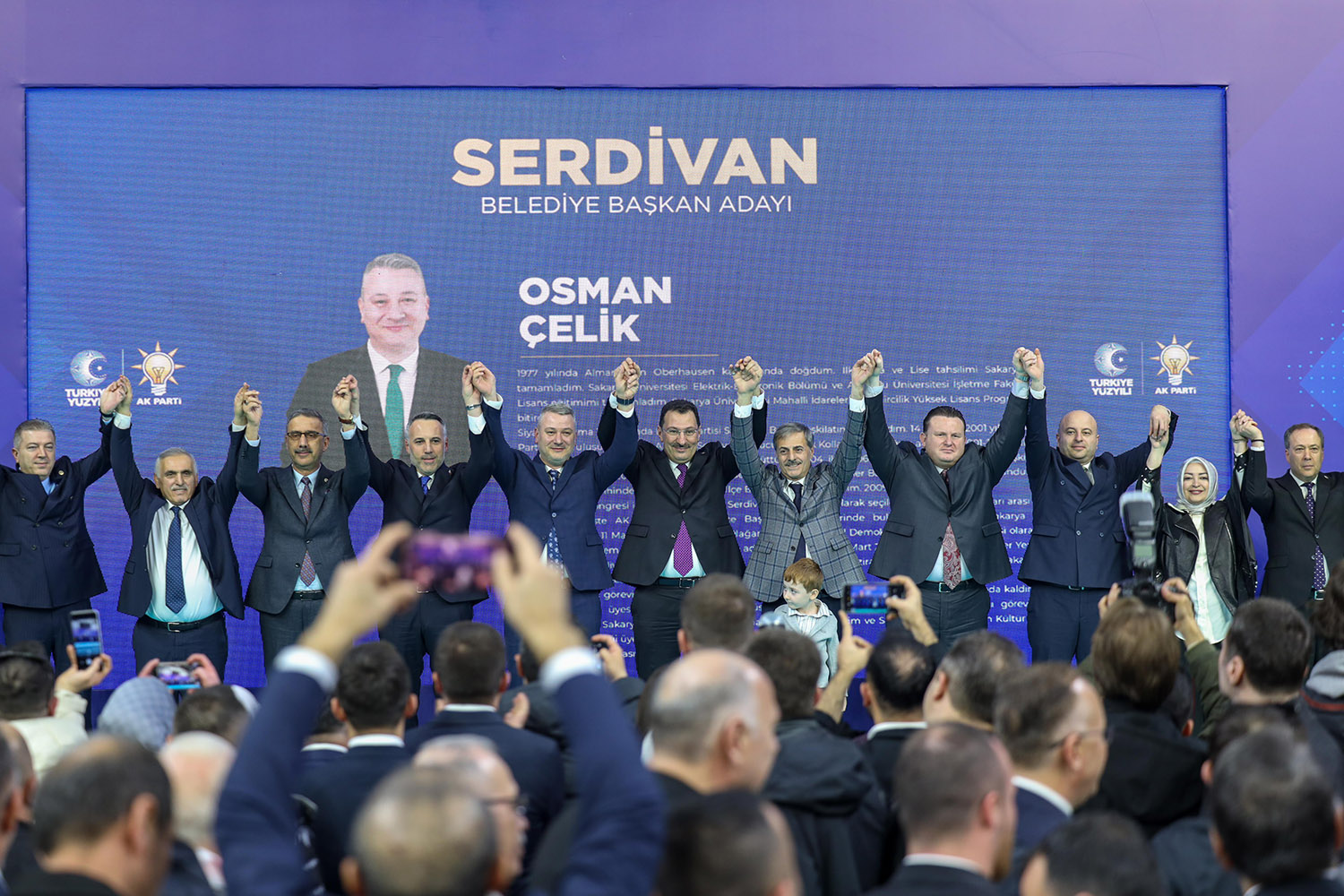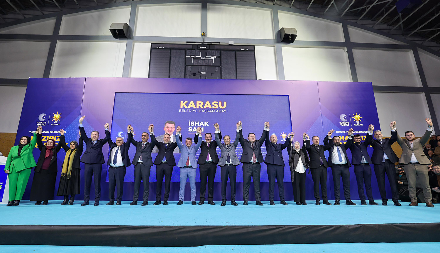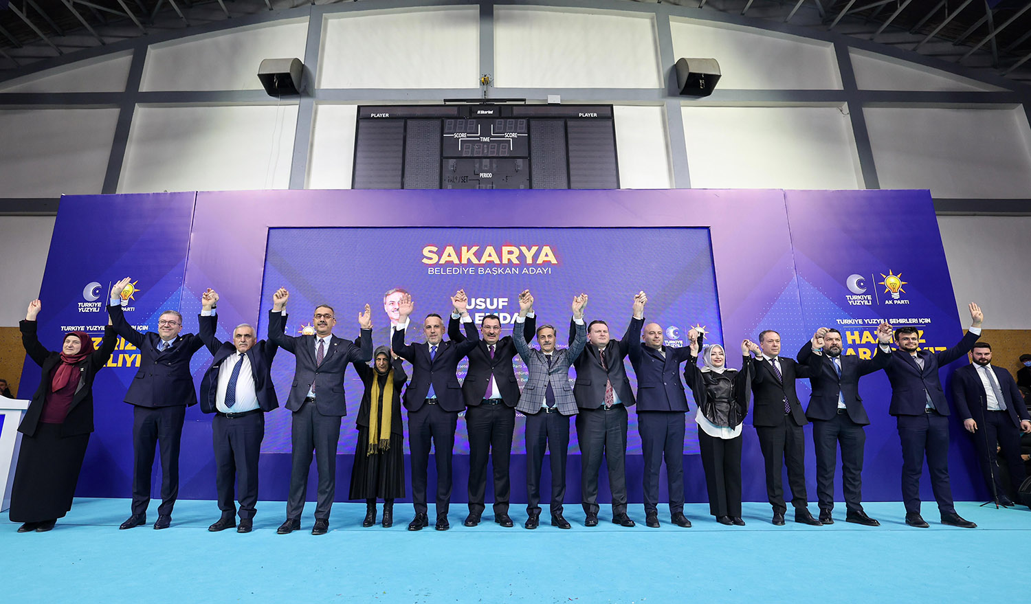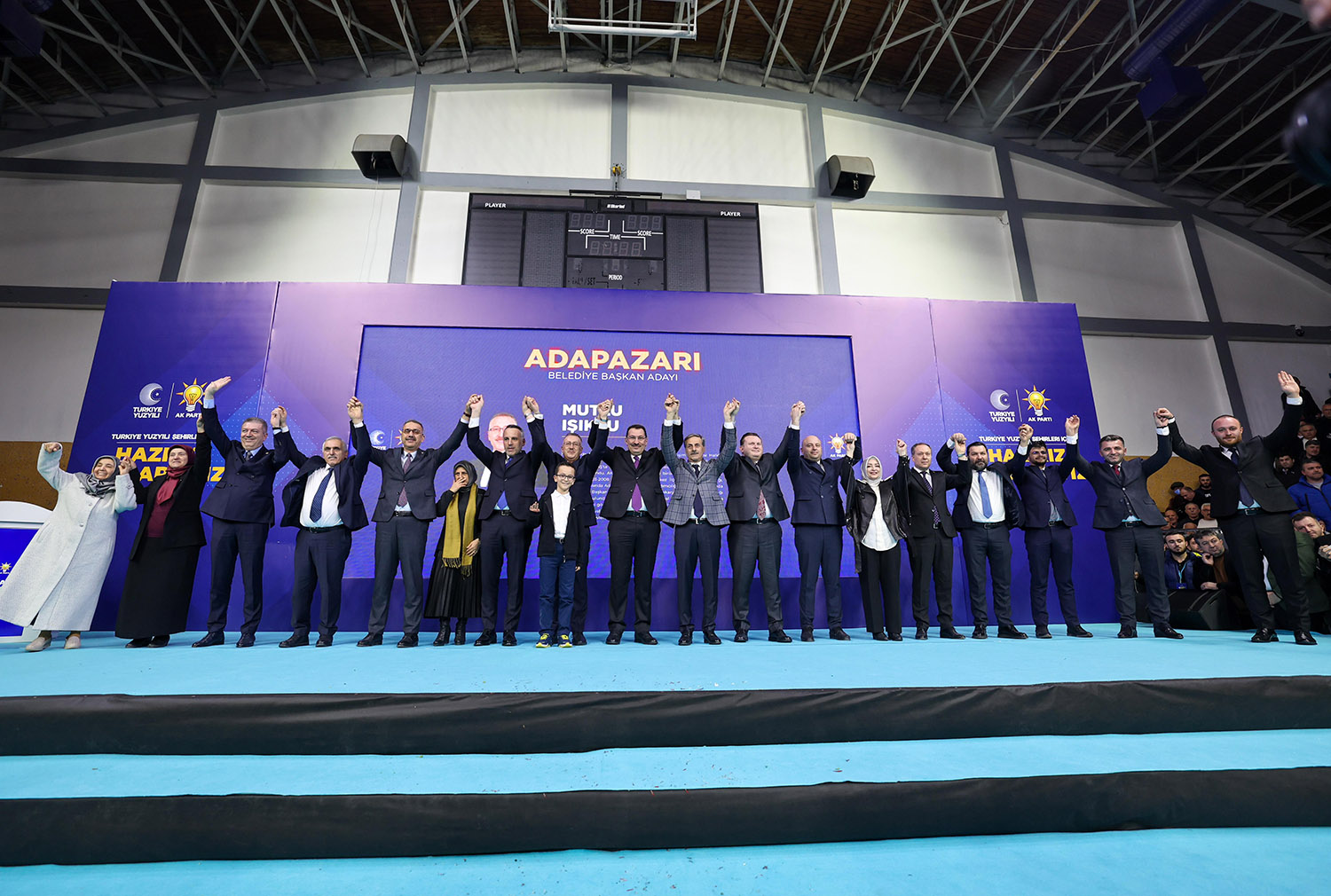 31 Mart Yerel Seçimler kapsamında Sakarya’da aday çalışmalarını tamamlayan AK Parti, 16 ilçenin başkan adaylarını coşkulu bir törenle kamuoyuna tanıttı. Atatürk Kapalı Spor Salonu’nda binlerce partilinin katılımıyla gerçekleştirilen aday tanıtım toplantısına, AK Parti Genel Başkan Yardımcısı Ali İhsan Yavuz, MHP Grup Başkanvekili ve Sakarya Milletvekili Muhammed Levent Bülbül, Sakarya Milletvekilleri Lütfi Bayraktar, Çiğdem Erdoğan, Ali İnci, Ertuğrul Kocacık, Murat Kaya, Sakarya Büyükşehir Belediye Başkanı Ekrem Yüce, AK Parti İl Başkanı Yunus Tever, İl Kadın Kolları Başkanı Yasemin Turan, İl Gençlik Kolları Başkanı Hüseyin Serdar Akgün, MHP İl Başkanı Oğuz Alkaş, ilçe belediye başkanları ve adayları, AK Parti ve MHP İlçe Teşkilat üyeleri, Muhtarlar, STK ve Oda temsilcileri ile çok sayıda basın mensubu katıldı.