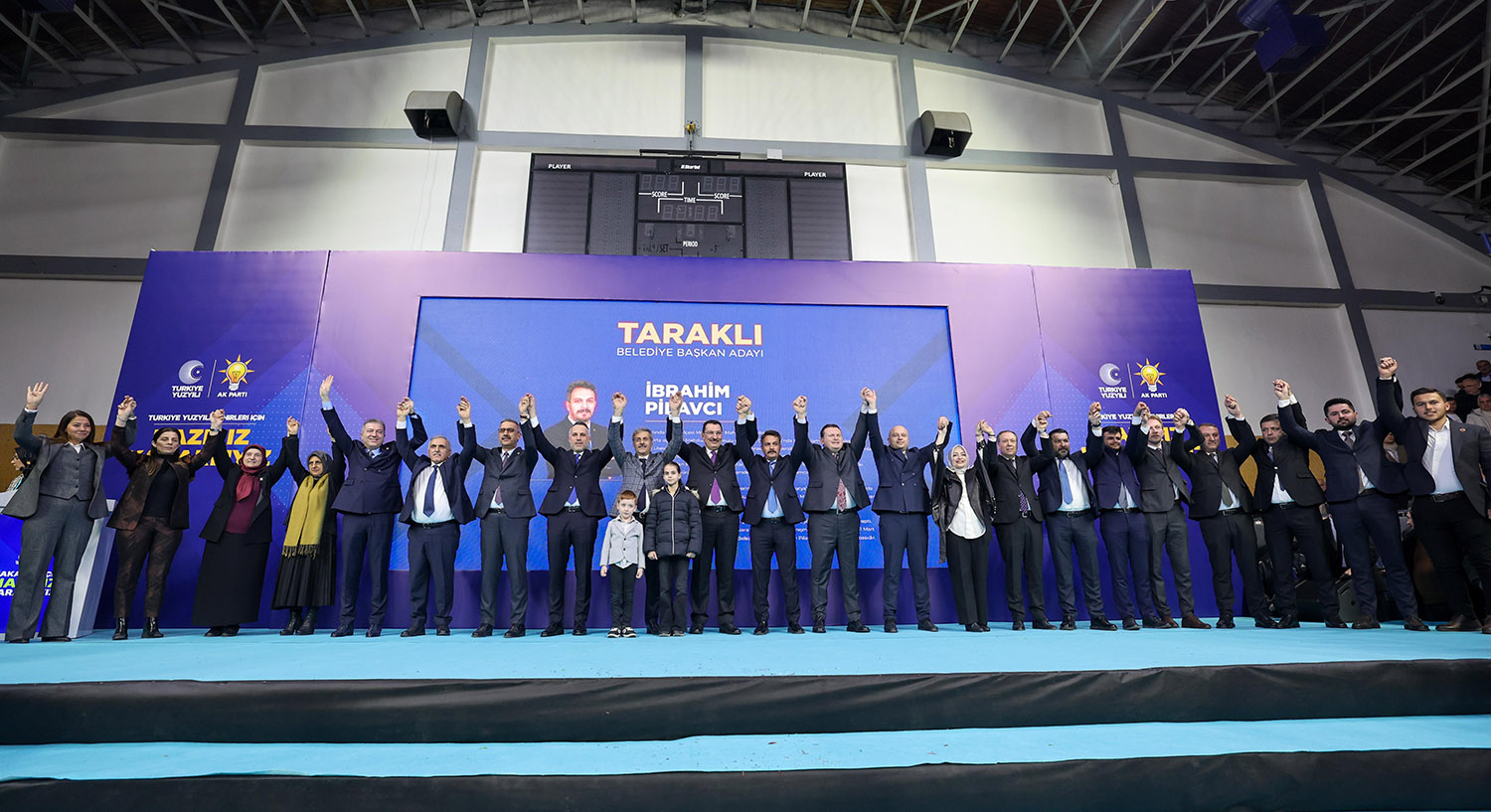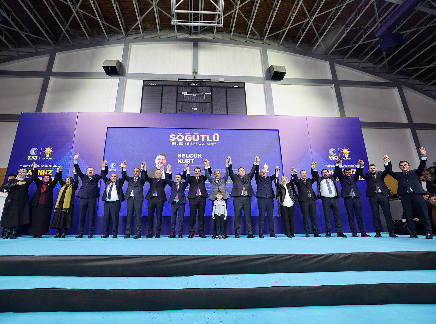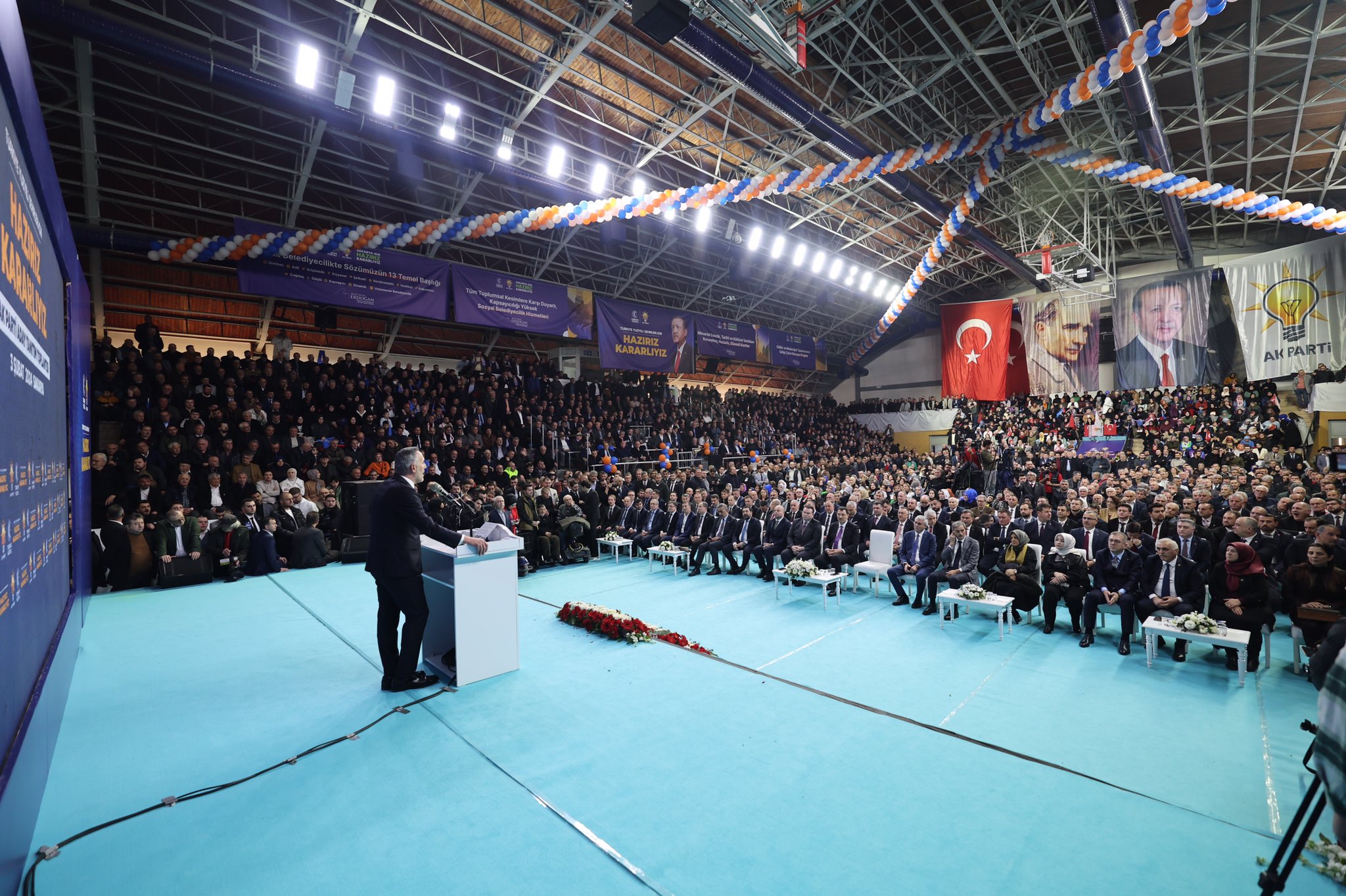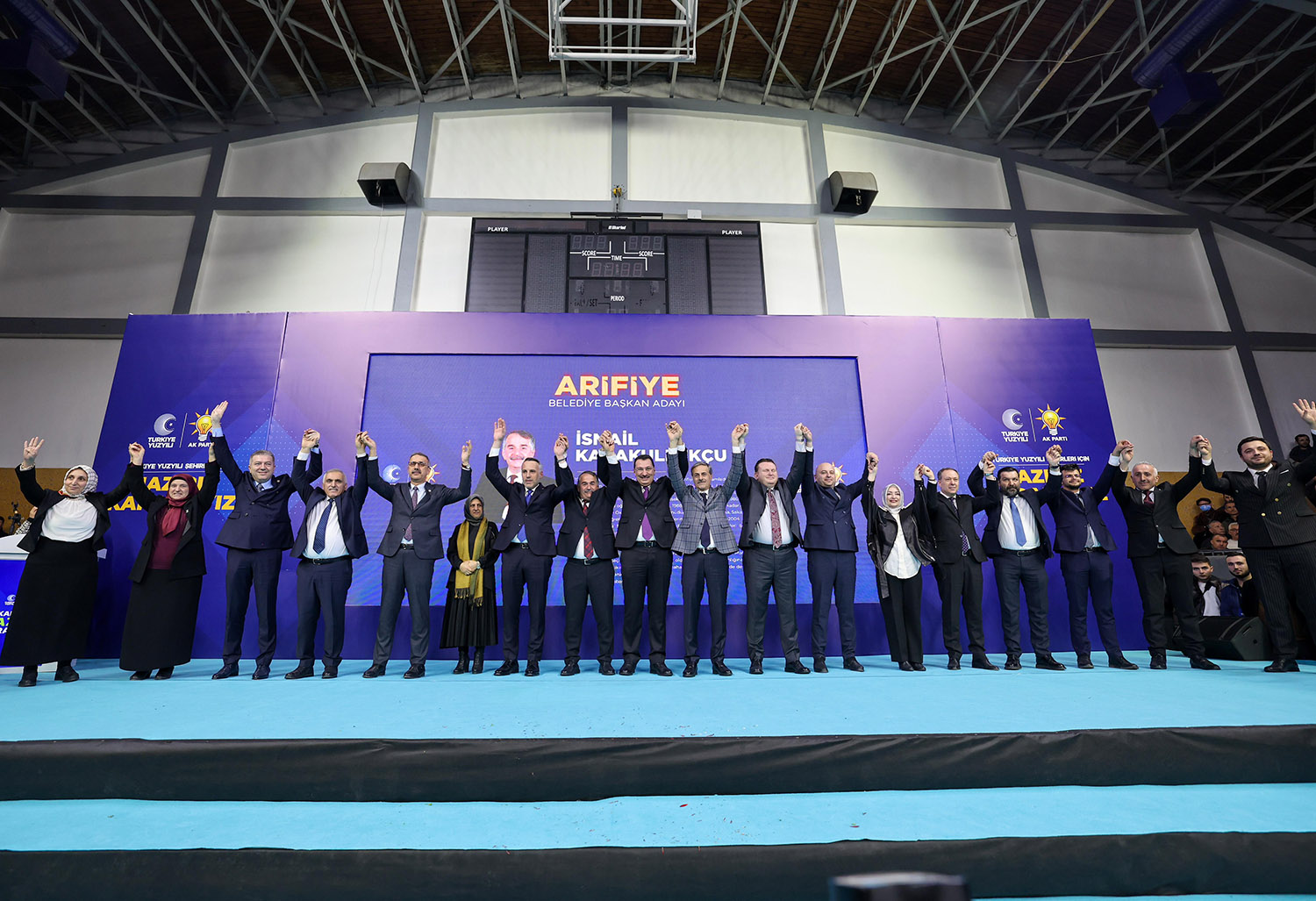 31 Mart Yerel Seçimler kapsamında Sakarya’da aday çalışmalarını tamamlayan AK Parti, 16 ilçenin başkan adaylarını coşkulu bir törenle kamuoyuna tanıttı. Atatürk Kapalı Spor Salonu’nda binlerce partilinin katılımıyla gerçekleştirilen aday tanıtım toplantısına, AK Parti Genel Başkan Yardımcısı Ali İhsan Yavuz, MHP Grup Başkanvekili ve Sakarya Milletvekili Muhammed Levent Bülbül, Sakarya Milletvekilleri Lütfi Bayraktar, Çiğdem Erdoğan, Ali İnci, Ertuğrul Kocacık, Murat Kaya, Sakarya Büyükşehir Belediye Başkanı Ekrem Yüce, AK Parti İl Başkanı Yunus Tever, İl Kadın Kolları Başkanı Yasemin Turan, İl Gençlik Kolları Başkanı Hüseyin Serdar Akgün, MHP İl Başkanı Oğuz Alkaş, ilçe belediye başkanları ve adayları, AK Parti ve MHP İlçe Teşkilat üyeleri, Muhtarlar, STK ve Oda temsilcileri ile çok sayıda basın mensubu katıldı.