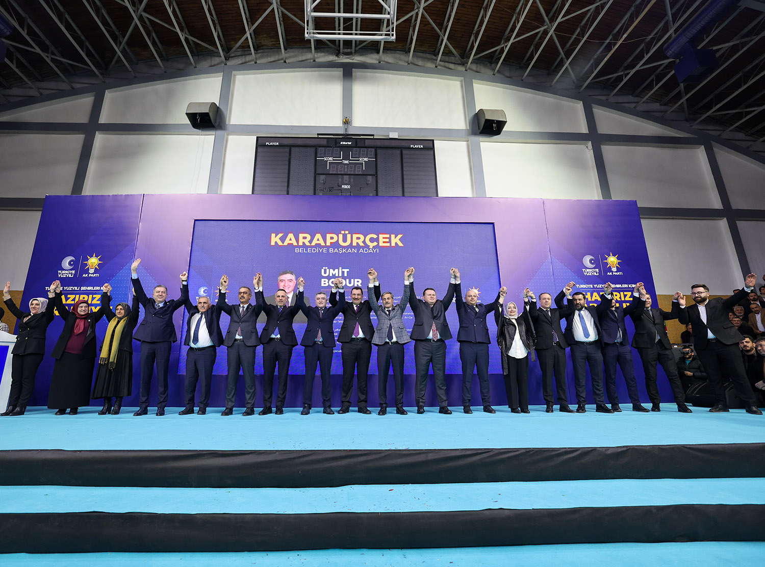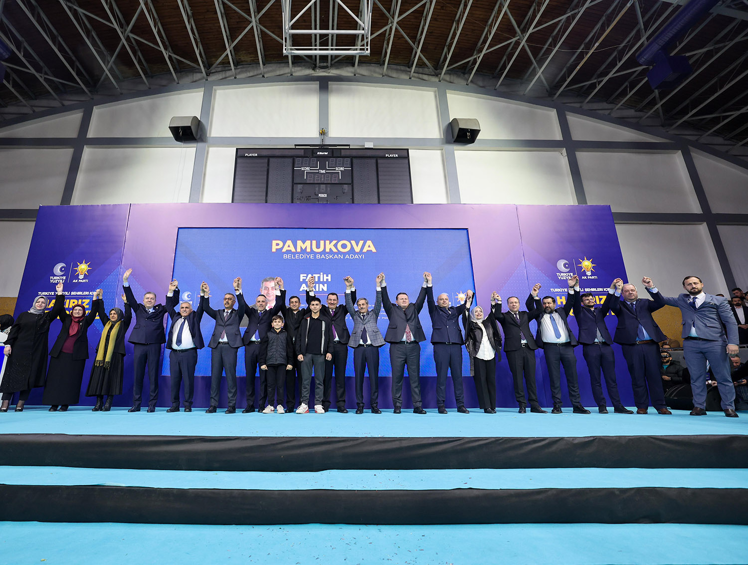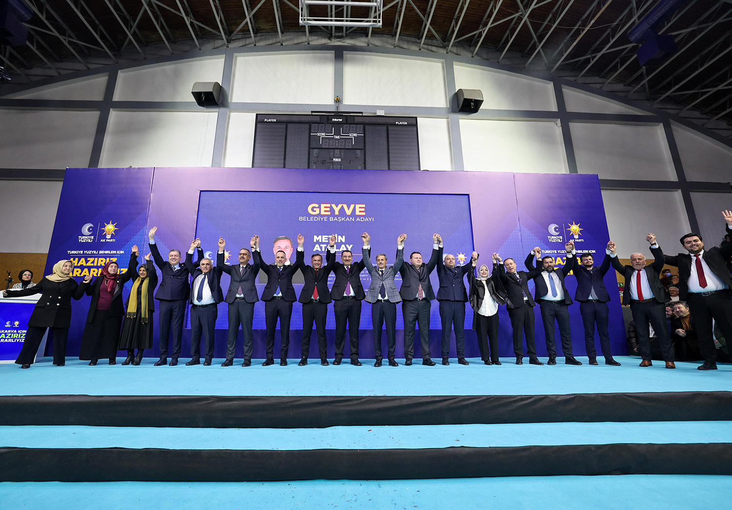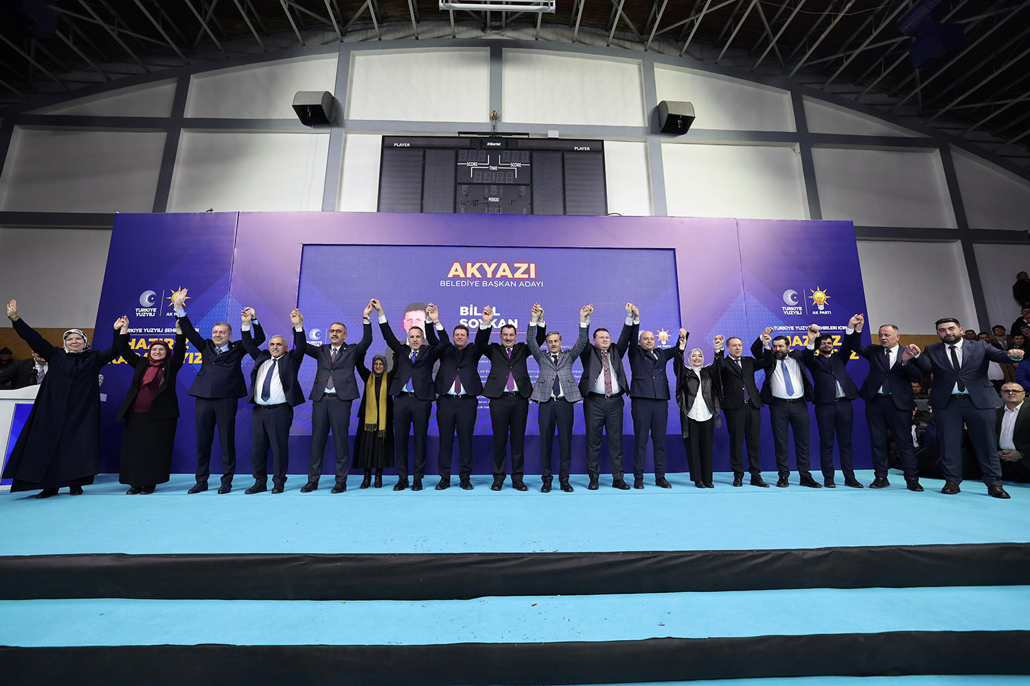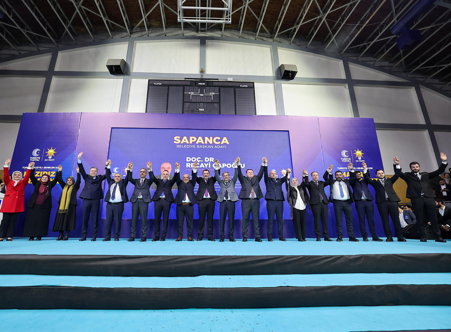 31 Mart Yerel Seçimler kapsamında Sakarya’da aday çalışmalarını tamamlayan AK Parti, 16 ilçenin başkan adaylarını coşkulu bir törenle kamuoyuna tanıttı. Atatürk Kapalı Spor Salonu’nda binlerce partilinin katılımıyla gerçekleştirilen aday tanıtım toplantısına, AK Parti Genel Başkan Yardımcısı Ali İhsan Yavuz, MHP Grup Başkanvekili ve Sakarya Milletvekili Muhammed Levent Bülbül, Sakarya Milletvekilleri Lütfi Bayraktar, Çiğdem Erdoğan, Ali İnci, Ertuğrul Kocacık, Murat Kaya, Sakarya Büyükşehir Belediye Başkanı Ekrem Yüce, AK Parti İl Başkanı Yunus Tever, İl Kadın Kolları Başkanı Yasemin Turan, İl Gençlik Kolları Başkanı Hüseyin Serdar Akgün, MHP İl Başkanı Oğuz Alkaş, ilçe belediye başkanları ve adayları, AK Parti ve MHP İlçe Teşkilat üyeleri, Muhtarlar, STK ve Oda temsilcileri ile çok sayıda basın mensubu katıldı.
