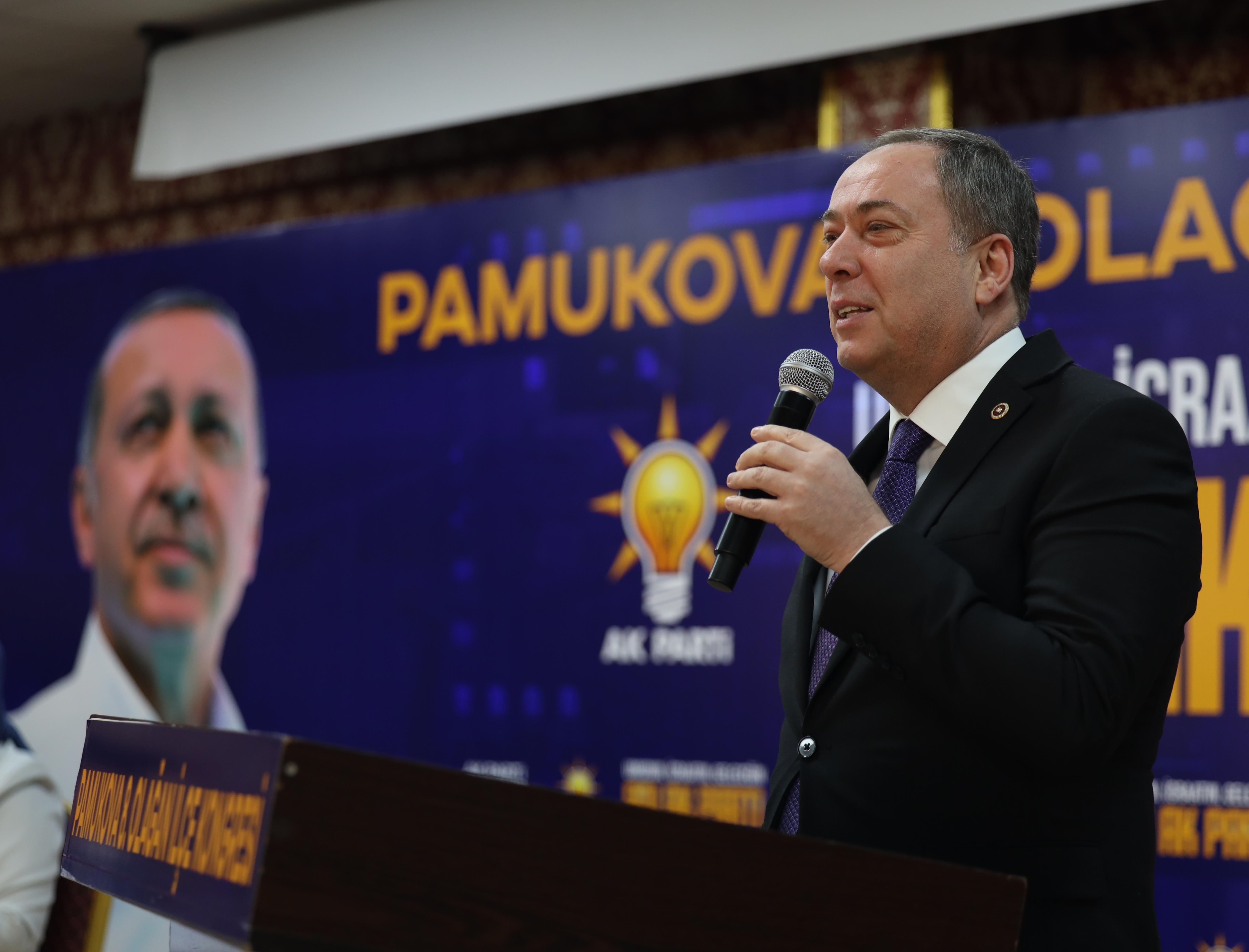Bir dava hareketiMilletvekili Murat Kaya, “Allah heyecanımızı daim kılsın. AK parti bir dava hareketi ve bu dava sizlerle birlikte güzel. Bizler Sayın Cumhurbaşkanımız ve davamızın büyükleriyle durmadan çalışmaya devam edeceğiz. Pamukova biliyorsunuz tarımın geliştiği bir ilçe. Ben burada bir müjdeyi de paylaşmak istiyorum, inşallah kısa zamanda kapalı sistem sulama sistemini ilçemize kazandıracağız. Bizler Ankara’da tüm belediye başkanlarımız için mücadele vermeye devam ediyoruz. Eğer bir yerde sorun varsa Cumhurbaşkanımızın ifade ettiği gibi sorun bizlerdedir. Biz bu konuda kendimizi gözden geçirerek bu davayı aynı heyecanla sürdürmeye devam edeceğiz” dedi.