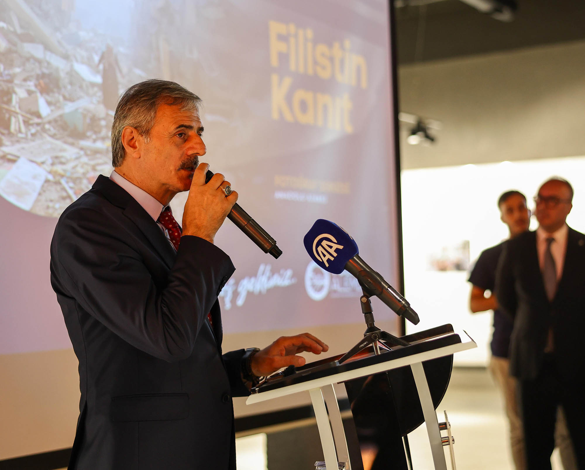 Mücadelemizi sürdüreceğiz21. yüzyılda dünyanın gözü önünde soykırım işlendiğini dile getiren Anadolu Ajansı Genel Müdürü Serdar Karagöz, “Teknolojinin hayatımıza girmesiyle birlikte hayatımız kolaylaştı ancak tüm dünyanın gözü önünde bu yüzyılda soykırım uygulanıyor. 166 gazeteci bu çatışmalarda hayatını kaybetti. Bizde Anadolu Ajansı olarak bir basın şehidi verdik. Arkadaşlarımız kahramanlık örneği göstererek halen daha bölgede. Anadolu Ajansı olarak elimizden gelenin fazlasını da yapmaya, bu uğurda şehit vermiş bir kurum olarak elimizden gelenin en iyisini yapmaya devam edeceğiz. Zulümler bitmez. Hiçbir zaman bitmeyecek. Birileri bu zulme karşı mücadele etmeye devam edecek. Bizim mücadelemiz, inşallah gelecek kuşaklara da ilham olur.” dedi.