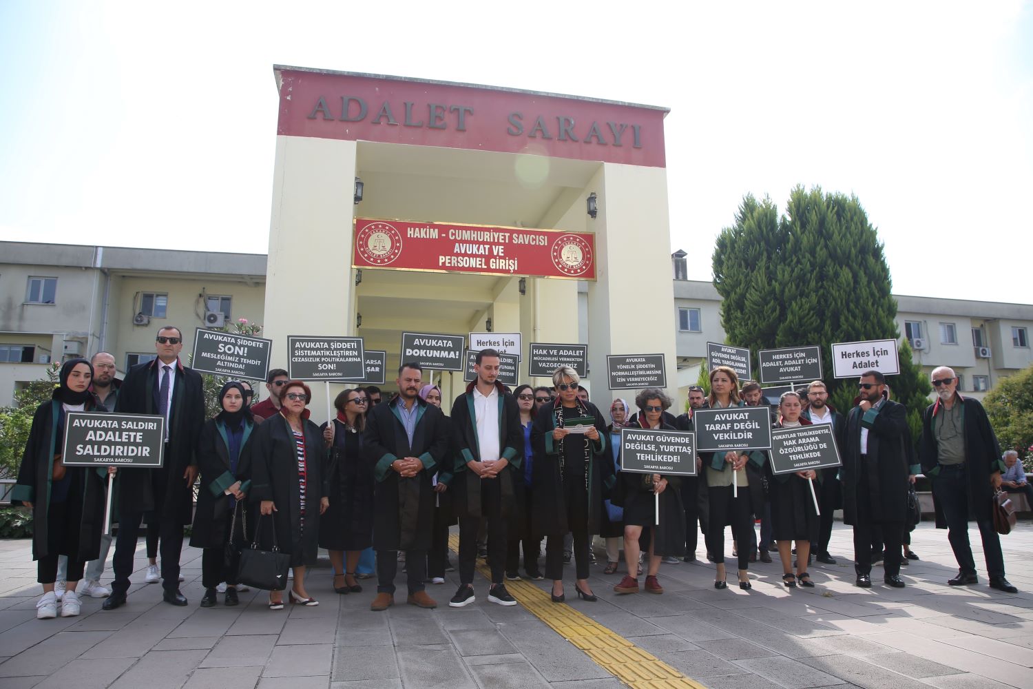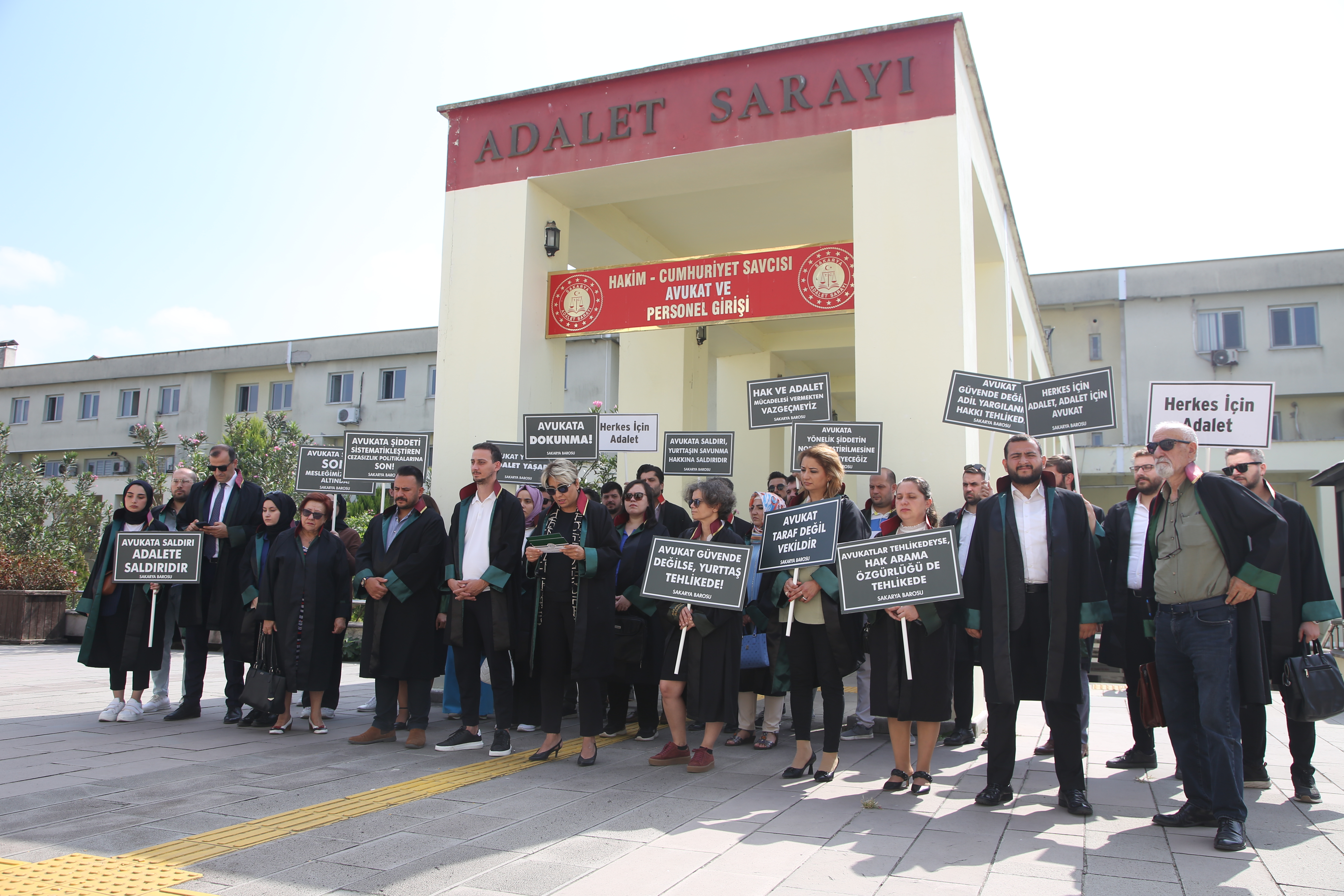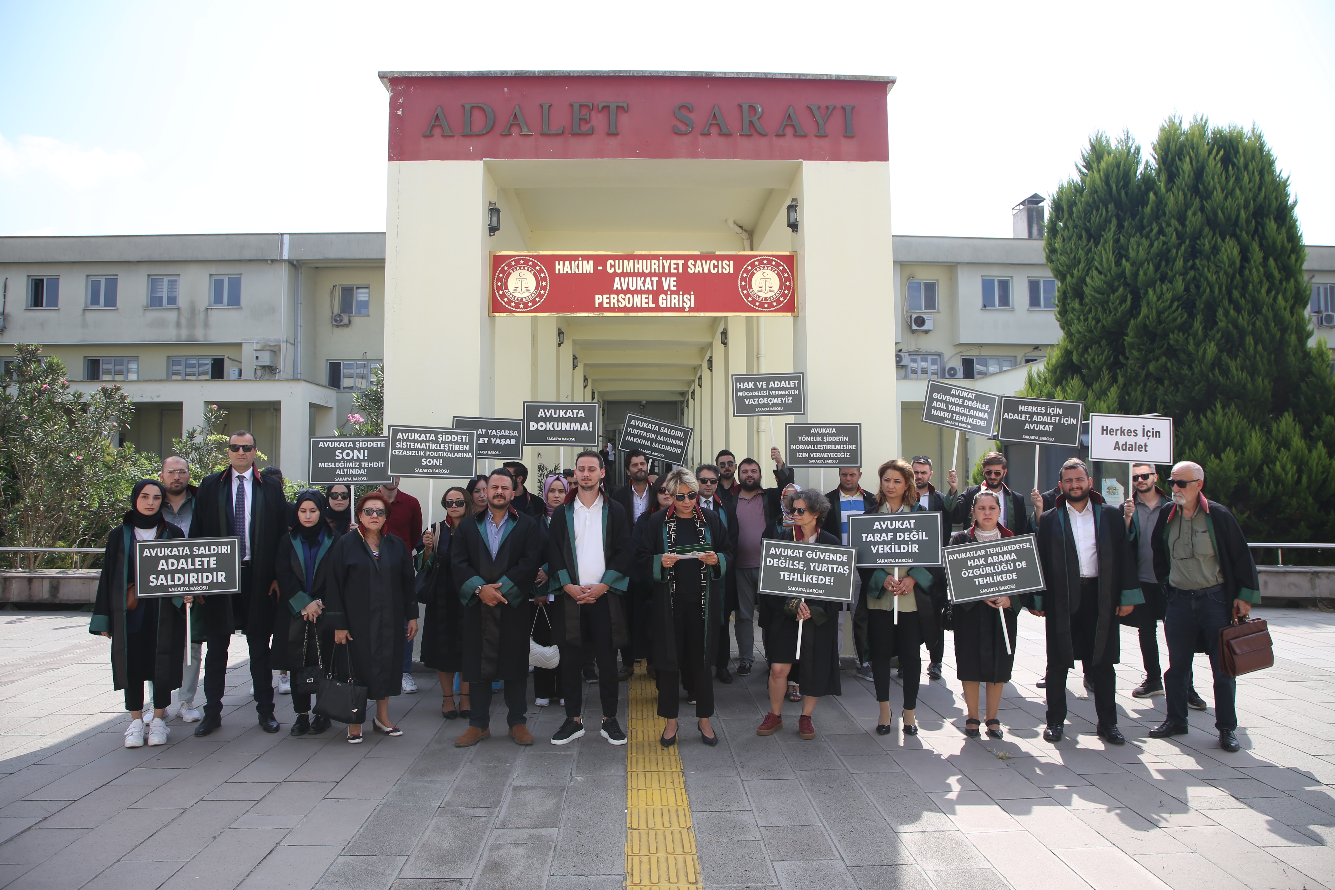 Baro Başkanı Av. İlknur Ebiz Yıldız, Yönetim Kurulu Üyeleri ve Baro üyesi avukatlar, Sakarya Adliyesi önünde bir araya gelerek saldırıları protesto etti. Başkan Yıldız burada açıklamalarda bulundu.