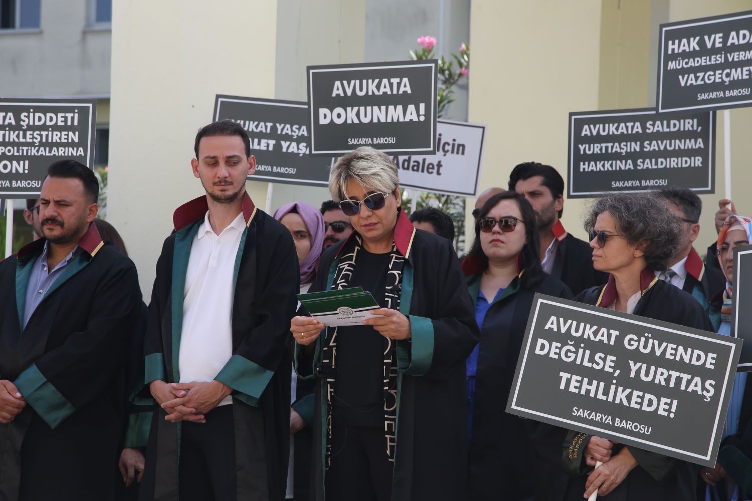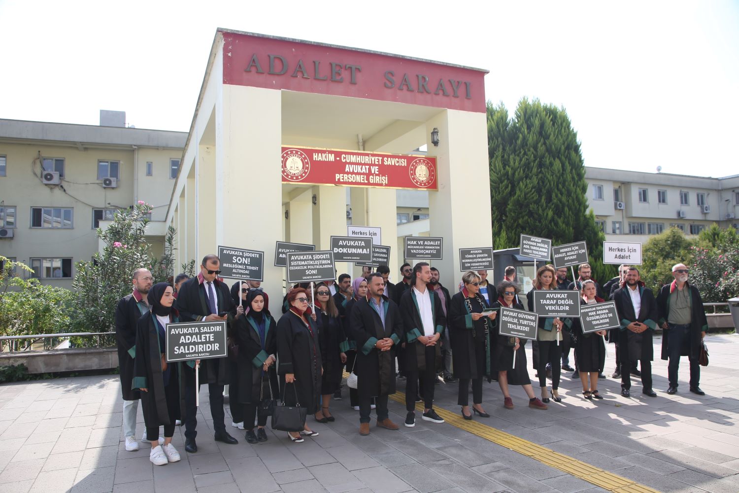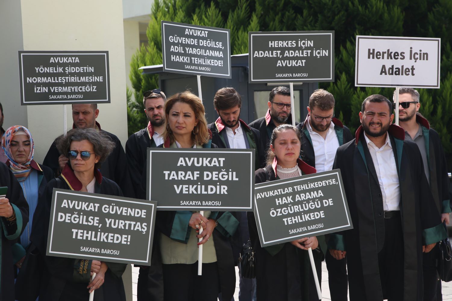 Baro Başkanı Av. İlknur Ebiz Yıldız, Yönetim Kurulu Üyeleri ve Baro üyesi avukatlar, Sakarya Adliyesi önünde bir araya gelerek saldırıları protesto etti. Başkan Yıldız burada açıklamalarda bulundu.