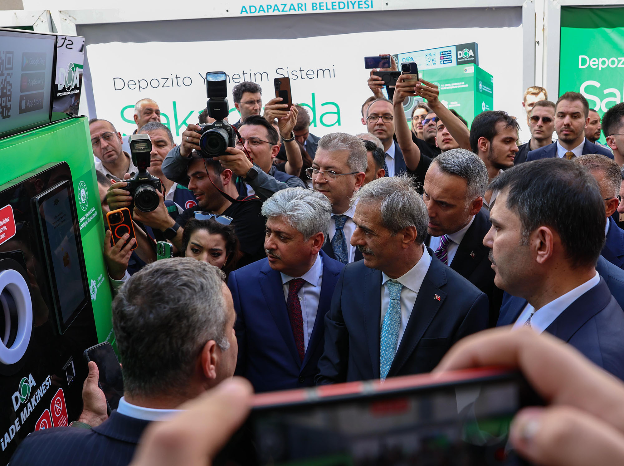 "Sakarya'da 30 makina farklı noktada aktif edildi"Başkan Alemdar DOA için 30 adet iade makinasının 26 farklı lokasyonda aktif edildiğini belirterek, "2017 yılında Saygıdeğer Hanımefendinin himayelerinde başlayan 'Sıfır Atık' projesi ülkemizde yeni bir dönemin kapılarını açtı. Kâğıt, plastik, cam, metal ve organik atıkların geri kazandırılması için, milletçe tüketim alışkanlıklarımızı değiştirmeye başlıyoruz. Bu çerçevede, Çevre, Şehircilik ve İklim Değişikliği Bakanlığı’mız, Türkiye Çevre Ajansı tarafından başlatılan Depozito Yönetim Sistemi (DYS) kapsamında Sakarya, pilot il olarak belirlendi, Adapazarı, Serdivan ve Erenler ilçelerimizde 26 farklı noktada toplam 30 iade makinesi aktif hale getirildi" dedi.