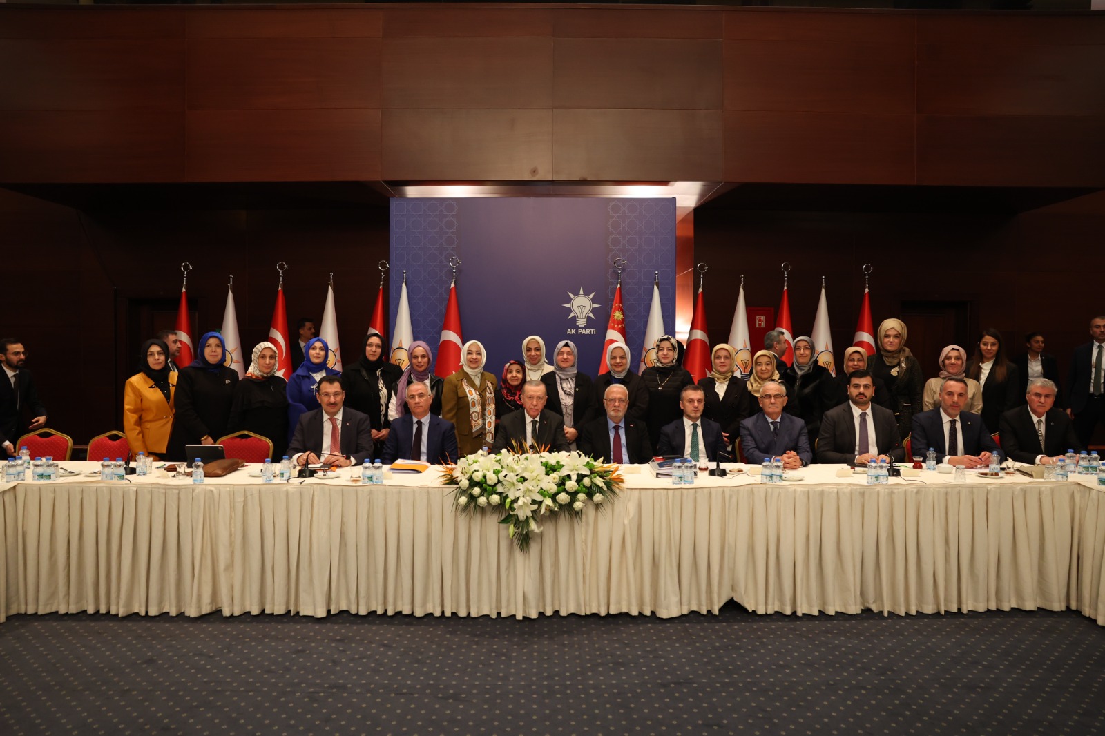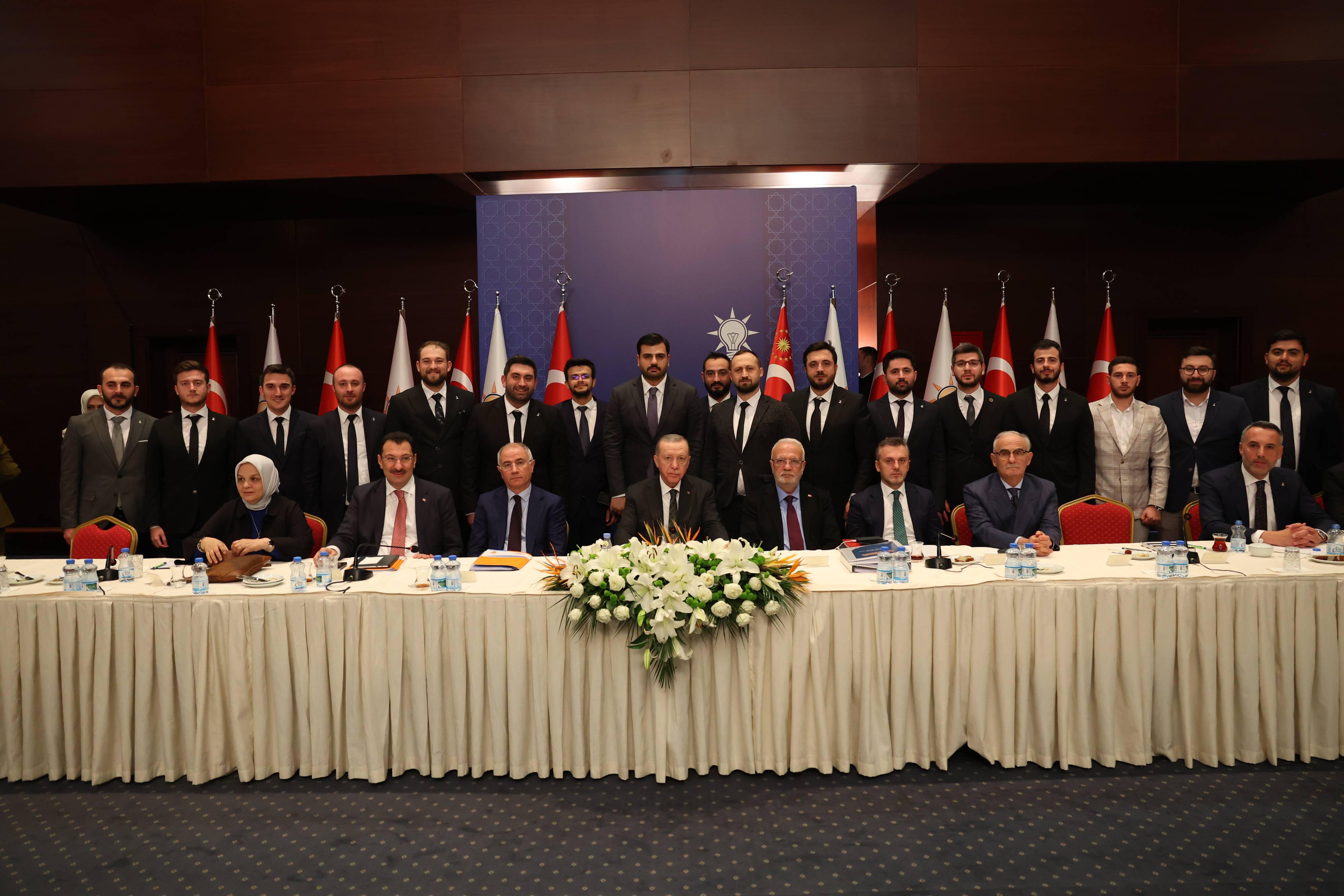 Cumhurbaşkanı ve AK Parti Genel Başkanı Recep Tayyip Erdoğan’ın Başkanlığındaki heyete; Genel Başkanvekilleri Efkan Ala, Mustafa Elitaş, Teşkilat Başkanı Erkan Kandemir, Seçim İşleri Başkanı Ali İhsan Yavuz, Yerel Yönetimler Başkanı Yusuf Ziya Yılmaz, Kadın Kolları Başkanı Ayşe Keşir ve Gençlik Kolları Başkanı Eyüp Kadir İnan eşlik etti.