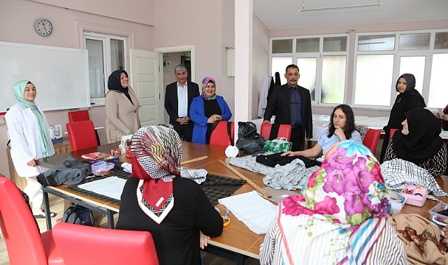 İlk olarak giyim kursuna misafir olan ve usta öğreticilerden çalışmalarla ilgili bilgi alan Başkan V. Kaya; el emeğinin, özverinin önemine vurgu yaparak, ortaya çıkartılan tüm eserlerin bu manada paha biçilemez olduğunu söyledi.