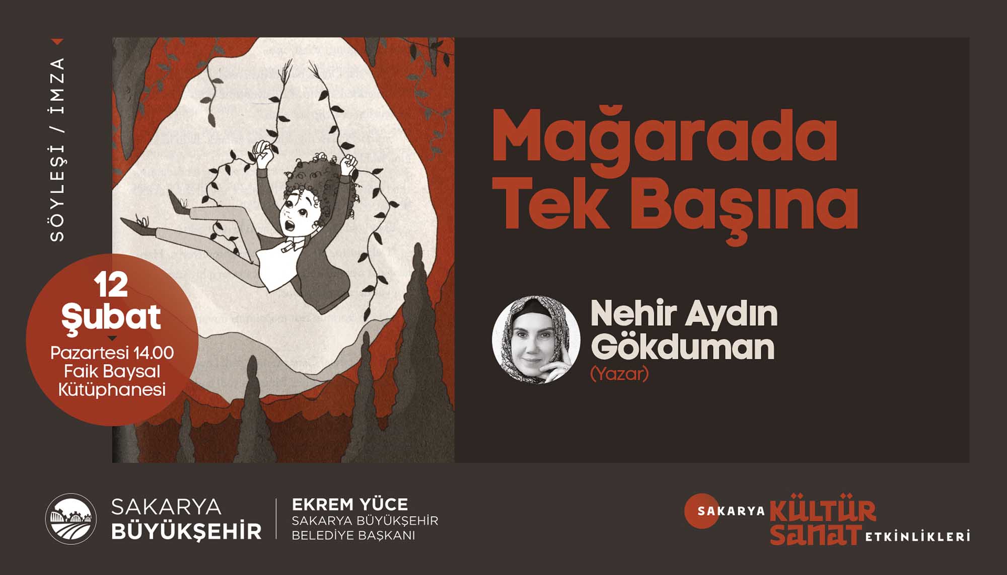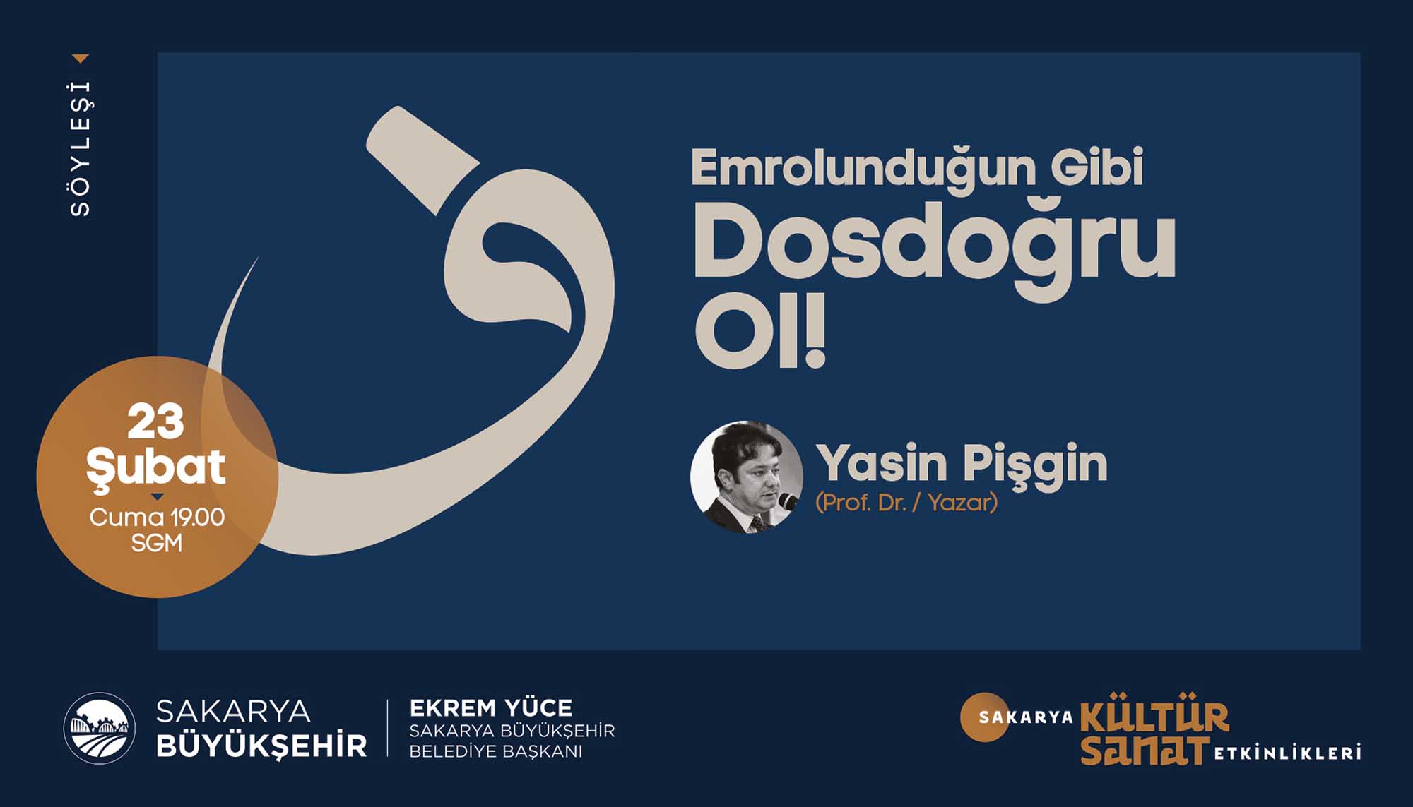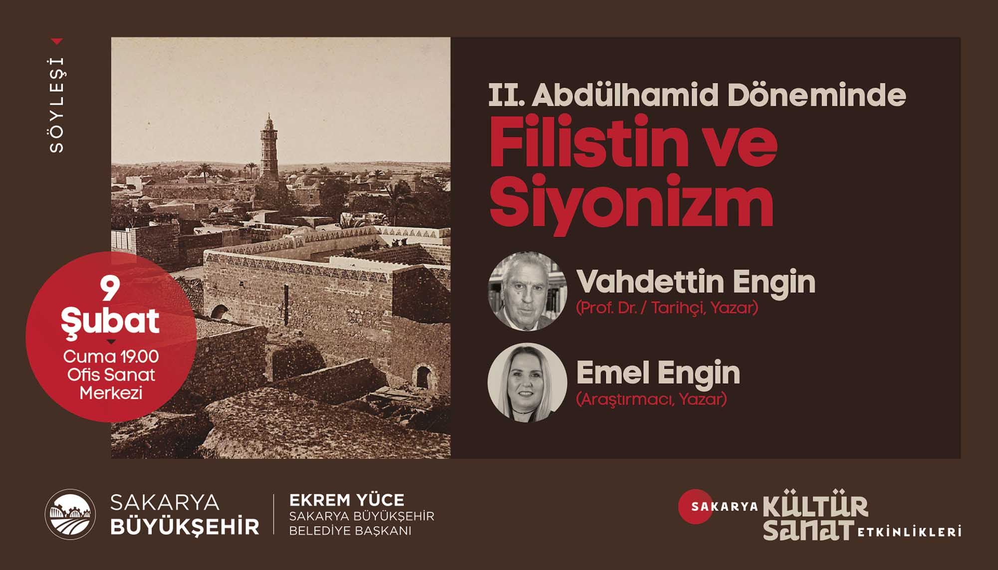 Etkinlikleri için hazırladığı Şubat Ayı Takvimi’ni açıkladı. Türkiye’ye mal olmuş değerli sanatçılar ve akademisyenlerin birbirinden güzel programlarıyla geçecek olan şubat ayı takvimi için söyleşi, panel, tiyatro gösterimi, tasavvuf dinletisi, fotoğraf sergisi ve gölge oyunuyla geçecek olan 16 farklı etkinlik organize edildi. Takvimde sanat duayenleri, çocuklar ve gençler için birbirinden keyifli programlara yer verildi. İŞTE PROGRAM:SöyleşiKonu: Sakaryalı Yazar OkullardaKonuklar: Yazar Arzu Özdemir7 Şubat Çarşamba / AKM / 14.00 DinletiKonu: Tasavvuf Müziği DinletisiKonuklar: Gökhan Arıkan / Aziz Arkan (ses sanatçıları)8 Şubat Perşembe / Ziya Taşkent Konser Salonu / 19.00 SergiKonu: II. Abdülhamid Albümü’nde Sakarya9 Şubat Cuma / Ofis Sanat Merkezi / 18.30 SöyleşiKonu: II. Abdülhamid Döneminde Filistin ve SiyonizmKonuklar: Prof. Vahdettin Engin / Emel Engin (yazarlar)9 Şubat Cuma / Ofis Sanat Merkezi / 19.00 TiyatroKonu: Müziğin DünyasıKonuklar: Uray Sanat (çocuk oyunu)10 Şubat Cumartesi / AKM / 13.00 – 15.00 (iki seans) SöyleşiKonu: Mağarada Tek BaşınaKonuklar: Nehir Aydın Gökduman (yazar)12 Şubat Pazartesi / Faik Baysal Kütüphanesi / 14.00 SöyleşiKonu: Dünyanın En Güzel HikayesiKonuklar: Güray Süngü (Yazar)15 Şubat Perşembe / Alicanlar Konağı / 19.00 SöyleşiKonu: İslam Düşünce GelenekleriKonuklar: Prof. Dr. Ömer Türker / Doç. Dr. Harun Kuşlu16 Şubat Cuma / Ofis Sanat Merkezi / 19.00 TiyatroKonu: Taht OyunlarıKonuklar: Tiyatro Elif (Çocuk oyunu)17 Şubat Cumartesi / AKM / 13.00-15.00 (2 seans) PanelKonu: Adalı Öykücüler Bize Ne Söyler?Konuklar: Yarlar Arzu Özdemir, Ayşenur Gülsüm,Sinem Torun, Vildan Külahlı Tanış, Necla Dursun17 Şubat Cumartesi / Ofis Sanat Merkezi / 14.00 TiyatroKonu: Cesur Korkuluk KukiKonuklar: 1001 Sanat (çocuk oyunu)19 Şubat Pazartesi / AKM / 11.00-13.00 (2 seans) TiyatroKonu: Yedi Güzel AdamKonuklar: Oyuncu Tayfası (yetişkin oyunu)19 Şubat Pazartesi / AKM / 19.00 SöyleşiKonu: İrfan Meclisi – GönülKonuklar: Yazar İdris Mahfi, Ses Sanatçısı Kemalcan Ergün21 Şubat Çarşamba /Alicanlar Konağı / 19.00 SöyleşiKonu: Emrolunduğu Gibi Dosdoğru OlKonuklar: Yazar Prof. Dr. Yasin Pişgin 23 Şubat Cuma / SGM/ 19.00 TiyatroKonu: Kudüs Ya da LeylaKonuklar: Seyyah Oyuncular (yetişkin oyunu)27 Şubat Salı / AKM / 19.00 Gölge OyunuKonu: Karagöz GöklerdeKonuklar: Seçkin Bayramoğlu (Karagöz Sanatçısı)28 Şubat Çarşamba / Sapanca / 11.00-13.00 (2 seans)
