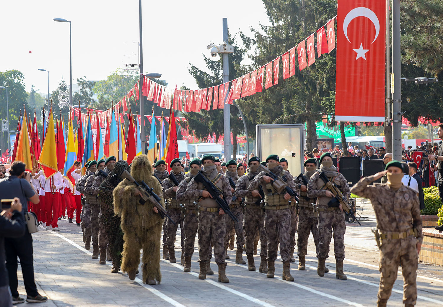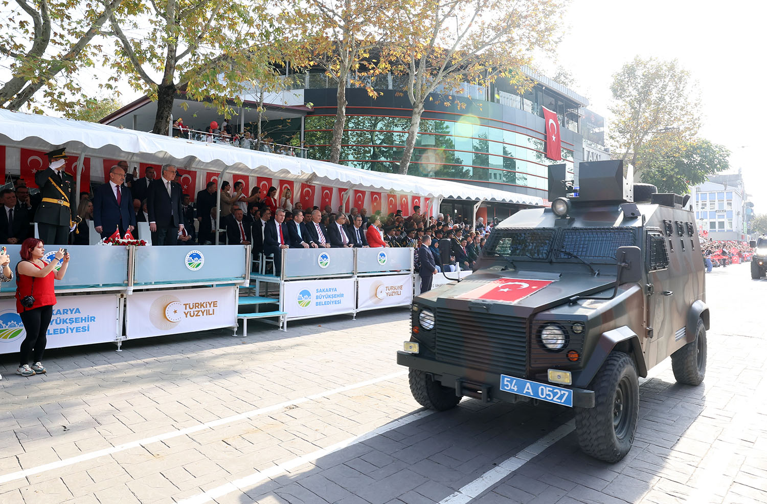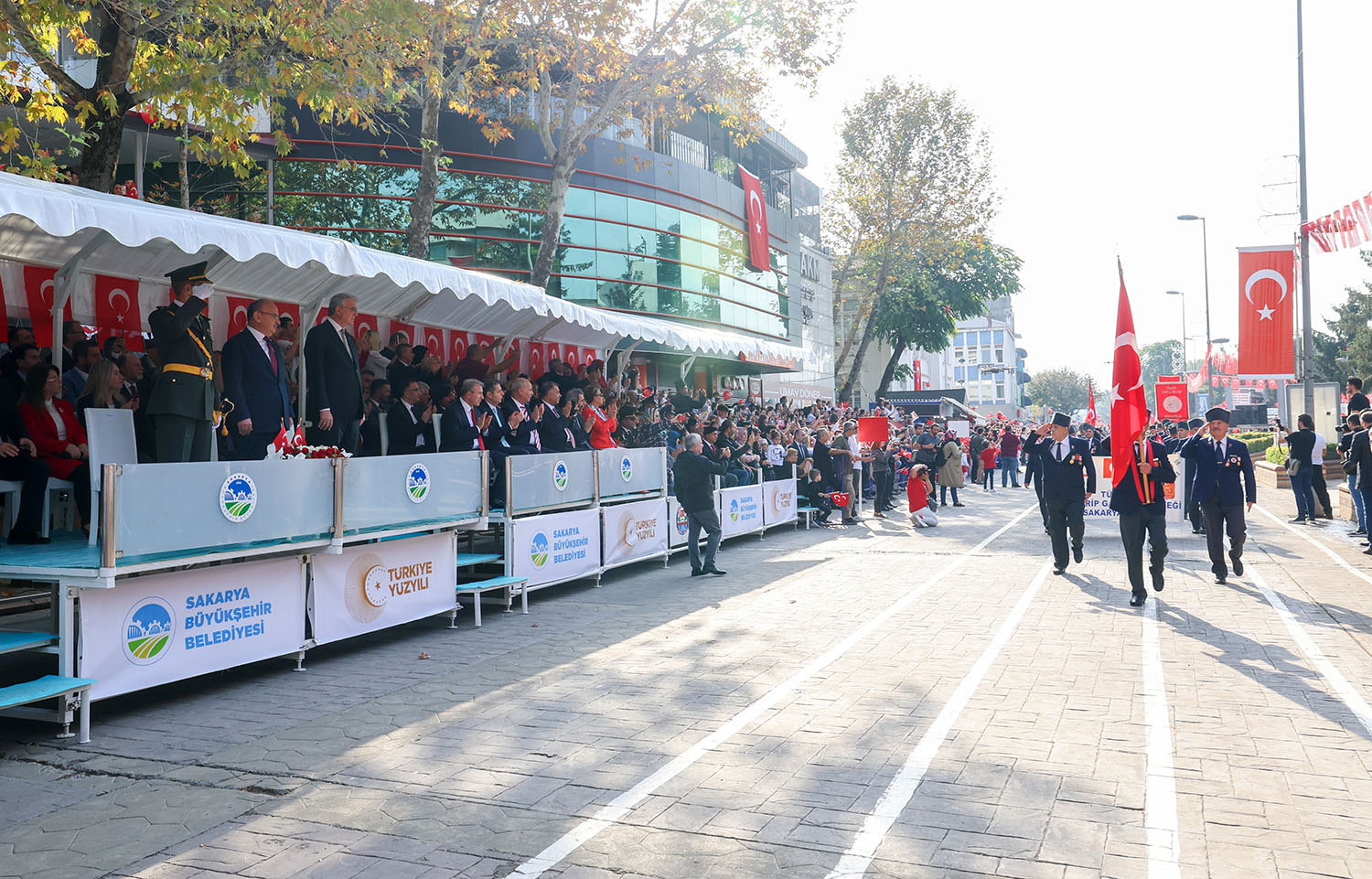 Sakarya Valiliği tarafından düzenlenen, Cumhuriyetin 100. Yıldönümü programları kapsamında Adapazarı Atarürk Kültür Merkezi (AKM) önünde geçit töreni düzenlendi.