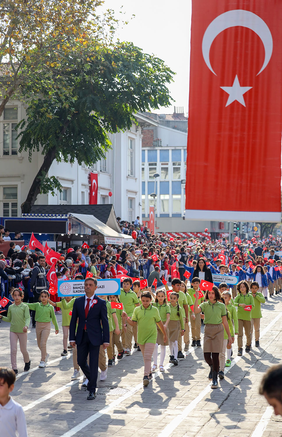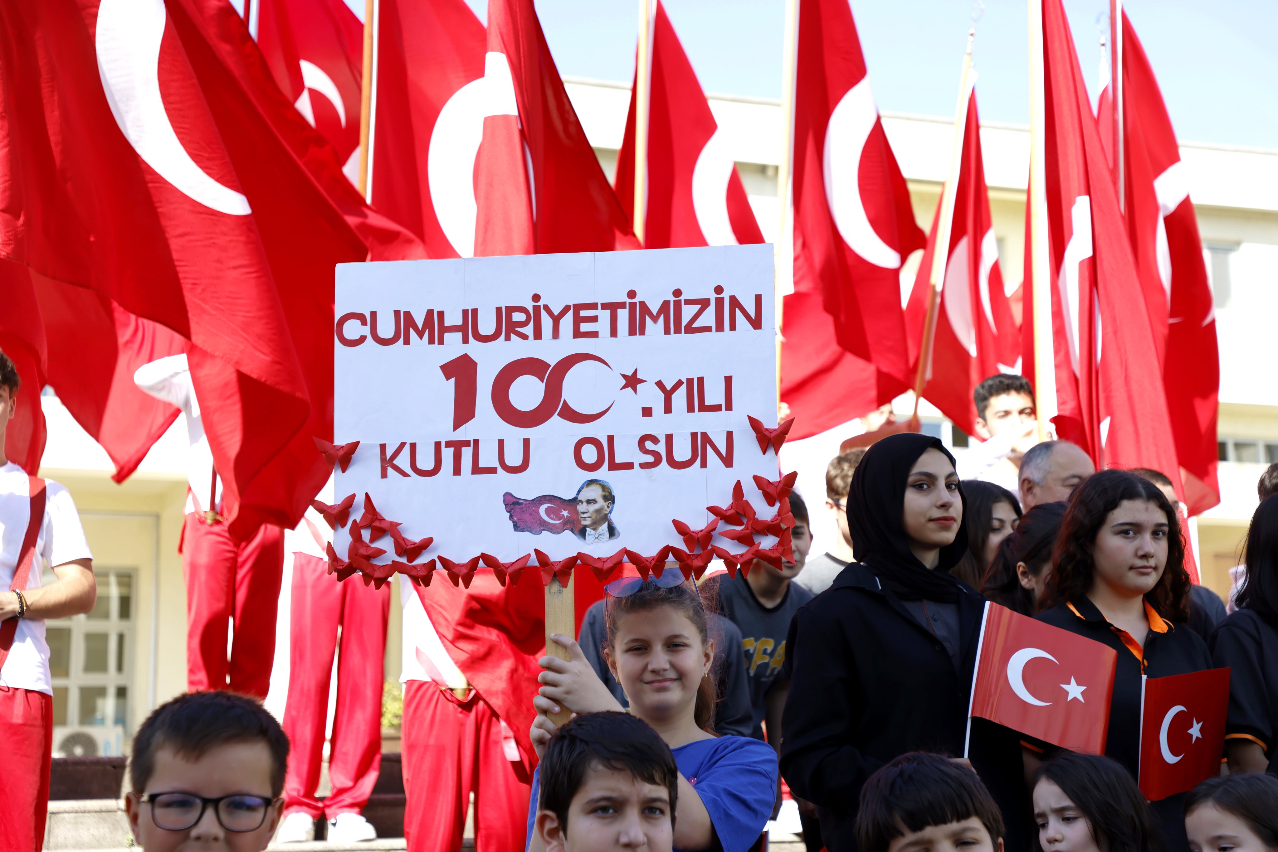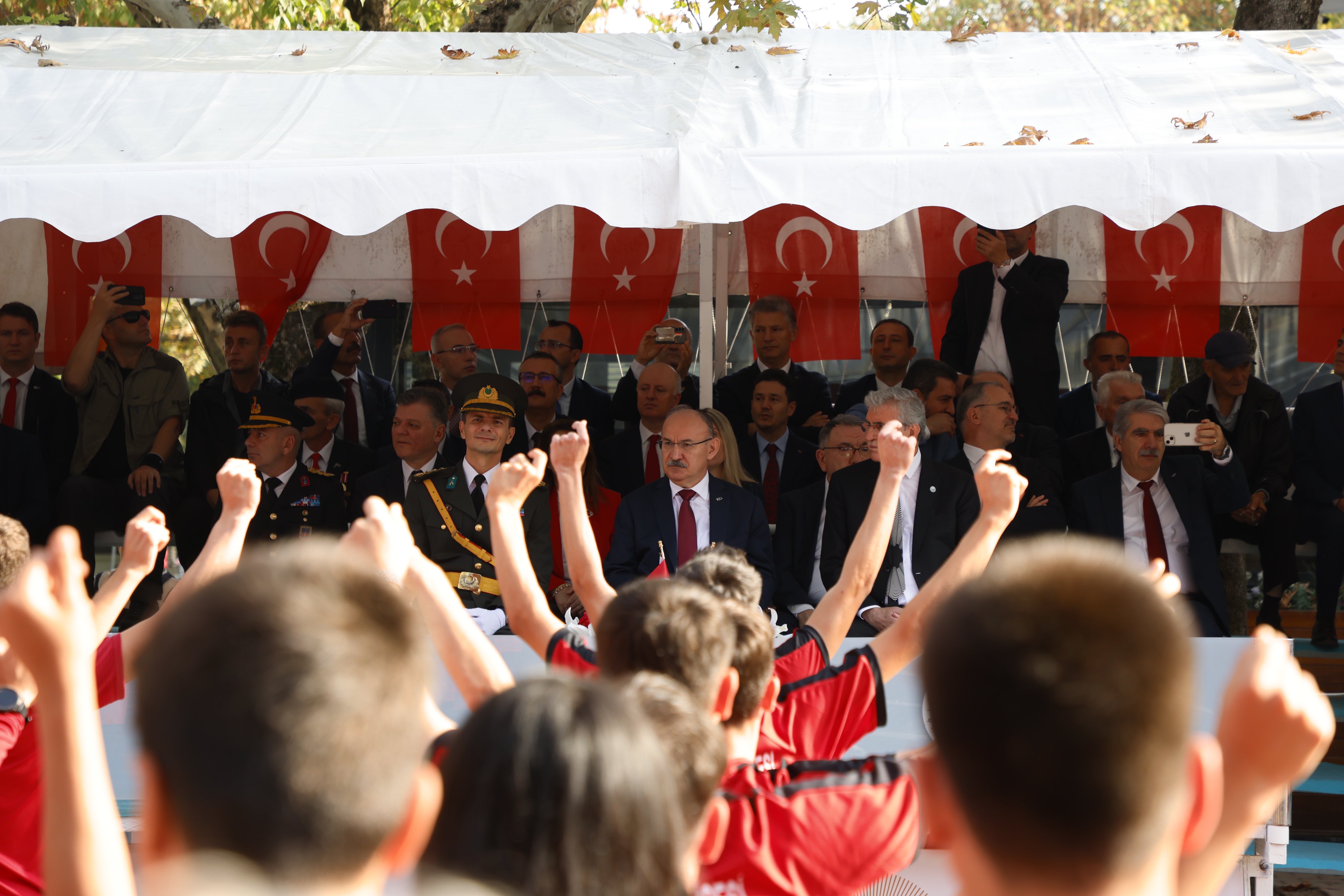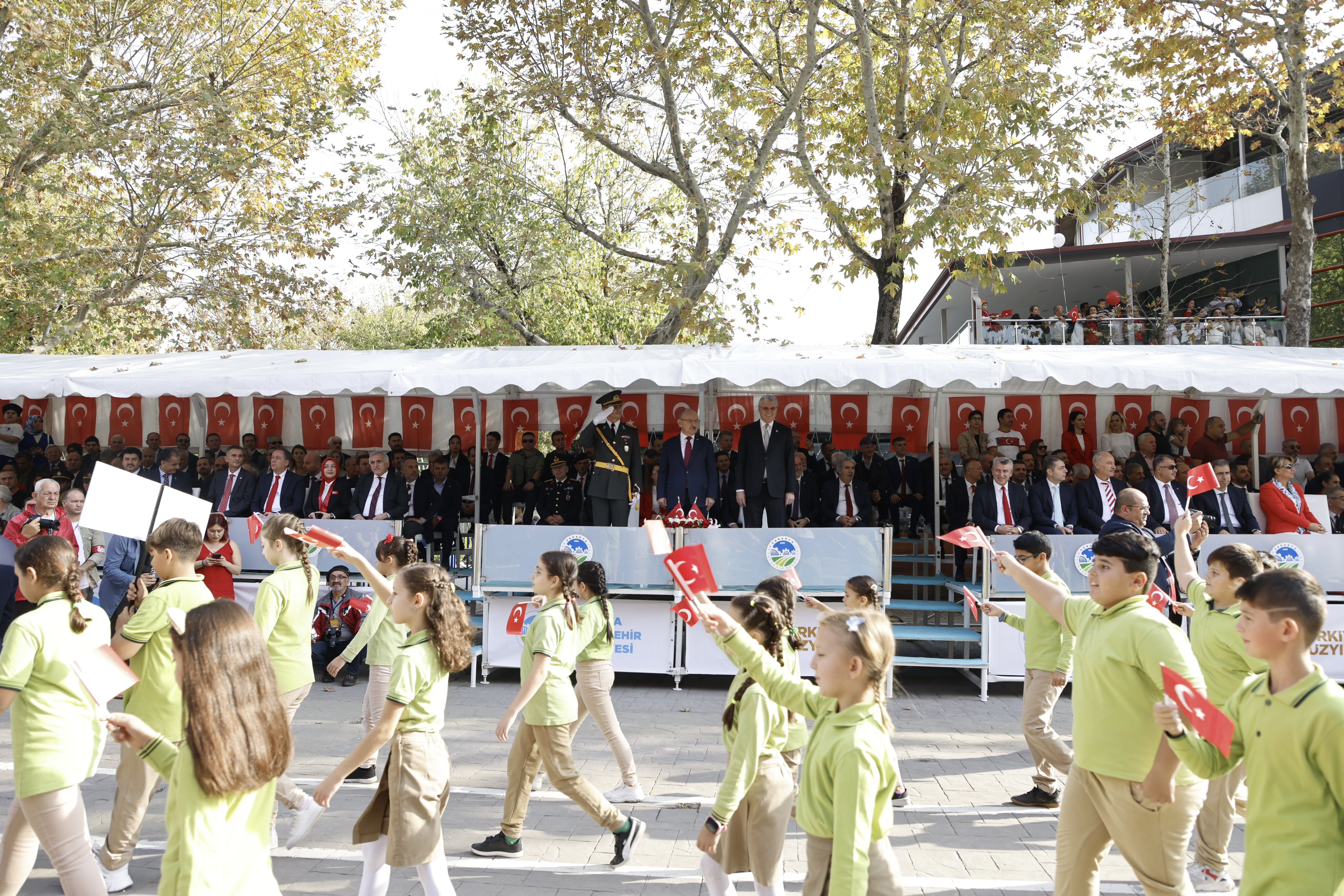 COŞKU İLE KUTLANDIKutlamalar saygı duruşunda bulunulması ve İstiklal Marşı’nın okunması ile başladı. Daha sonra Sakarya Valisi Yaşar Karadeniz, günün anlam ve önemini belirten bir konuşma yaptı. Öğrencilerin Geyve yöresine ait folklor gösterisiyle devam eden kutlamalar, 1923 öğrencinin harmandalı zeybeği oynamasıyla devam etti.
