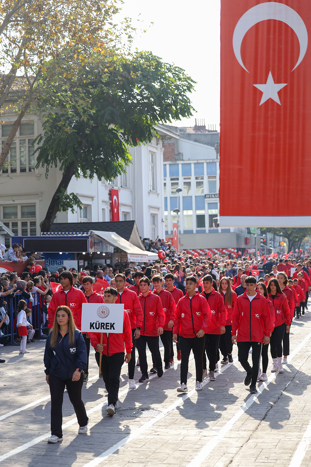 Cumhuriyet’in 100. yıl dönümünde öğrencilerin sergilediği zeybek gösterisi vatandaşlar tarafından ilgiyle izlendi. Kutlamalar, gaziler, öğrenciler, sporcular, jandarma, polis, AFAD, itfaiye, 112 ekiplerinin kortej geçişiyle sona erdi.