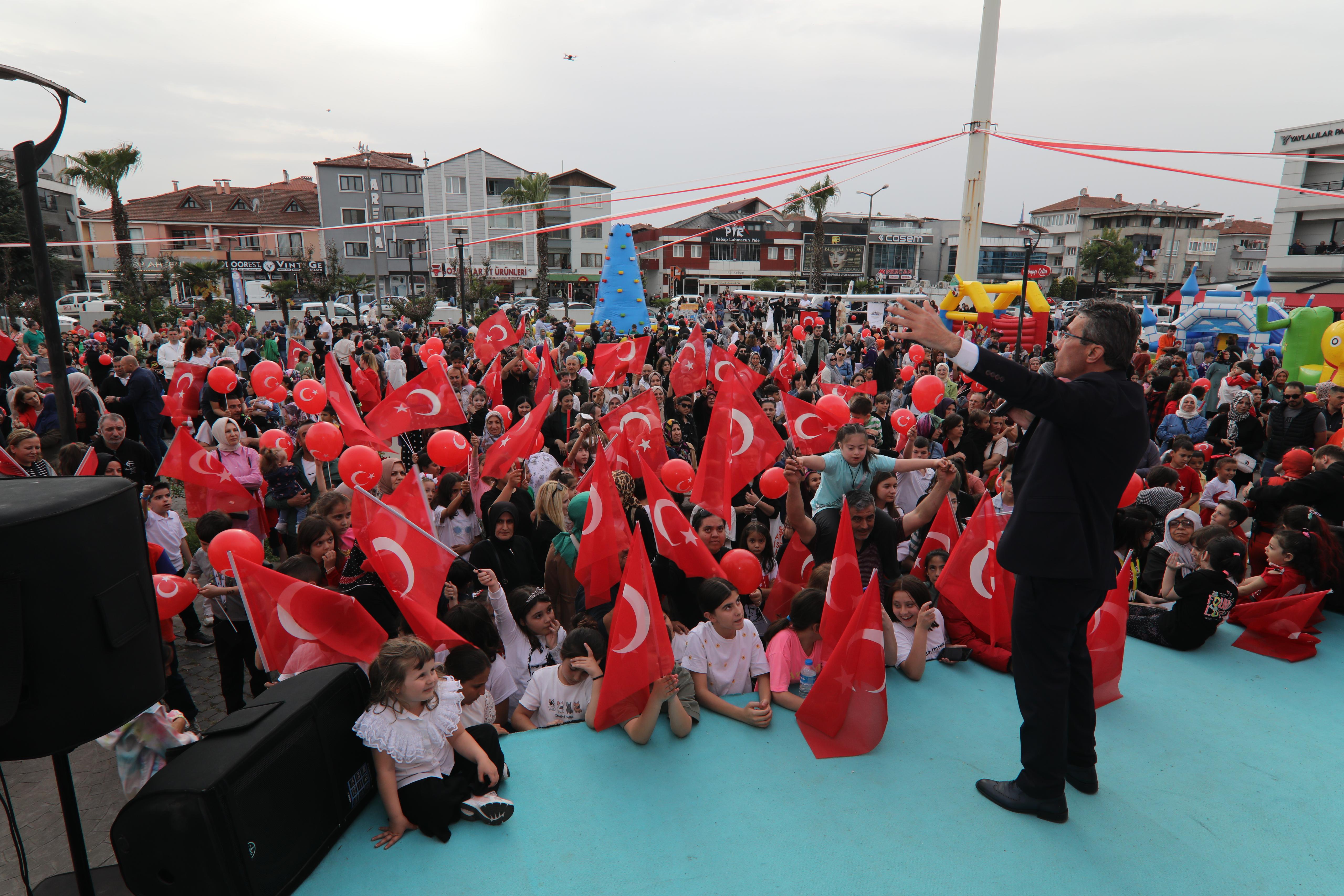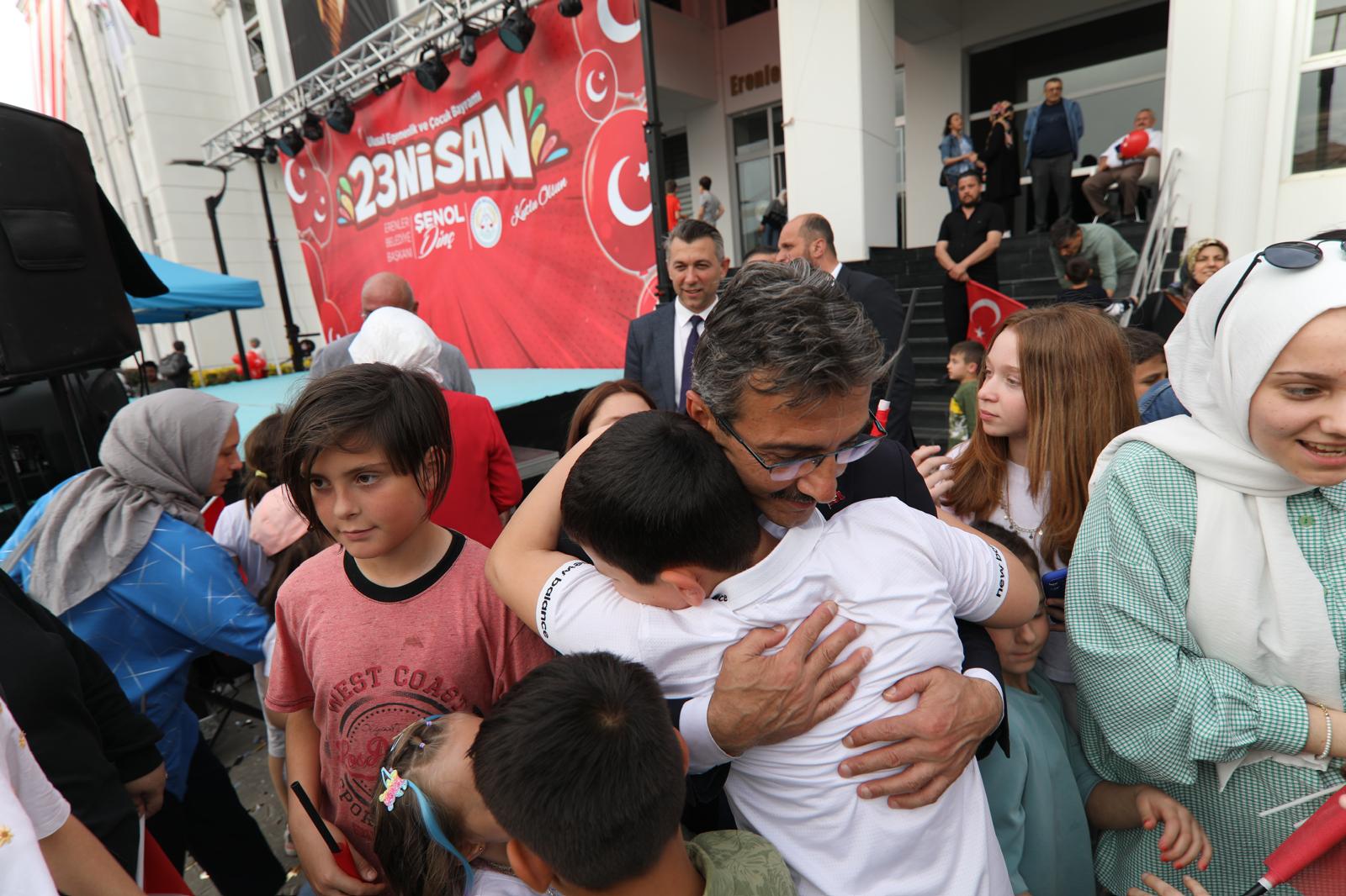 Başkan Şenol Dinç, “Kıymetli çocuklarımız, buradan baktığım zaman sizlerin gözleriniz ki ışıltıyı görmek heyecanıma heyecan kattı. İnşallah sizler için bu tür etkinlik ve programlarımızı sürdürecek ve bir arada olmaya, birlikte zaman geçirmeye devam edeceğiz. Katılımlarınızdan dolayı sizlere teşekkür ediyor, tüm çocukların 23 Nisan Ulusal Egemenlik ve Çocuk Bayramını kutluyorum” ifadelerini kullandı.