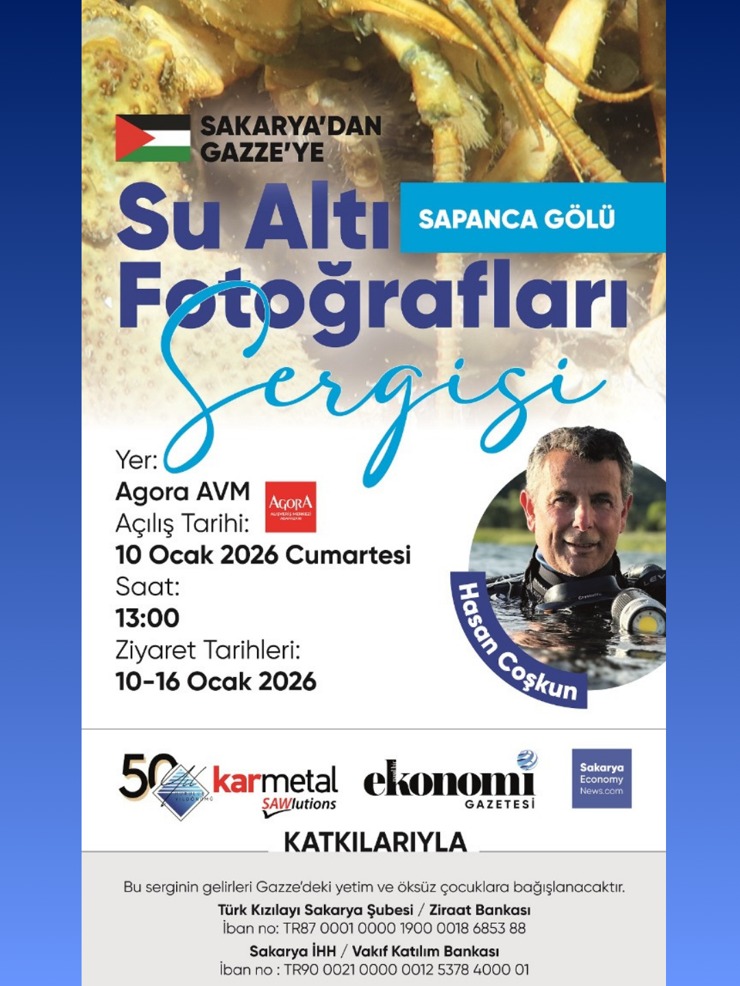 Çevre farkındalığına katkı sunuyorSon yıllarda yaşanan kuraklık ve insan kaynaklı çevresel etkenler nedeniyle Sapanca Gölü’nün ciddi bir kirlilik baskısı altında olduğunu vurgulayan Coşkun, bu sergi ile önemli bir farkındalık oluşturmayı hedeflediğini söyledi. Karmetal SAWlutions, Ekonomi Gazetesi ve sakaryaeconomynews.com’un katkılarıyla 2 yıla yakın bir süre devam eden çekimler sonucunda elde edilen sualtı fotoğraf ve video görselleri aynı zamanda www.tusacan.org sitesine de yüklenerek bilimsel amaçlı kullanıma sunuluyor. “Sakarya’dan Gazze’ye” temasıyla düzenlenen ve hem doğa hem de insani yardım konusunda güçlü bir mesaj veren sergi saat 10:00-22:00 arasında 16 Ocak tarihine kadar ziyaret edilebilecek.