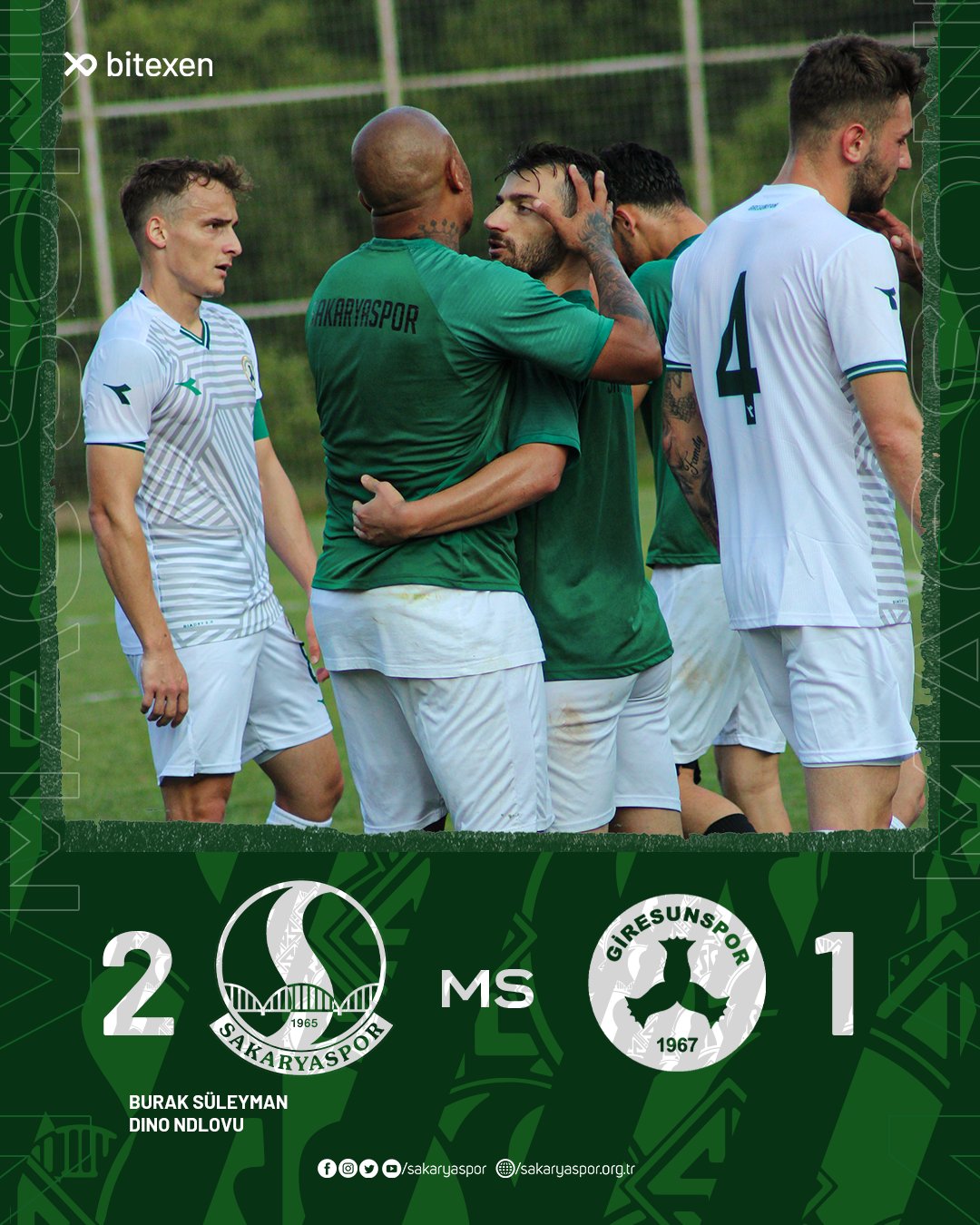 Yeni sezon hazırlıklarını Bolu kampında sürdüren Sakaryaspor, hazırlık karşılaşmasında Giresunspor'u 2-1 yendi.Sakaryaspor'un gollerini Dino Ndlovu ve Burak Süleymanoğlu kaydetti.