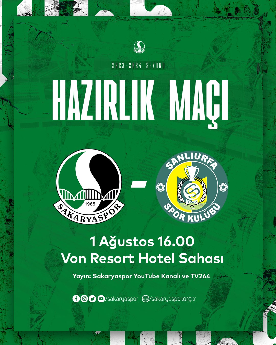 Bolu Abant kampında 3'üncü etap kamp çalışmaları sürdüren Yeşil-Siyahlılar Trendyol 1. Lig ekiplerinden Şanlıurfaspor ile karşı karşıya geldi. Sakaryaspor maçın ilk yarısını DinoNdlovu'nun attığı gol ile devreyi 1-0 üstün kapattı. İkinci yarıda Sakaryaspor Hakan Yavuz ile gol farkını 2'ye çıkardı. Karşılaşmanın son dakikalarında rakip takımın golüne engel olamayan Sakaryaspor sahadan 2-1 galip ayrıldı.
