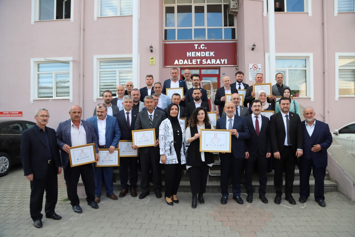 Hendek Belediyesindeki törenin ardından Belediye Meclis Üyeleri, ile birlikte İlçe Seçim Kurulu Başkanlığı’na giderek Seçim Kurulu Başkanı Hakim Zehra Ölmez’den mazbatalarını alan Büyük Birlik Partisi Meclis Üyeleri ve Hendek Belediye Başkanı İrfan Püsküllü, Hendek halkına desteklerinden ötürü teşekkür etti. Daha sonra meclis üyeleriyle birlikte Belediye Binasındaki makam odasına geçen Başkan Püsküllü burada tebrikleri kabul ederek günün anısına teşkilat mensupları ve vatandaşlarla fotoğraf çekildi.
