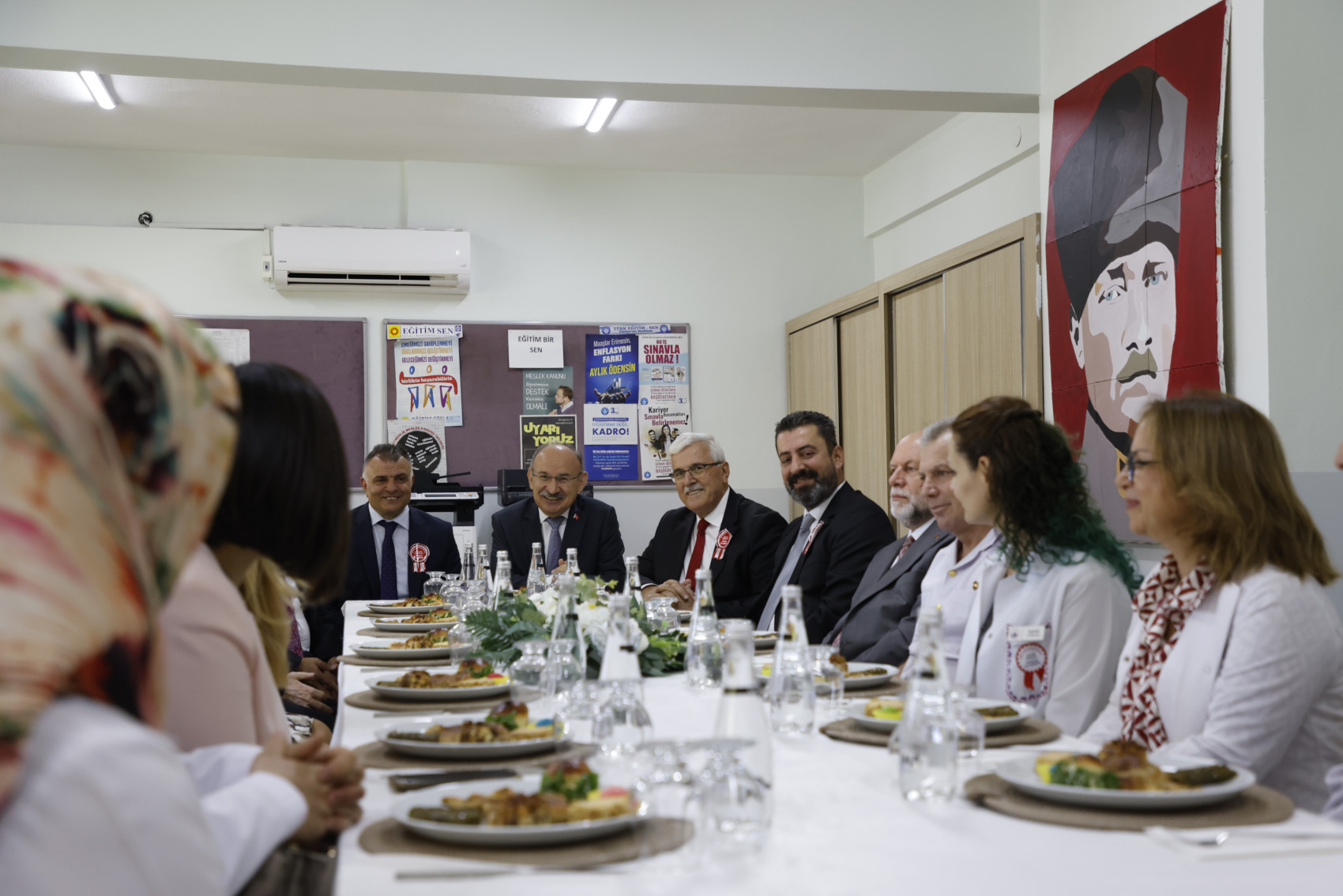 Beraberindekilerle birlikte sınıfları gezdikten sonra öğretmenlerle de bir araya gelen Vali Karadeniz, aileden başlayan öğrenme sürecinin ikinci adımını okul döneminin oluşturduğunu, bu süreçte elde edilen kazanımların, bireylerin ve dolayısıyla da gelecekte milletin geleceğini şekillendirdiğini ifade ederek, eğitimin hayattaki rolünün önemine değindi ve bundan dolayı geleceğin teminatı çocukları ve gençleri kıymetli öğretmenlere emanet ettiklerini söyledi.