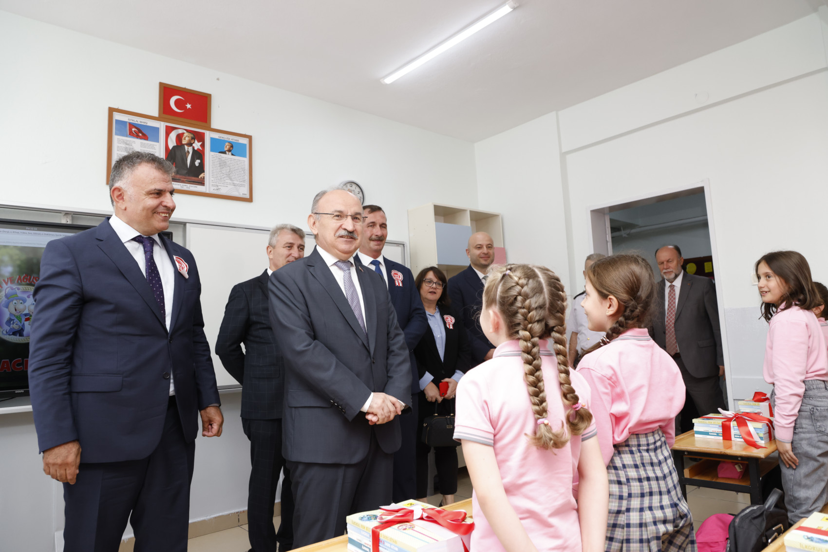 Milli Eğitim Bakanlığı Ölçme, Değerlendirme ve Sınav Hizmetleri Genel Müdürü Kemal Bülbül, il/ilçe protokolü ve velilerin katılımıyla gerçekleşen ve saygı duruşu ile İstiklal Marşımızın okunmasıyla başlayan programda; ilk ders zilini Vali Karadeniz çaldı.