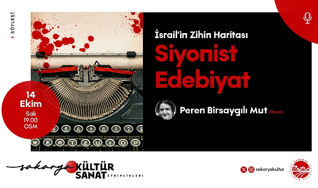 Sakarya Büyükşehir Belediyesi Kültür ve Sosyal İşler Dairesi Başkanlığı tarafından gerçekleştirilen kültür sanat etkinliklerinde Ekim takvimi “İsrail’in Zihin Haritası: Siyonist Edebiyat” söyleşisiyle devam edecek.14 Ekim Salı günü Ofis Sanat Merkezi’nde düzenlenecek söyleşiye konuşmacı olarak Yazar Peren Birsaygılı Mut katılacak. Program ise saat 19.00’da başlayacak.