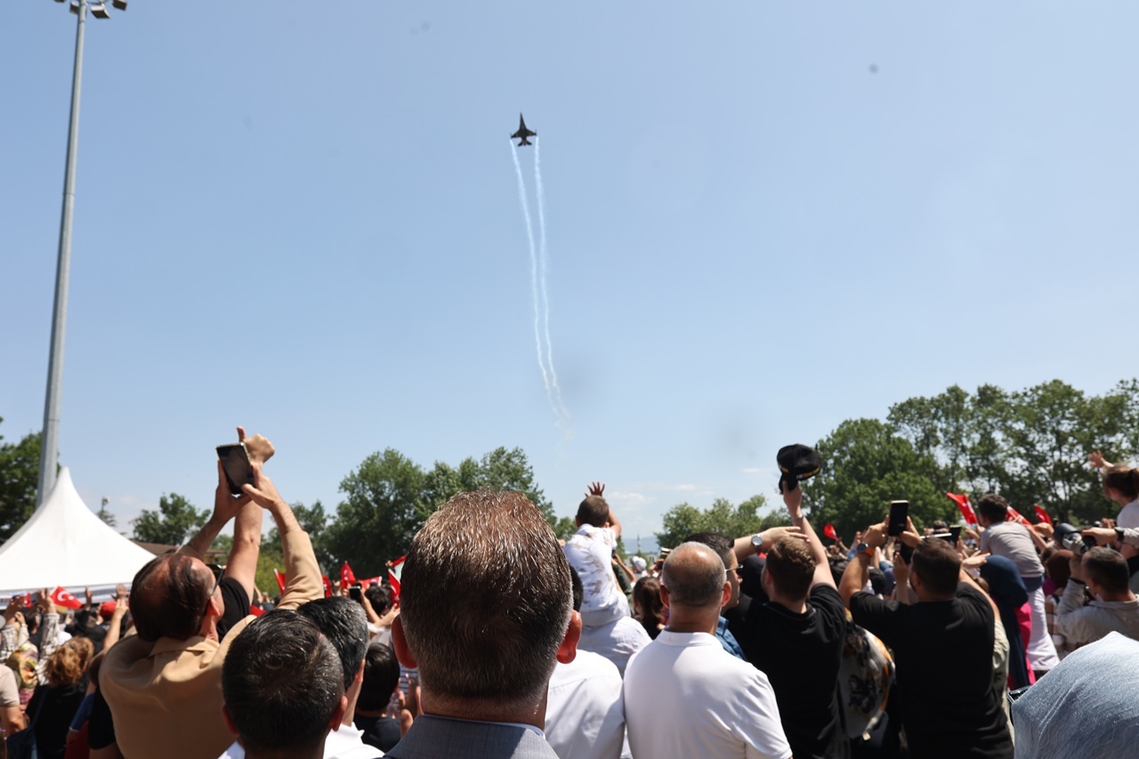 SOLOTÜRK GösterisiSaat 14.15’te başlayan SOLOTÜRK Gösteri Uçuşu ise izleyenleri büyüledi. Ay-yıldızlı gökyüzünde sergilenen gösteri, alandaki vatandaşlardan büyük alkış aldı. Başkan Işıksu, “Gurur duy, gökyüzüne bak.” sözleriyle heyecanı paylaştı.