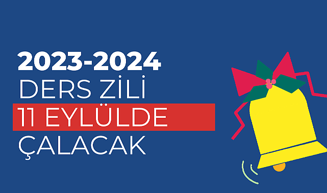 Milli Eğitim Bakanlığı 2023-2024 Eğitim ve Öğretim Yılı Çalışma Takvimi'ni paylaştı. Buna göre, ilk ders zili 11 Eylül'de çalacak. Takvime göre, ilk ara tatil 13-17 Kasım tarihleri arasında yapılacak.Öğrenciler, 22 Ocak Cuma günü yarıyıl tatiline çıkacak. 5 Şubat'ta ikinci dönem başlayacak.Bahar döneminde yapılacak ikinci ara tatilin tarihi ise 8 ile 12 Nisan arası olarak belirlendi.Eğitim-öğretim yılı 14 Haziran'da tamamlanacak.2024-2025 eğitim öğretim yılının ise 9 Eylül'de başlaması öngörülüyor.