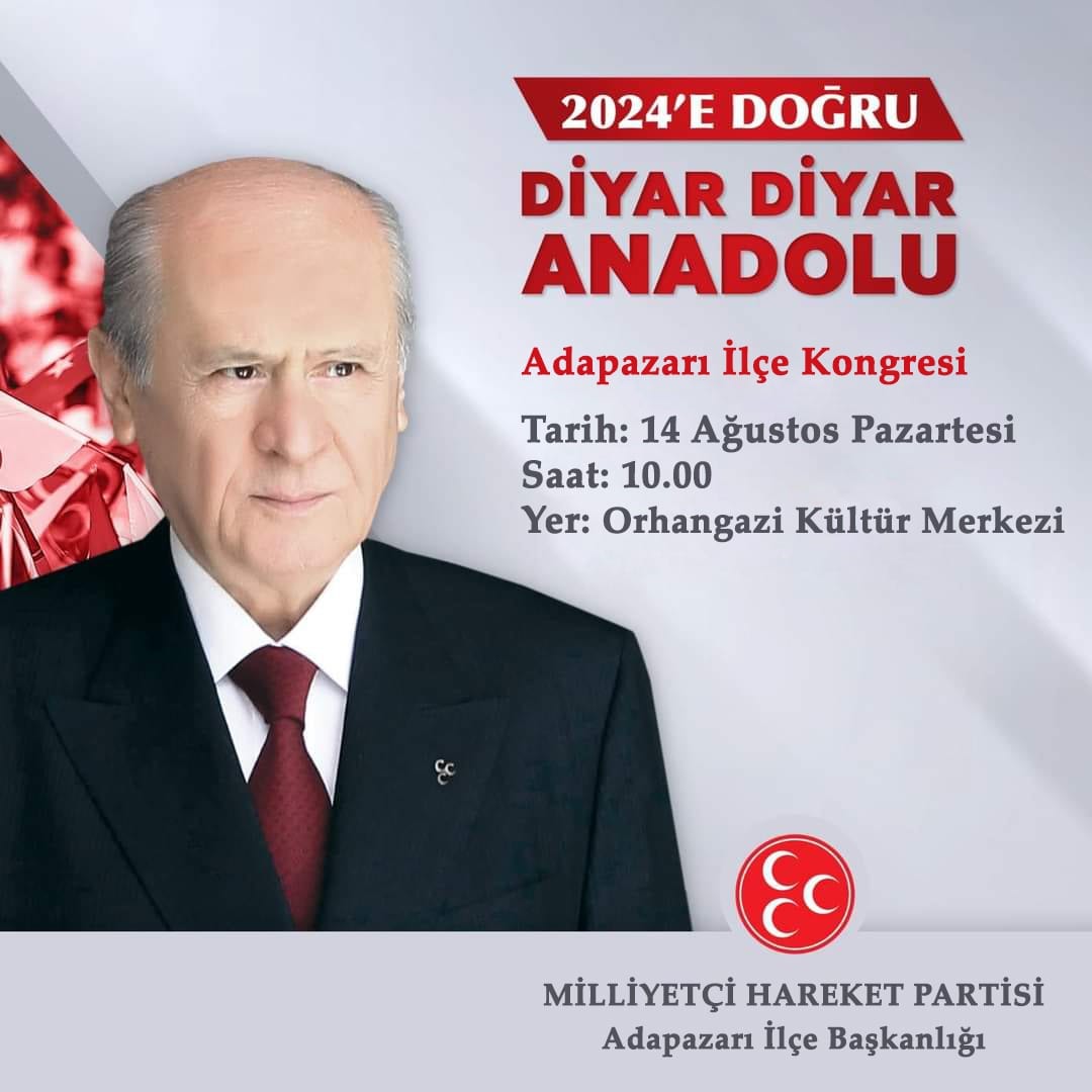 İlçe Başkanı Recep Usta yaptığı açıklmada : "14 Ağustos Pazartesi günü saat 10.00'da Orhangazi Kültür Merkezi'nde; Adapazarı İlçe Kongremiz yapılacaktır. Bu şölenimize yüreği bizimle atan herkesi davet ediyoruz. Davetlilerimizin ve dava arkadaşlarımızın katılımlarından onur duyacağız. " ifadelerini kullandı.