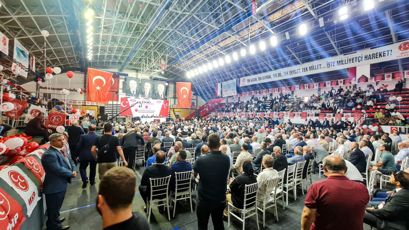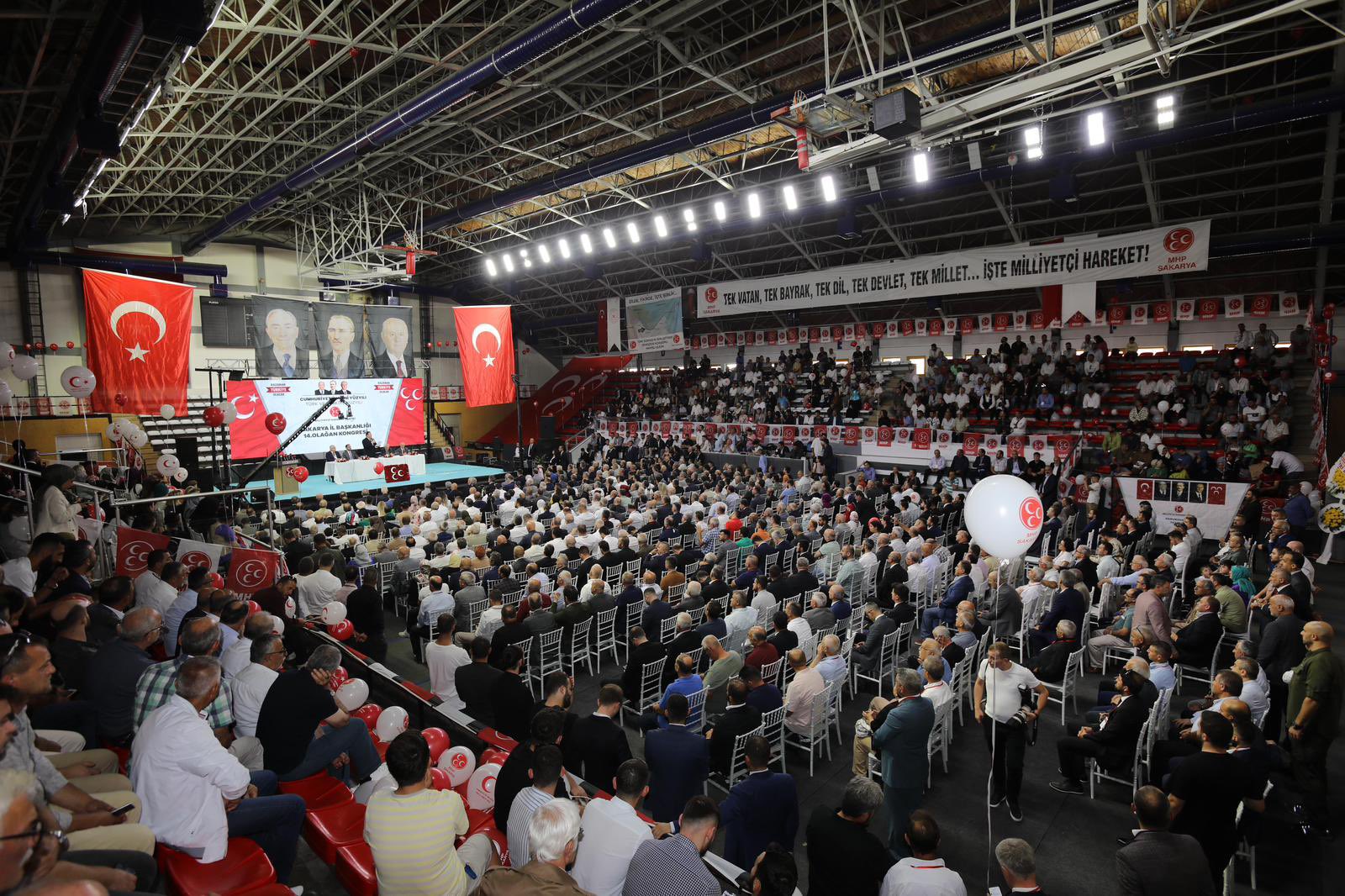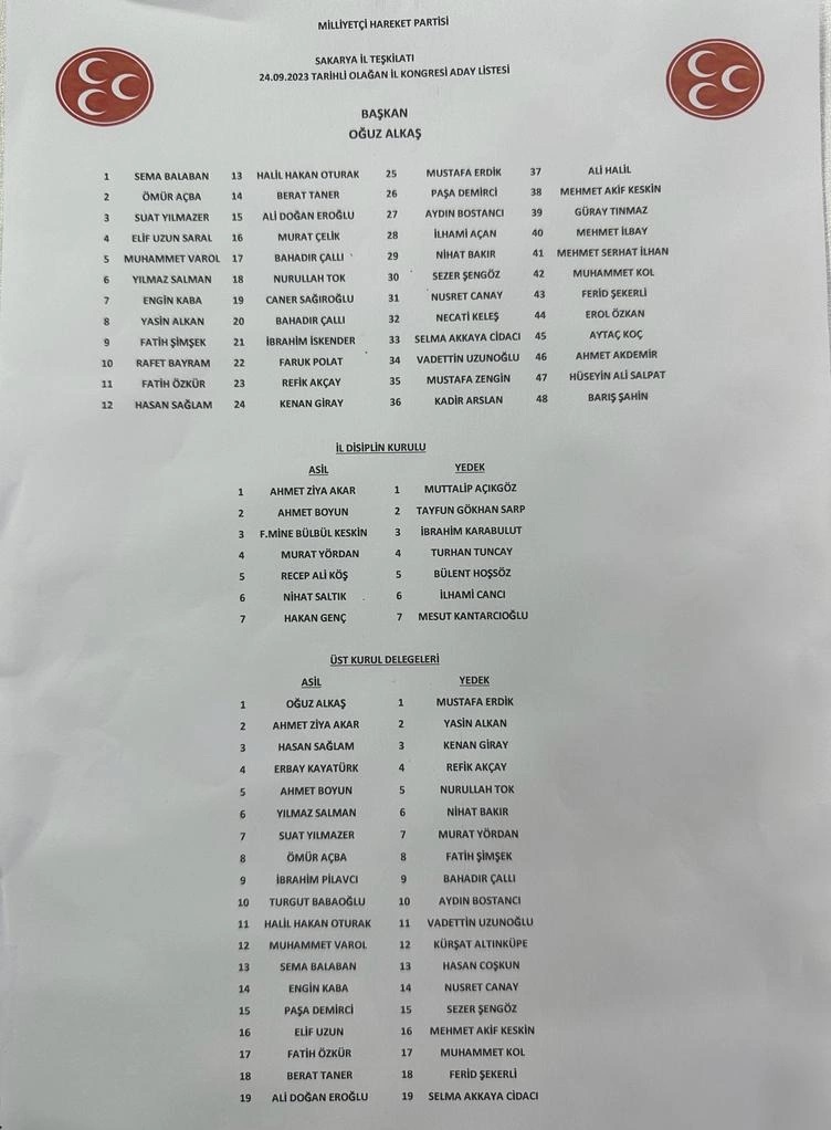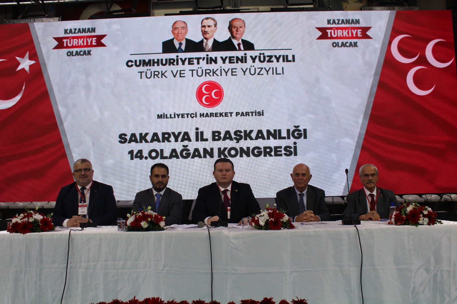Milliyetçi Hareket Partisi'nin 14. Genel Kurulu Atatürk Spor Salonu'nda gerçekleştirildi. MHP'nin 14. ve tek listeli kongresine MHP Grup Başkanvekili Muhammed Levent Bülbül, AK Parti Sakarya Milletvekili Murat Kaya, AK Partili İlçe belediye başkanları, MHP ilçe başkanları, MHP belediye meclis üyeleri ve eski yöneticilerini yanı sıra kalabalık sayıda delege ve davetli katıldı. MHP Genel Başkanı Devlet Bahçeli’nin mektubunun okunmasının ardından, mevcut İl Başkanı Oğuz Alkaş kongrede tekrar başkanlığa seçildi.Alkaş’ın yaptığı konuşmada, “Sözlerimin başında kongremizin Sakarya’mıza ve hareketimize hayırlar getirmesini bütün kalbimle niyaz ediyorum. Bizler milliyetçi hareketçiler merhum başbuğumuzun ve vefatının ardından liderimiz Devlet Bahçeli ile beraber 54 yıldan bu yana siyaseti yüce gayeler için, bileğimizle, yüreğimizle, çile çekerek ve elimizde avucumuzda ne varsa feda ederek yapıyoruz.” dedi ve Türk milletinin seçimlerde zafer kazandığını vurguladı.Sakarya Büyükşehir Belediye Başkanı Ekrem Yüce ise, kongrenin şehir ve ülke için hayırlı olmasını temenni ederek, birlik ve beraberliğin önemini vurguladı.MHP Sakarya Milletvekili Levent Bülbül de konuşmasında, Türkiye’nin bölgesindeki rolünü ve MHP’nin bu roldeki önemini vurguladı.Kongrede, MHP Sakarya İl Başkanlığı’na Oğuz Alkaş yeniden seçilirken, diğer yönetim kurulu üyeleri de belirlendi.MHP Sakarya yeni il yönetimi şu isimlerden oluştu: