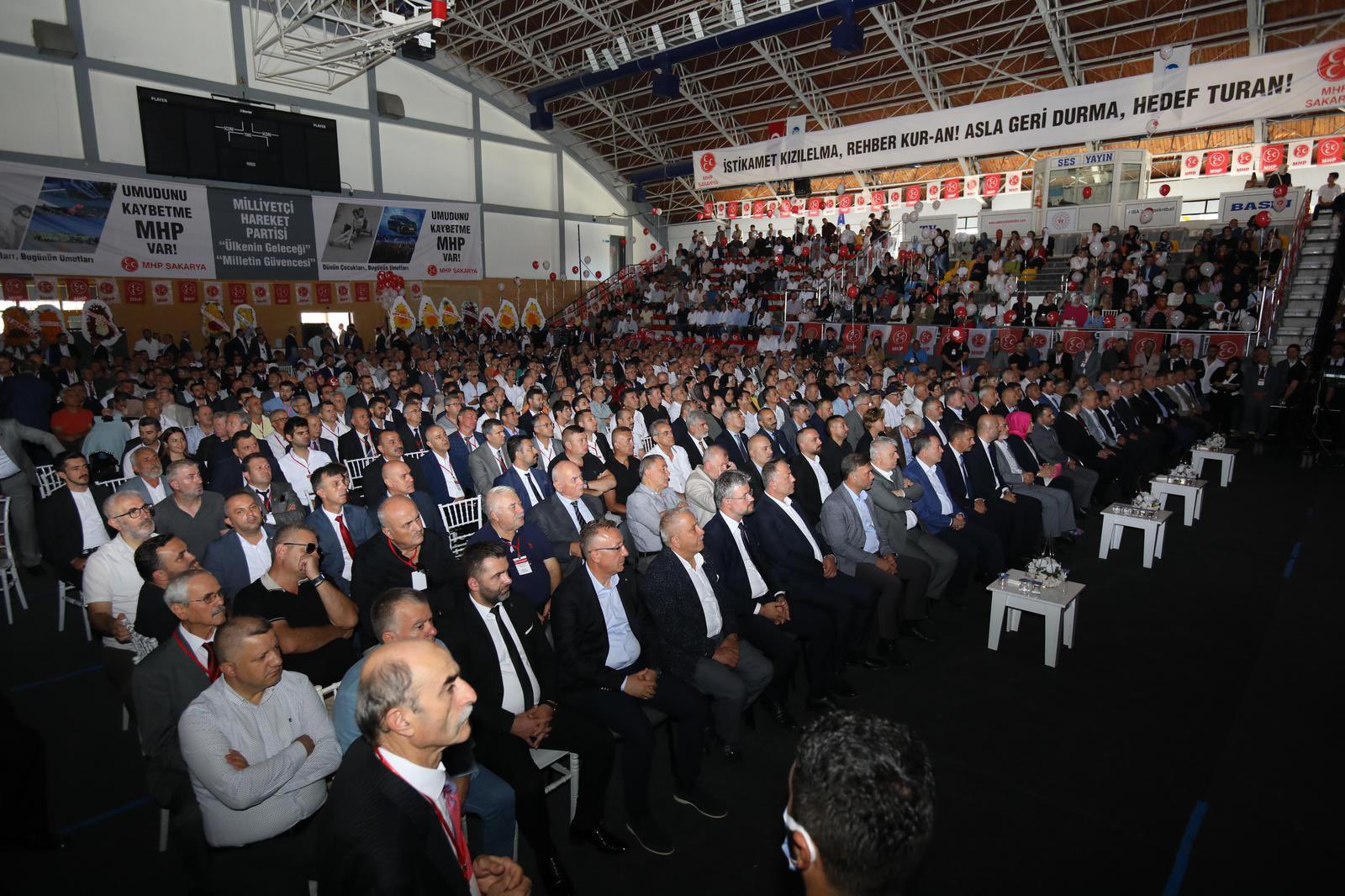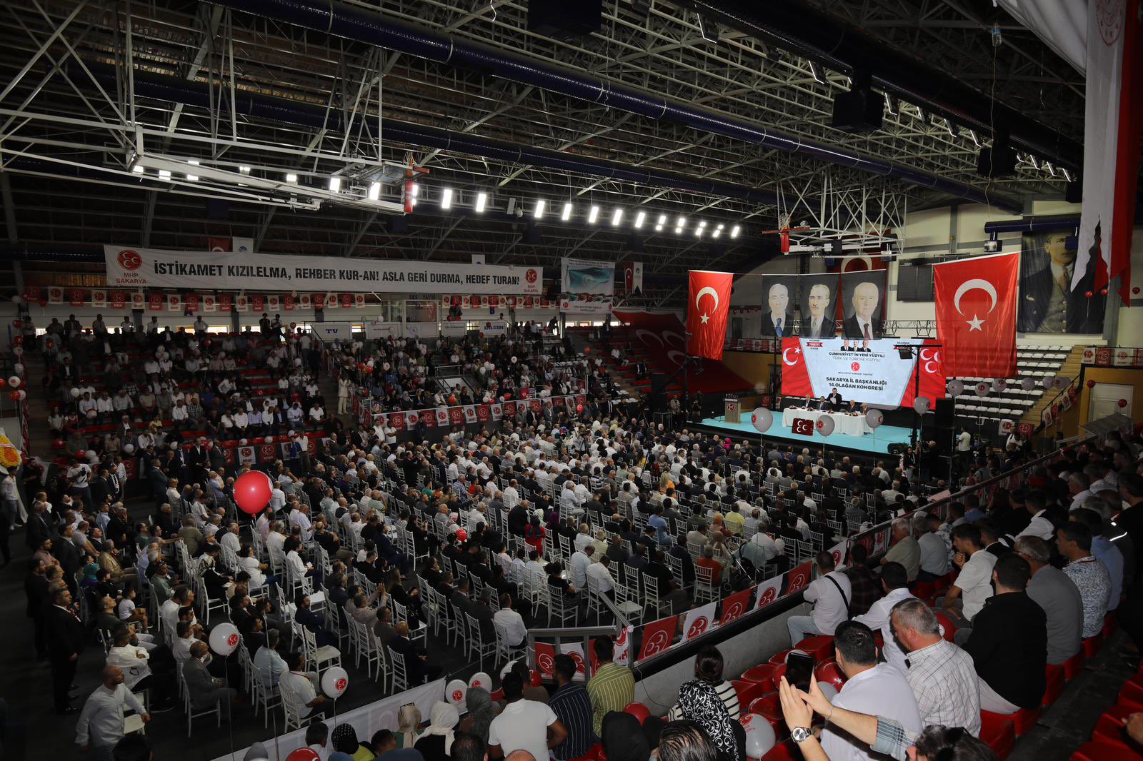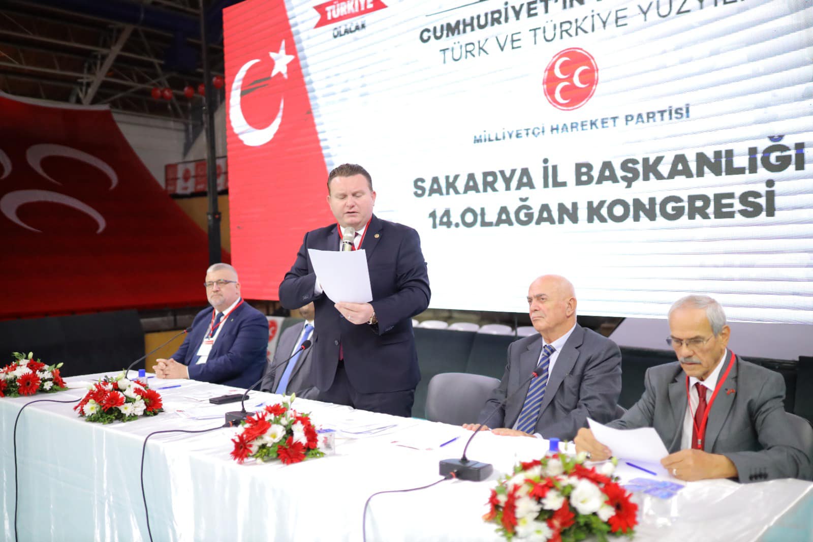 Milliyetçi Hareket Partisi'nin 14. Genel Kurulu Atatürk Spor Salonu'nda gerçekleştirildi. MHP'nin 14. ve tek listeli kongresine MHP Grup Başkanvekili Muhammed Levent Bülbül, AK Parti Sakarya Milletvekili Murat Kaya, AK Partili İlçe belediye başkanları, MHP ilçe başkanları, MHP belediye meclis üyeleri ve eski yöneticilerini yanı sıra kalabalık sayıda delege ve davetli katıldı. MHP Genel Başkanı Devlet Bahçeli’nin mektubunun okunmasının ardından, mevcut İl Başkanı Oğuz Alkaş kongrede tekrar başkanlığa seçildi.Alkaş’ın yaptığı konuşmada, “Sözlerimin başında kongremizin Sakarya’mıza ve hareketimize hayırlar getirmesini bütün kalbimle niyaz ediyorum. Bizler milliyetçi hareketçiler merhum başbuğumuzun ve vefatının ardından liderimiz Devlet Bahçeli ile beraber 54 yıldan bu yana siyaseti yüce gayeler için, bileğimizle, yüreğimizle, çile çekerek ve elimizde avucumuzda ne varsa feda ederek yapıyoruz.” dedi ve Türk milletinin seçimlerde zafer kazandığını vurguladı.Sakarya Büyükşehir Belediye Başkanı Ekrem Yüce ise, kongrenin şehir ve ülke için hayırlı olmasını temenni ederek, birlik ve beraberliğin önemini vurguladı.MHP Sakarya Milletvekili Levent Bülbül de konuşmasında, Türkiye’nin bölgesindeki rolünü ve MHP’nin bu roldeki önemini vurguladı.Kongrede, MHP Sakarya İl Başkanlığı’na Oğuz Alkaş yeniden seçilirken, diğer yönetim kurulu üyeleri de belirlendi.MHP Sakarya yeni il yönetimi şu isimlerden oluştu: