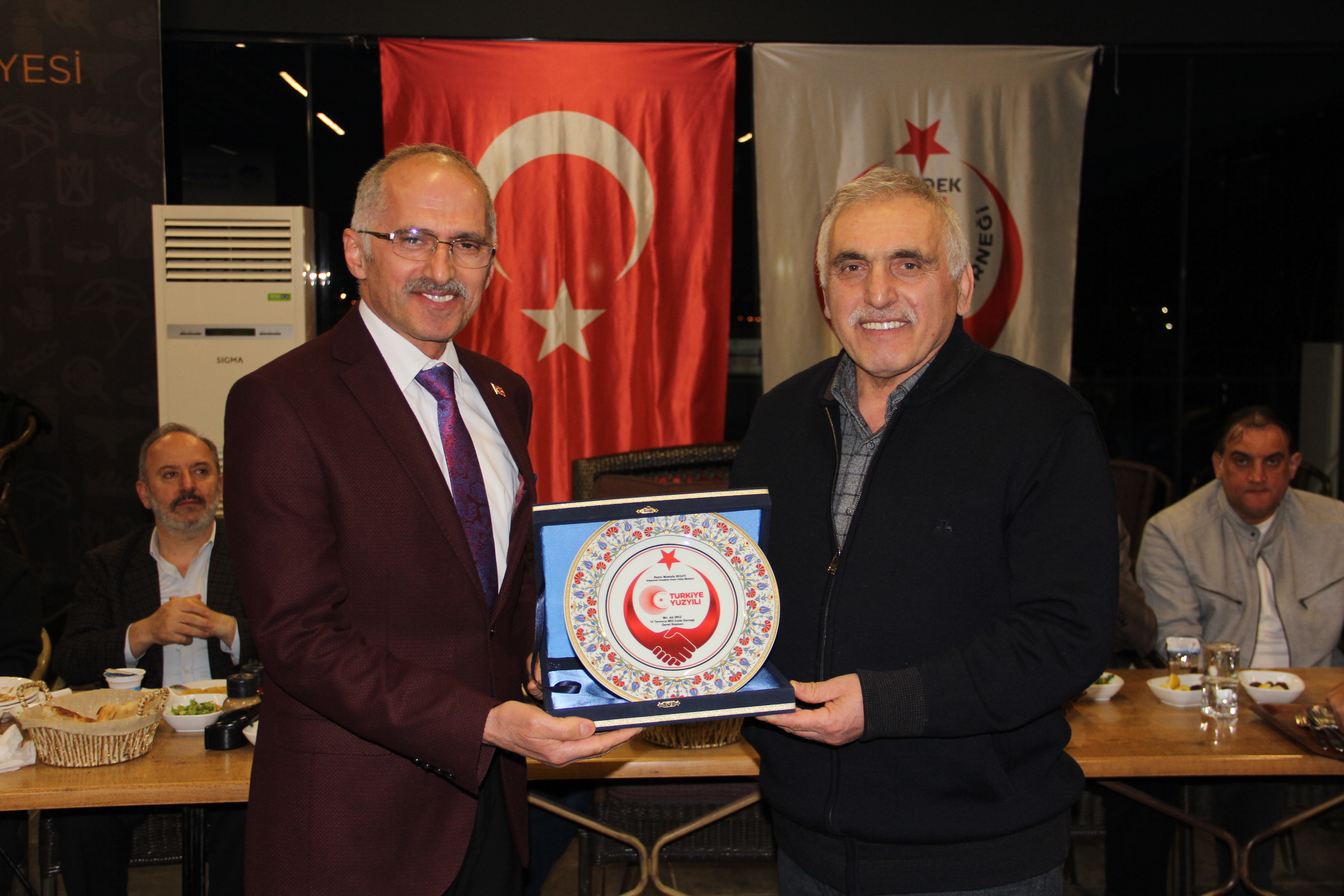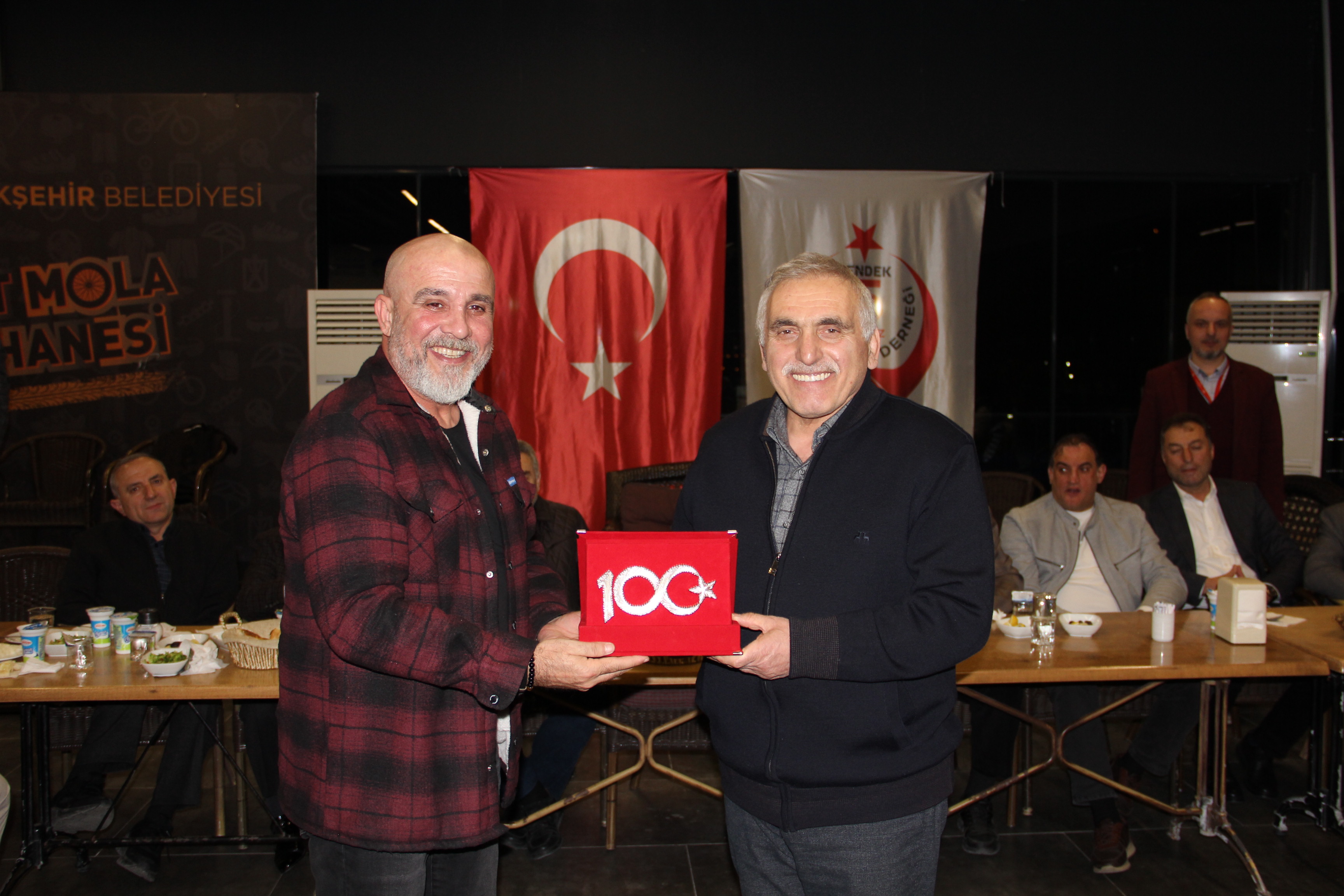 TABLO VE SEMBOL HEDİYE EDİLDİProgramın sonunda genel başkan Ali İnciye Halk Eğitim öğrencileri tarafından yapılmış 15 Temmuz tablosu ile 100 yıl sembolü armağan edildi.