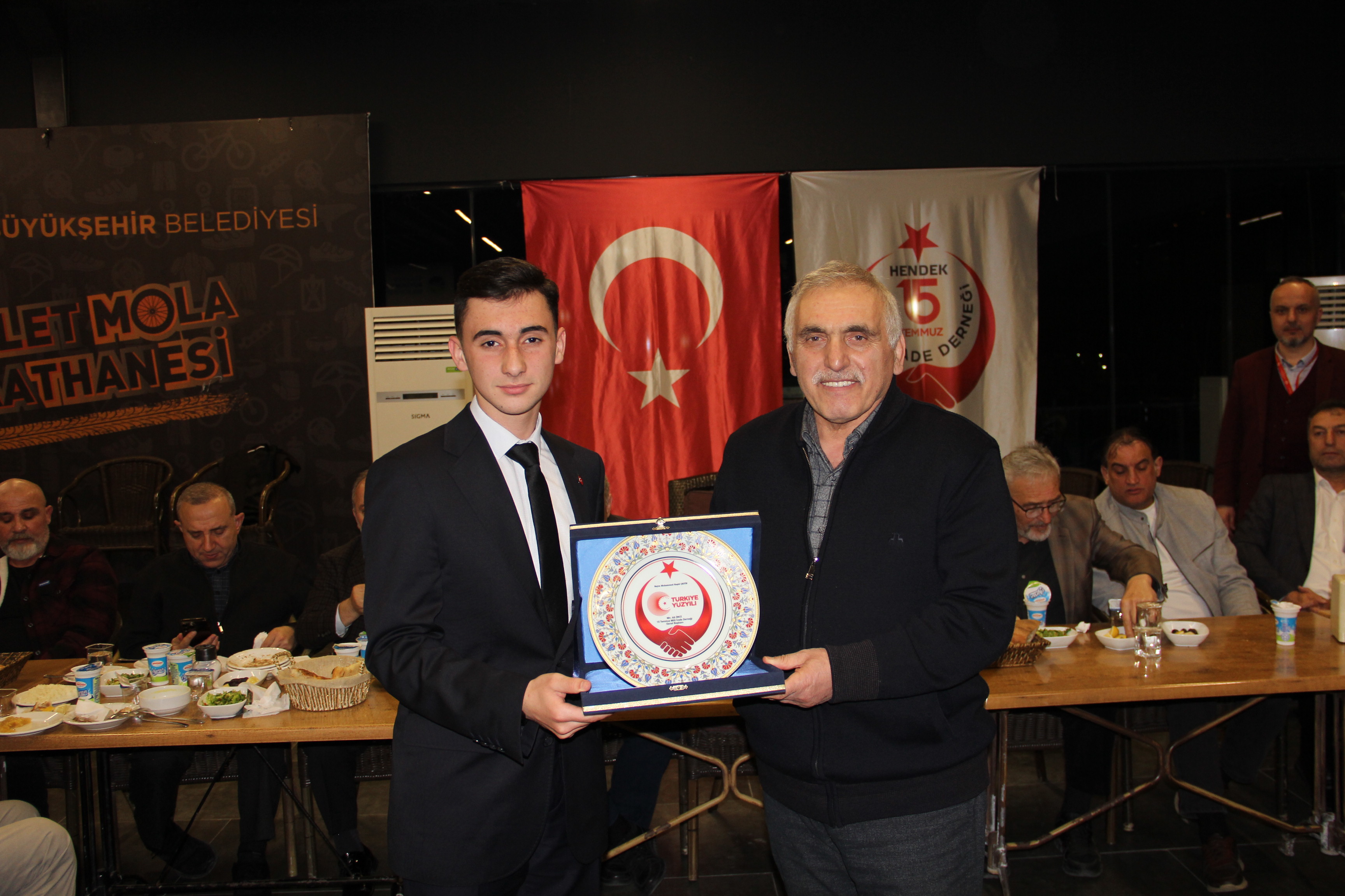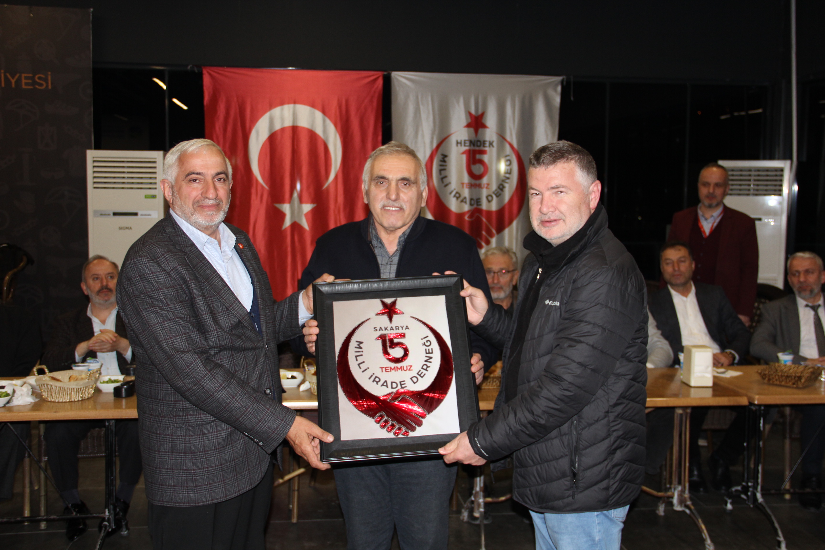 PLAKET VERİLDİMilli İrade Derneği Genel Başkanı Ali İnci, selamlama konuşmasının ardından İl Milli Eğitim müdür yardımcısı Yakup Kalaycı, Adapazarı İmam Hatip Proje okulunun müdürü Mustafa Bulut, Muhammed Raşit Çetin ve Furkan Esat Çalışkan’a 15 Temmuz Derneği plaketlerini takdim etti.