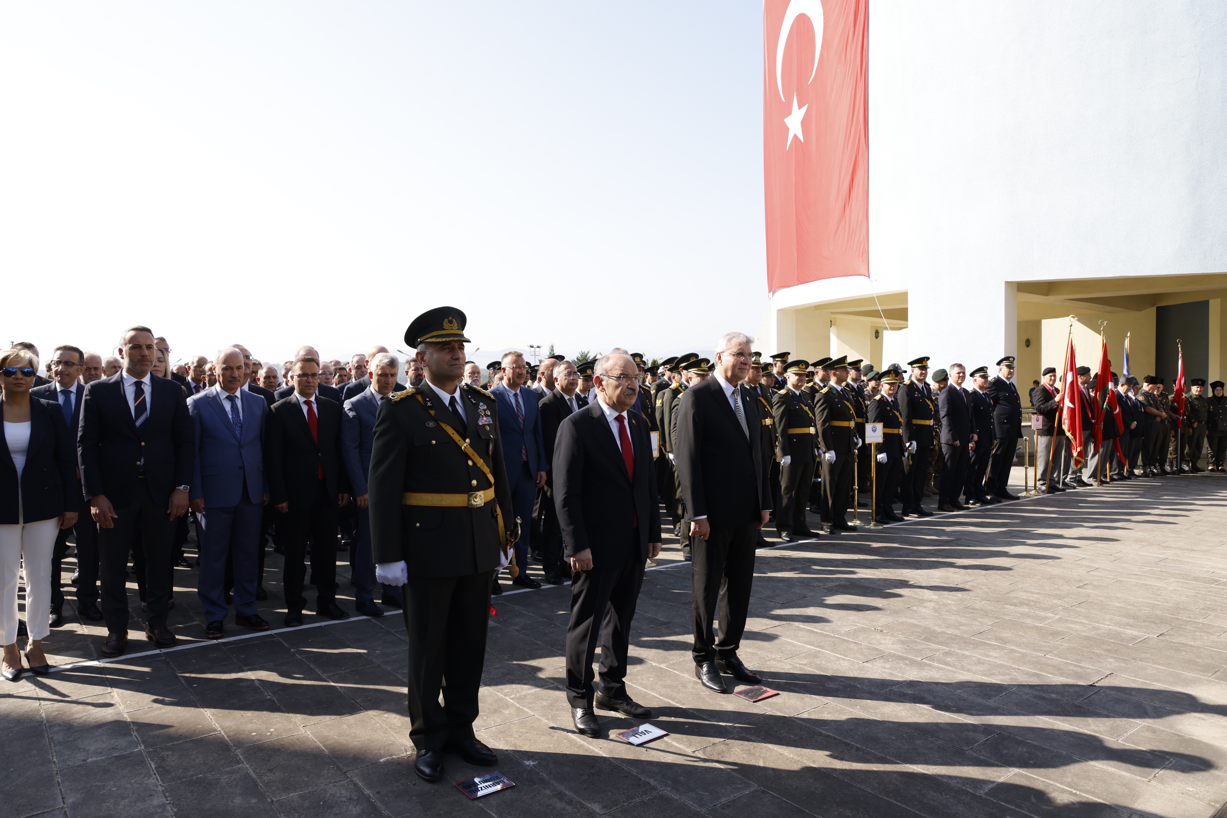 Vali Karadeniz’in Atatürk Anıtı’na çelenk sunmasının ardından saygı duruşunda bulunuldu ve İstiklal Marşı okundu.