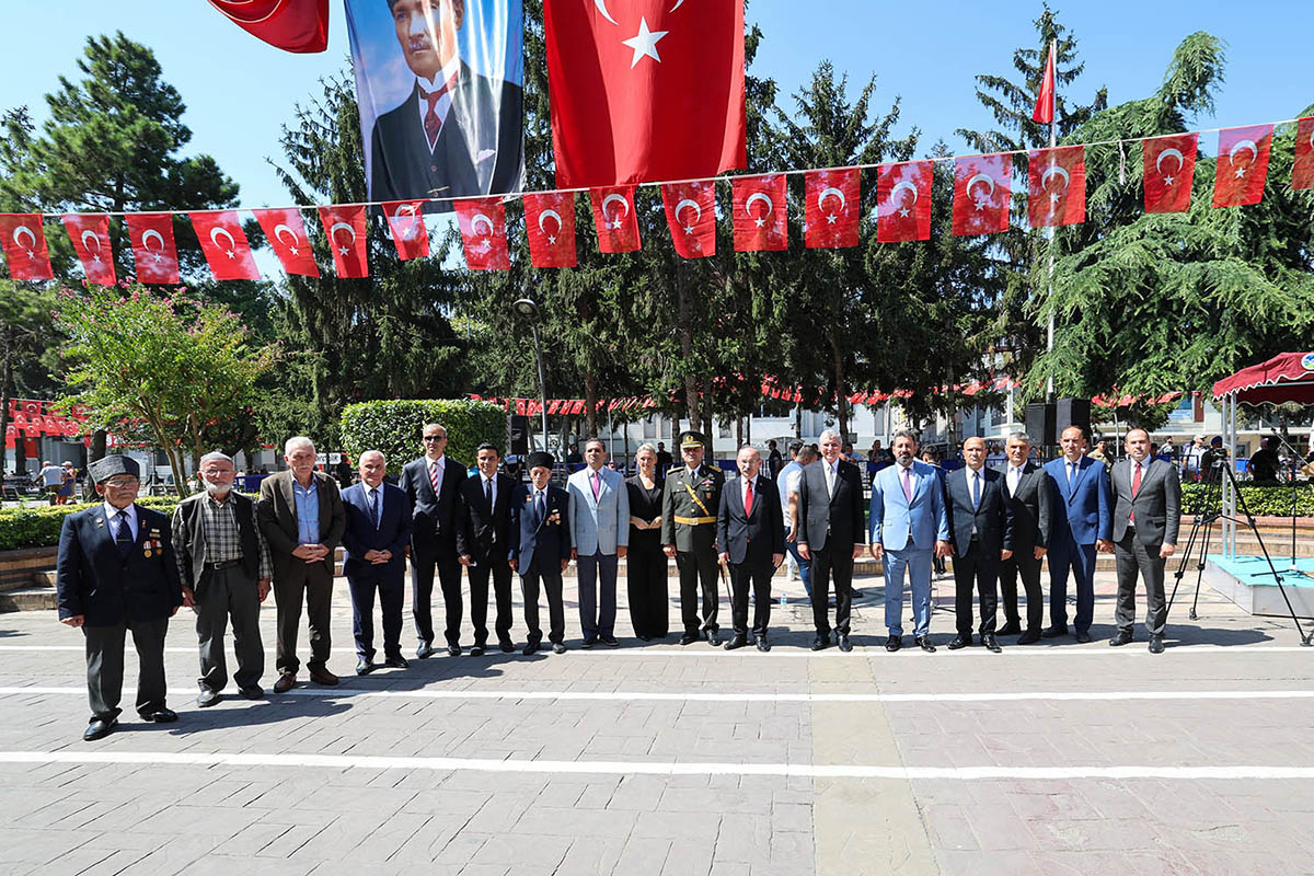 Törende bir konuşma yapan Sakarya Garnizon Komutanlığı adına Piyade Üsteğmen Volkan Karlıdağ Karlıdağ; "Üzerimizde dolanan kara bulutlar üstünde ya istiklal ya ölüm denilerek aydınlığın yolu çizilmiştir. Mustafa Kemal Atatürk düşman kuvvetlerinin önemli bir bölünü düşmanları denize dökmüştür. Türk ordusu çok kısa sürede düşmanları imha etmiştir. Milli egemenliğe dayanan Atatürk ilkeleri Türk silahlı kuvvetlerimize rehber olmaya devam edecektir. Şehitlerimizi rahmetler anıyor ve şükranlarımızı sunuyoruz." dedi.