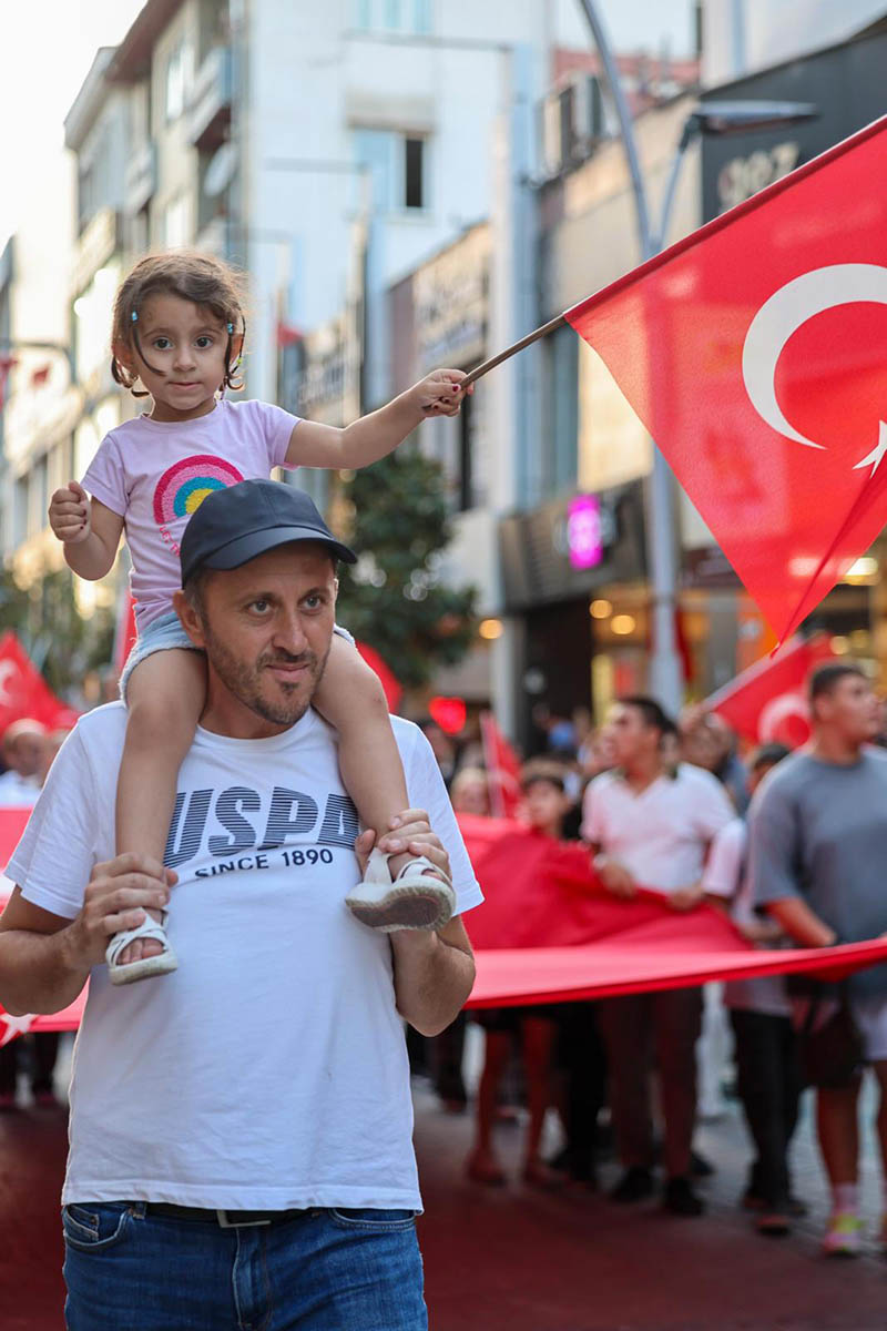 Sakarya Büyükşehir Belediye Başkanı Yusuf Alemdar, 15 Temmuz hain darbe girişiminin 8'inci yıldönümünde Çark Caddesi’ndeki Demokrasi Yürüyüşü'nde Sakaryalılarla birlikte yürüdü.