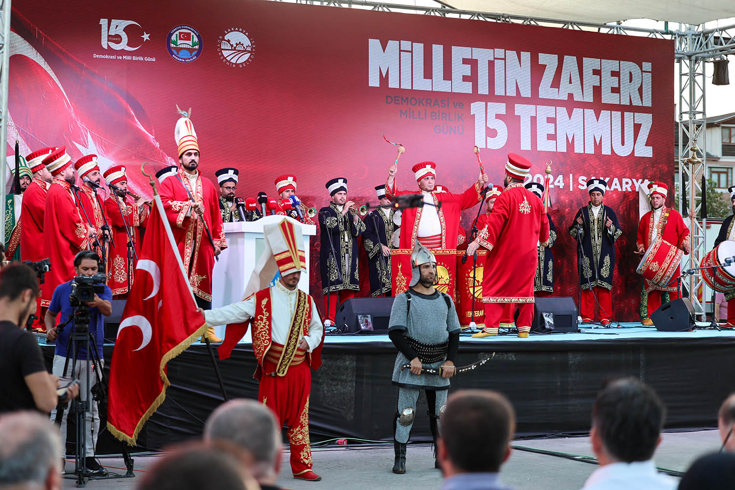 Sakarya'da darbecilere karşı yazılan demokrasi zaferinin hatırlandığı program, Büyükşehir Kent Orkestrası'nın zafer marşları çalmasıyla başladı.