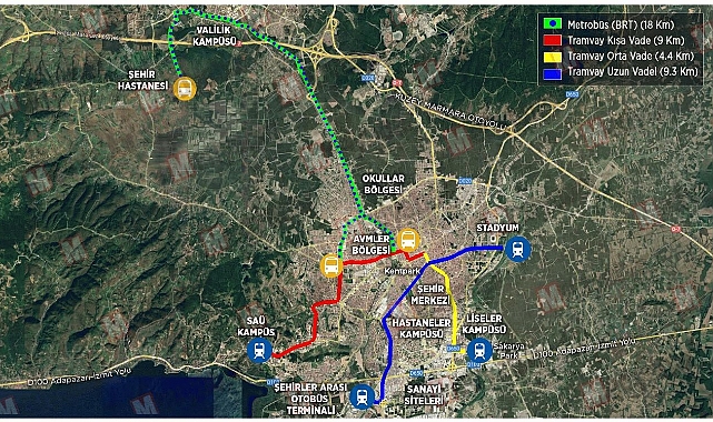 Ulaştırma Bakanlığı’nca yapılacak Raylı sistem hattı Atatürk Bulvarı'ndan Sakarya Üniversitesi Kampüsüne uzanacak.