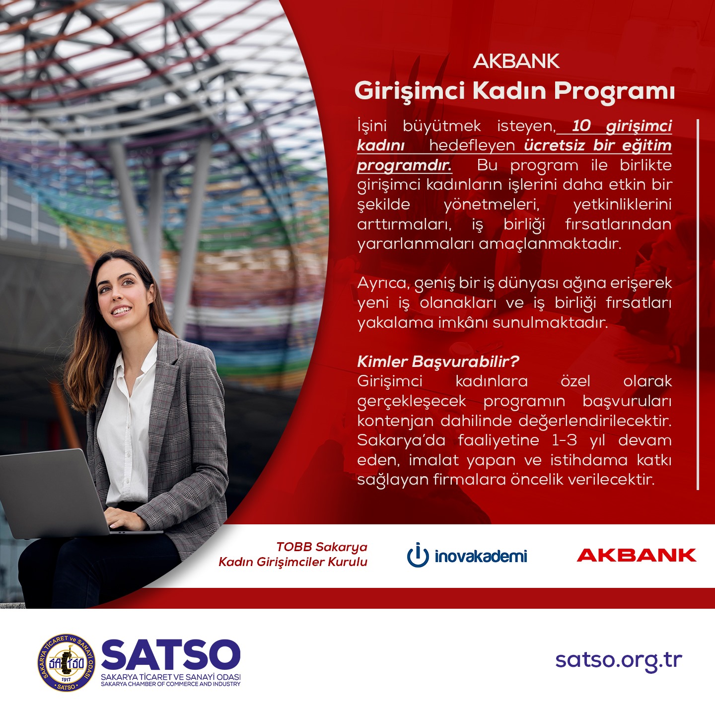 Akbank, Sakarya Ticaret ve Sanayi Odası ile TOBB Sakarya İl Kadın Girişimciler Kurulu ‘Akbank Girişimci Kadın Programı’ nı başlatıyor.