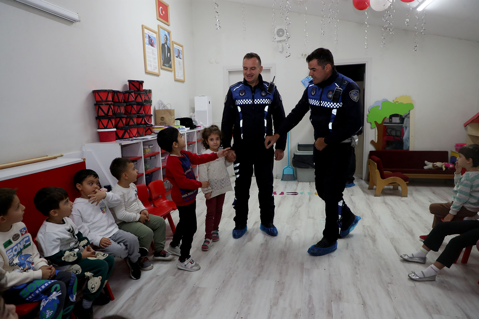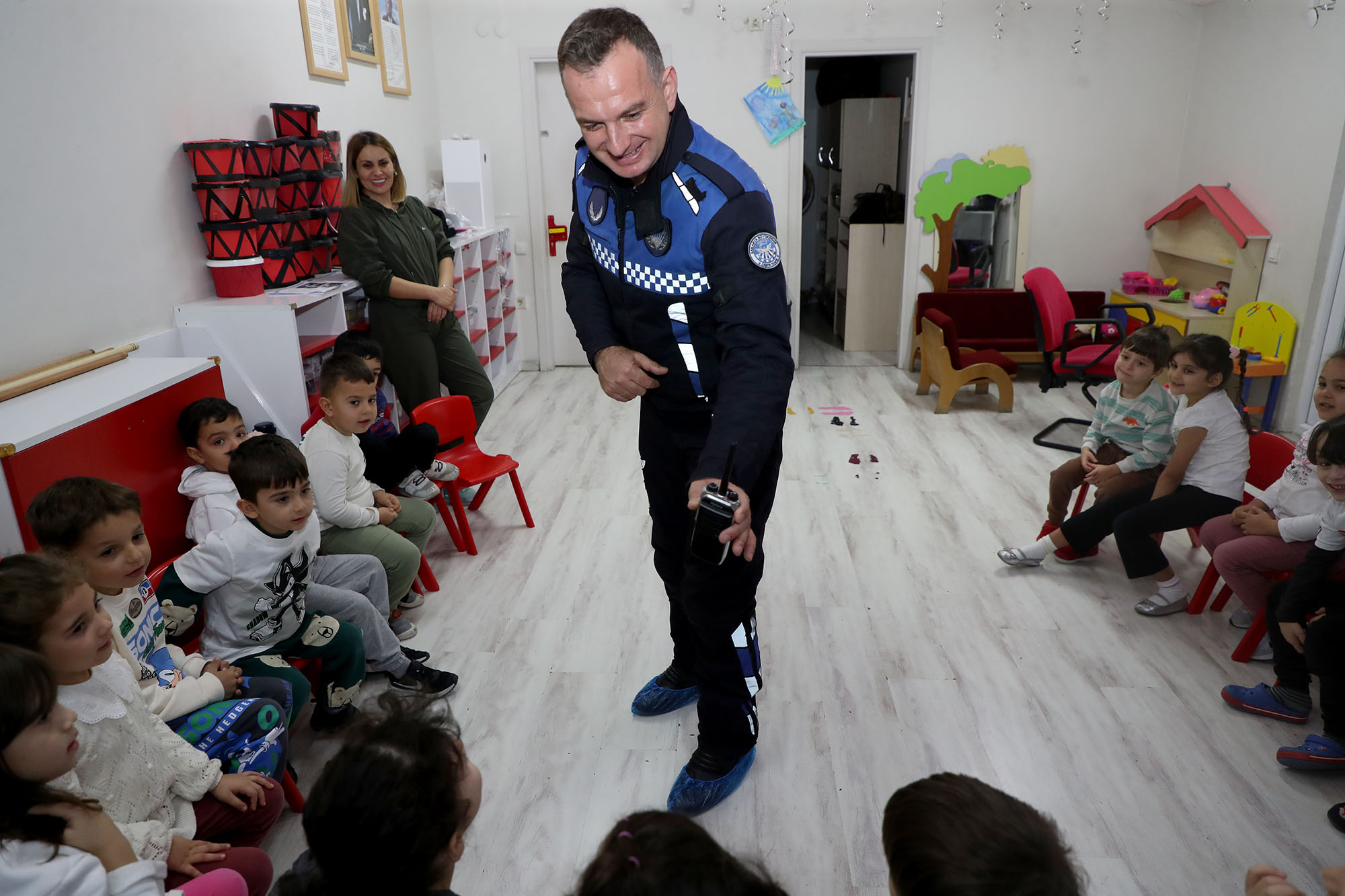 Eğlence ve eğitim bir aradaTrafik zabıtaları tarafından çocuklara trafik ışıkları, yaya geçitleri ve güvenli yolculuk konularında bilgi verildi. İnteraktif etkinlikler ve görsellerle çocukların dikkatini çekerek, önemli trafik bilgilerini eğlenceli bir şekilde aktardı.Ayrıca, çocuklara çeşitli trafik işaretleri hakkında bilgi verilerek, bu işaretlerin ne anlama geldiği uygulamalı olarak gösterildi.