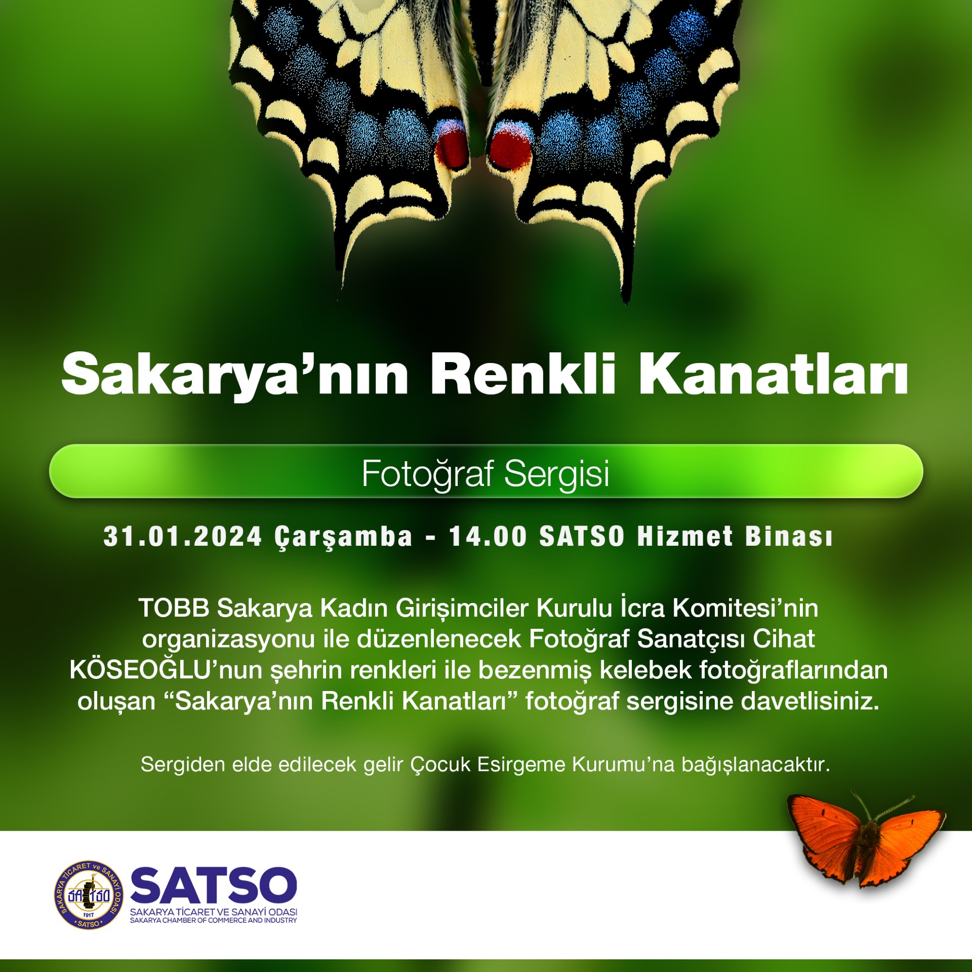31 Ocak Çarşamba günü saat 14.00’te SATSO Fuaye alanında açılışı gerçekleştirilecek olan sergiden elde edilecek tüm gelir ise Sakarya Kadın Girişimciler Kurulu organizasyonu ve Sakarya Aile Sosyal Politikalar İl Müdürlüğü aracılığı ile Çocuk Esirgeme Kurumu’na kayıtlı çocukların ihtiyaçları için ayrılacak.