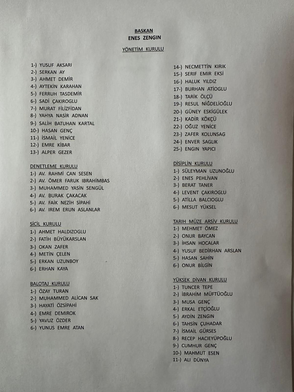 ALEMDAR GÖRÜŞMESİ SONRASI ADAYLIK AÇIKLANMIŞTISakarya Büyükşehir Belediye Başkanı Yusuf Alemdar ile yapılan görüşmenin ardından başkanlığa aday olan Enes Zengin’in yönetim listesinde iş dünyasından ve spor camiasından isimler yer aldı. Zengin, aynı zamanda Sakaryaspor Büyükşehir Belediyesi Spor Kulübü (SBBSK) Başkanı olarak görev yapıyordu.