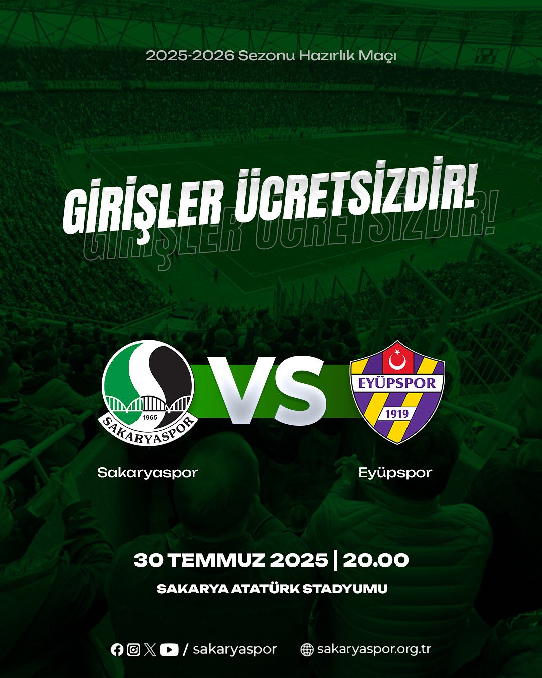 Yeşil-siyahlılar, yeni sezon öncesi hazırlıklarını sürdürürken, bu önemli karşılaşmada taraftarlarının desteğini yanlarında görmek istiyor. Yönetim tarafından alınan karar doğrultusunda, Sakaryaspor – Eyüpspor maçı seyircilere ücretsiz olarak açıldı.
