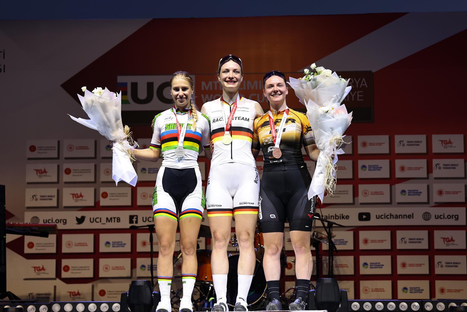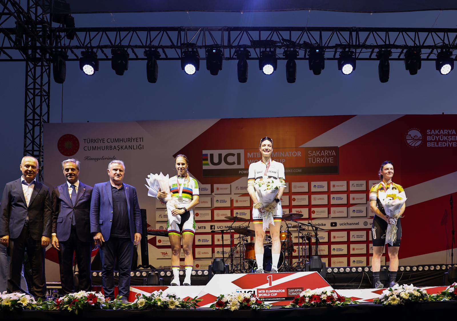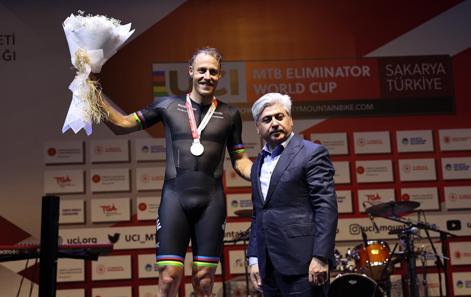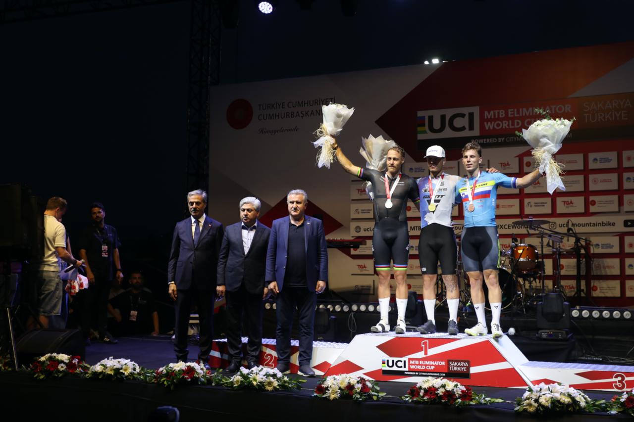 Üç farklı kıtada, altı farklı şehirde düzenlenen 2025 MTB Eliminatör Dünya Kupası’nın dördüncü ayağı Sakarya’da koşuldu.20 ülkeden 100’ü aşkın sporcuCumhurbaşkanlığı himayelerinde Avrupa’nın en kapsamlı bisiklet tesisi olan Ayçiçeği Bisiklet Vadisi’nde gerçekleştirilen yarışlar adrenalin, heyecan ve coşkuyu bir araya getirdi. Dünyanın en iyi bisikletçilerin pedal çevirdiği yarışlara 20 farklı ülkeden 100’ü aşkın sporcu katıldı.Dünya Kupası içinDayanıklılık, strateji ve sürüş becerisinin ön planda olduğu yarışta sporcular, Dünya Kupası puanları için ter döktü. Bisiklet Vadisi’nin türlü engellerle dolu bir kilometrelik parkurunda şampiyonluk için pedal çeviren sporcuları, tribünde 30 bini aşkın sporsever ile 105 ülkeden canlı yayınla milyonlar izledi.Şampiyonlar belli olduNefes kesen yarışları erkeklerde Slovenyalı Jakub Klemencic kazanırken ikinciliği Alman pedal Simon Gegenheimer, üçüncülüğü ise Hollandalı sporcu Jeroen Van Eck elde etti.Kadınlarda ise birinciliği Alman pedal Marion Fromberger kazanırken ikinciliği ise sakarya Büyükşehir’in Dünya Şampiyonu sporcusu Mariia Sukhopalava elde etti ve Hollandalı Didi De Viries ise üçüncü oldu.Podyuma çıkan sporculara ödüllerini ise Gençlik ve Spor Bakanı Dr. Osman Aşkın Bak, Büyükşehir Belediye Başkanı Yusuf Alemdar ve Türkiye Bisiklet Federasyonu Başkanı Emin Müftüoğlu takdim etti.“Sakarya spor şehri olma yolunda ilerliyor…”Yarışları tribünden takip eden Spor Bakanı Osman Aşkın Bak, müsabakaların sonunda kazanan sporcuları tebrik etti. Bakan Bak, “Sakarya spor şehri olma yolunda hızlı ilerliyor. Güzel bir organizasyon oldu. Büyükşehir Belediyemize teşekkür ederim, başarılı bir organizasyon gerçekleştirdiler” dedi.“Bizi yalnız bırakmayan sporseverlere teşekkürler”Başkan Yusuf Alemdar ise, “Sakarya’mız yine dünya sahnesinde çok önemli bir mücadeleye sahne oldu ve tribünlerimiz de binlerce misafirimizle dolup taştı. Biz bu başarıyı taçlandırmak, şehrimizi gurur kaynağı haline getirmek için gayretle çalışacağız. Bugün burada bizleri yalnız bırakmayan sporseverlere teşekkür ederim” ifadelerini kullandı.Konserle finalTürkiye’nin sevilen ses sanatçılarından Emre Fel, müthiş sahne performansıyla Bisiklet Vadisi’ni dolduran 30 bini aşkın sporsevere müzik dolu bir gece yaşattı.Sakarya etabının ardından yarışlar Brezilya ve İspanya'da devam edecek. İspanya’da düzenlenecek final etabıyla birlikte 2025 MTB Eliminatör Dünya Kupası’nda sezon tamamlanmış olacak.