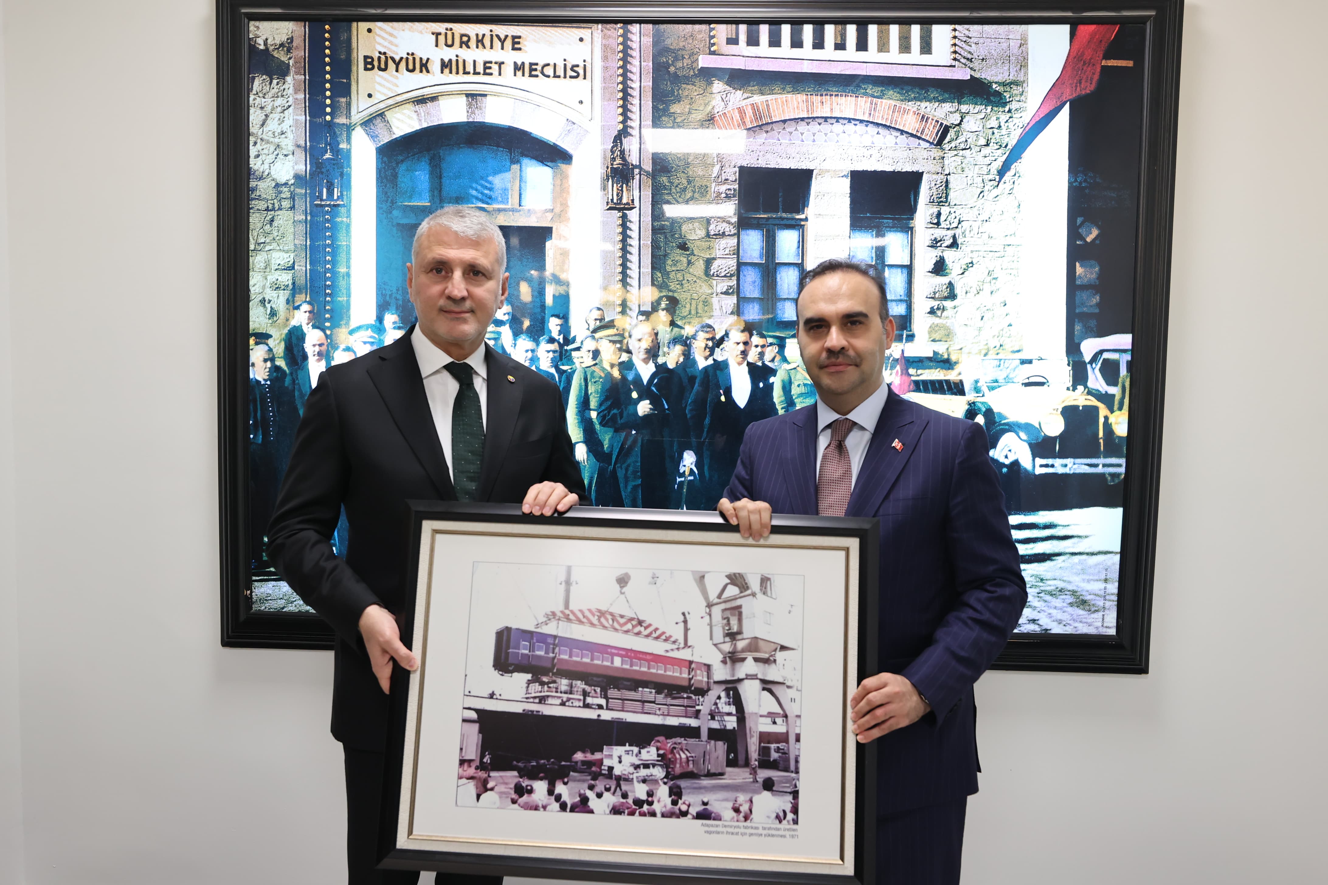 Program sonunda Başkan Altuğ tarafından Bakan Kacır’a Sakarya’nın ilk vagon ihracatının tarihi fotoğrafı hediye edildi.