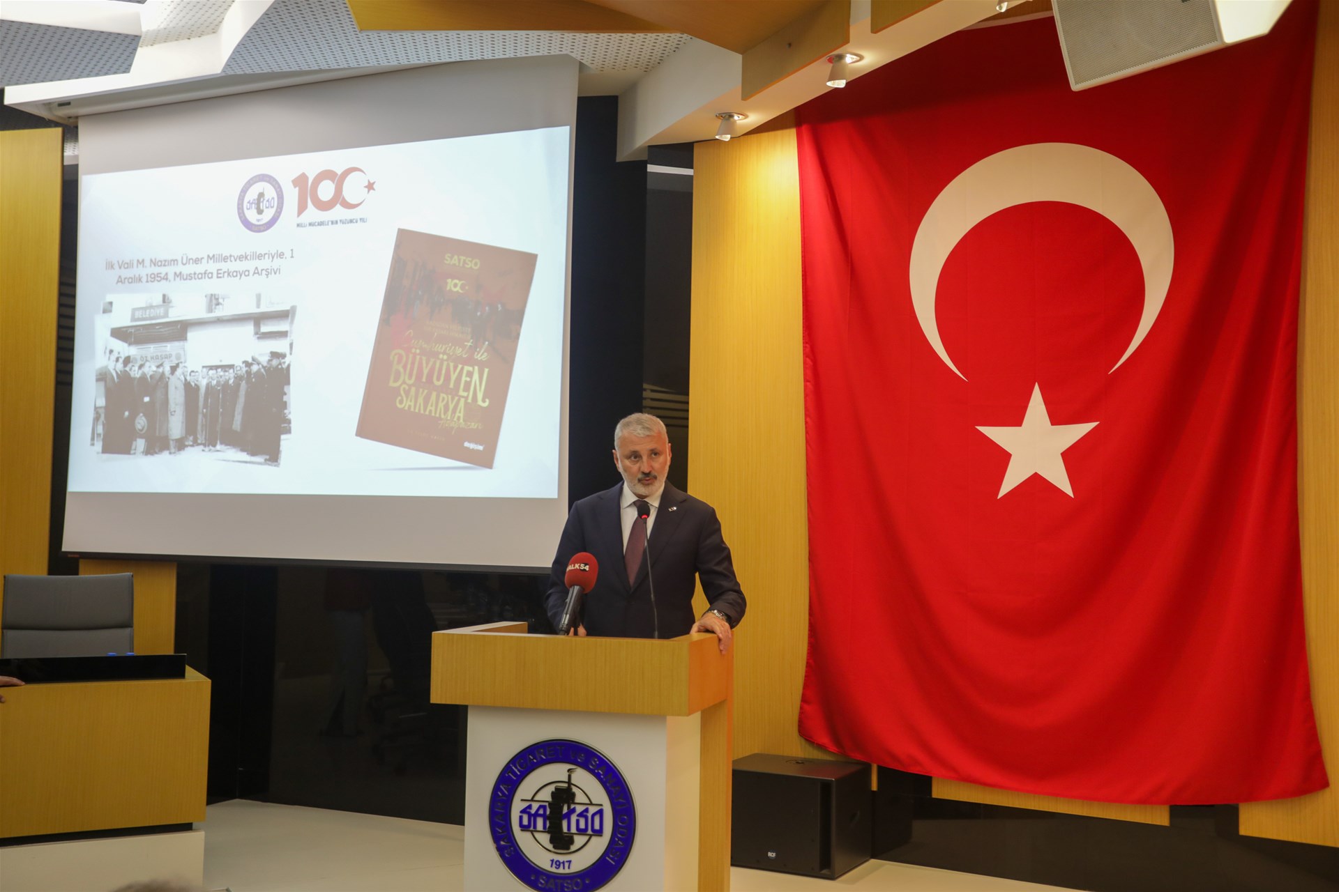 SATSO Yönetim Kurulu Başkanı A. Akgün Altuğ; “Cumhuriyetimizin 100. yılını gururla kutladığımız bir haftadayız; heyecanlıyız, çok gururluyuz. SATSO olarak 100. Yılın gururuna yakışır şekilde etkinlikler tertipledik. Sakarya; göçlerle kurulmuş kadim şehirdir. Farklı kültürlerin bir arada uyum içinde yaşayarak bu çeşitliliği memleket aidiyetine dönüştüren bunun yanı sıra stratejik konumuyla da her zaman ciddi bir öneme sahip olan, ülkemizin kuruluş ve kurtuluş serüveninde ismi zaferlere verilen önemli bir kenttir.Bizler yılda 2-3 kez fuaye alanımızı Sakaryalı sanatçılarımız ve derneklerimize açıyoruz. Burada çeşitli sergiler organize ediyoruz. Bu önemli haftada da SAGÜSAD iş birliğiyle “Dünden 100’e Sakarya” sergisini organize ettik. Oldukça anlamlı bir etkinlik oldu. SAGÜSAD Başkanı Ünal Dabak ve dernek üyelerine, fotoğrafları çeken sanatçılarımıza ve emeği geçen herkese teşekkür ediyorum.“Cumhuriyetle Büyüyen Sakarya Kazadan Vilayete Bir Başarı Hikayesi” kitabımız da Odamız tarafından hazırlanan ve Tarihçi Yazar Dr. Resül Narin'in kaleme aldığı, şehrimizin tarihine rehber olacak nitelikte bir yayın olarak hayata geçti. Ülkemizin 1 asrını geride bırakırken; 20. Yüzyıla önemli bir birikim, güçlü bir iktisadi duruş ile giren dönemin İzmit sancağının da en parlak kazalarından olan Adapazarı’mızın il oluş dönemini, cumhuriyetin getirdikleriyle harmanlayarak sizlerle paylaşmak istedik. Bu anlamda bugünden düne işaret etmek ve geleceğe iz bırakmak sorumluluğu ile 1923-1954 tarihleri arasındaki Sakarya'nın Cumhuriyet döneminde geçirdiği önemli değişimleri ve gelişmeleri ele alan bir kaynak kitap hazırladık. Bu kıymetli çalışmamızın hazırlanmasında emeği geçen yazarımız başta olmak üzere yayın komisyonumuz ve kültür komisyonumuzun değerli başkanı ve üyeleri ile çalışma arkadaşlarıma katkılarından dolayı teşekkür ederim.” dedi.Etkinlerde konuşan SAGÜSAD Başkanı Ünal Dabak, 54 tane fotoğraf ile ilgili sinevizyon gösterisi hazırlandığını ve Bursa'da 4 Kasım’da gösterimini yapacaklarını belirterek emeği geçen herkese ve SATSO Yönetimine teşekkür etti.