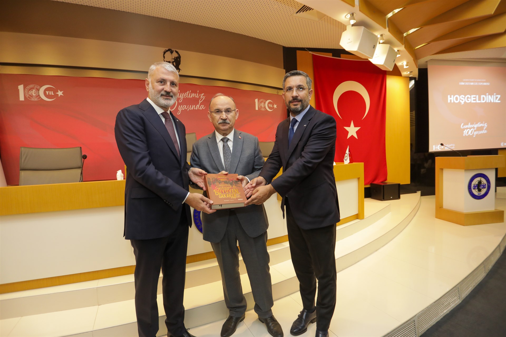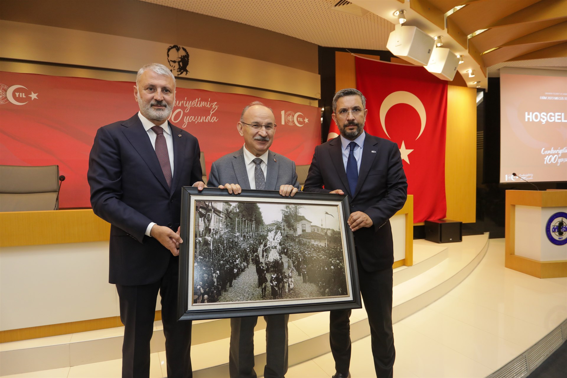 Dünden 100’e Sakarya Fotoğraf Sergisi’nde tarihi ve güncel fotoğraflarla Sakarya’nın gelişimi ve dönüşümü sanatsever konukların geçmişle bugünü karşılaştırarak bir yolculuğa çıkması amaçlandı.SATSO’nun Cumhuriyetin 100. Yılına ArmağanıSergi açılış töreninin ardından kitap lansmanına geçildi. SATSO tarafından hazırlanan ve Tarihçi Yazar Dr. Resül Narin'in derleyerek kaleme aldığı Cumhuriyetimizin 100. yılına özel koleksiyon yayın “Cumhuriyetle Büyüyen Sakarya Kazadan Vilayete Bir Başarı Hikayesi” kitabı tanıtımı gerçekleştirildi.