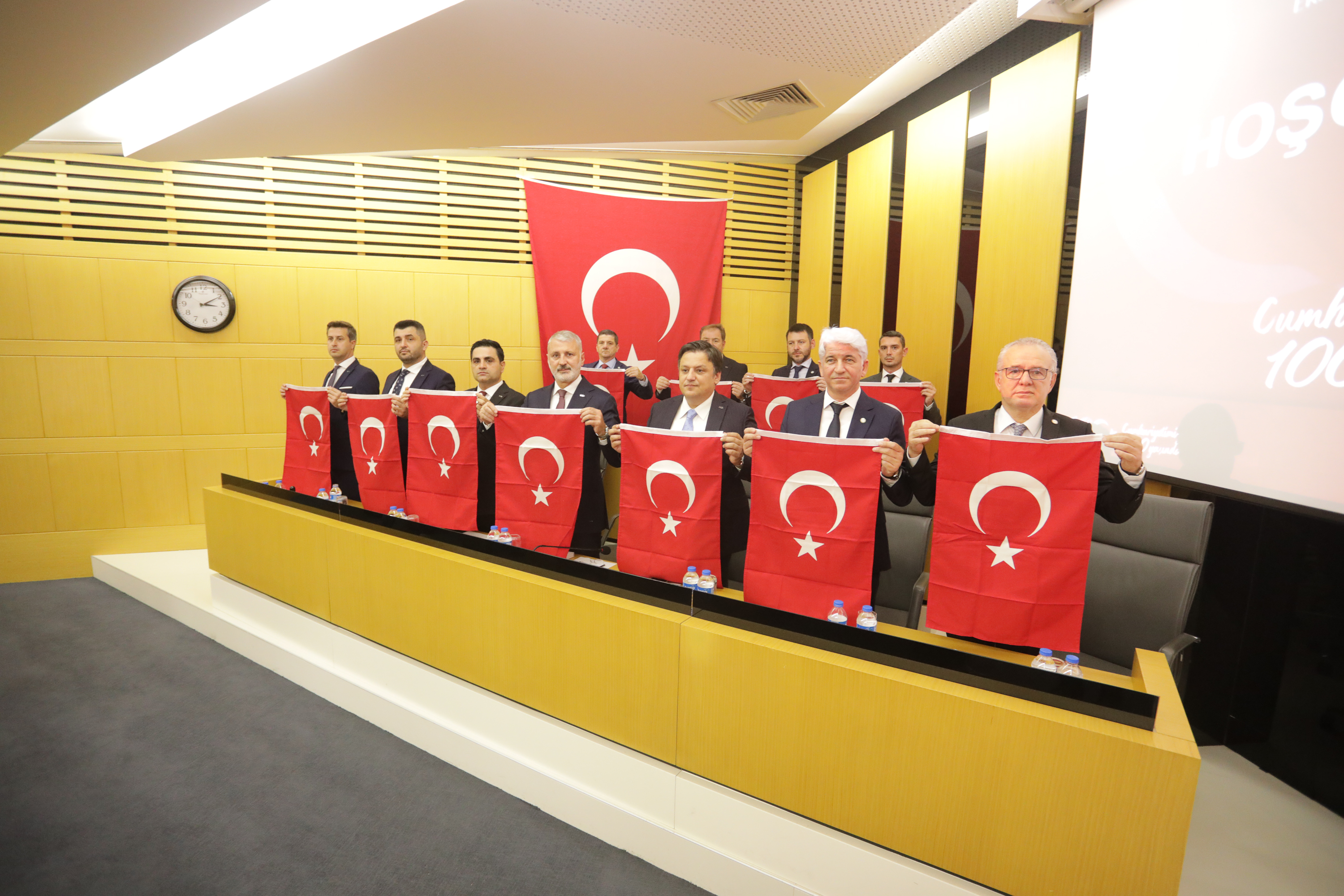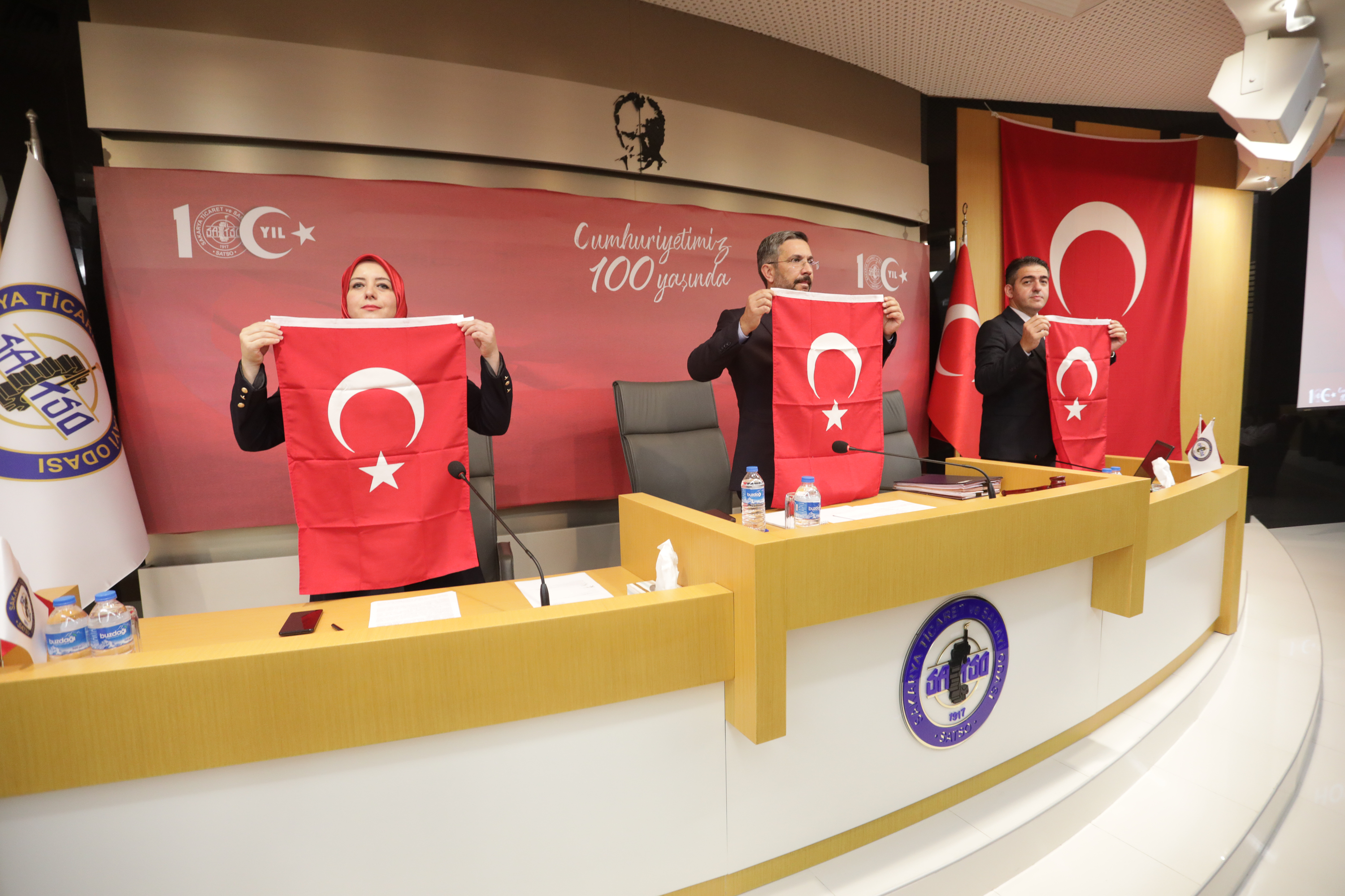 Sakarya Ticaret ve Sanayi Odası Ekim Ayı Olağan Meclis Toplantısı Meclis Başkanı Erdem Ercan Başkanlığında Yönetim Kurulu Başkanı A. Akgün Altuğ, Yönetim Kurulu Üyeleri ve Meclis Üyelerinin katılımıyla Erol Öztürk Hacıeyüpoğlu Meclis Toplantı Salonu’nda gerçekleştirildi. SATSO’dan 100. Yıl’a Bayrak Teması