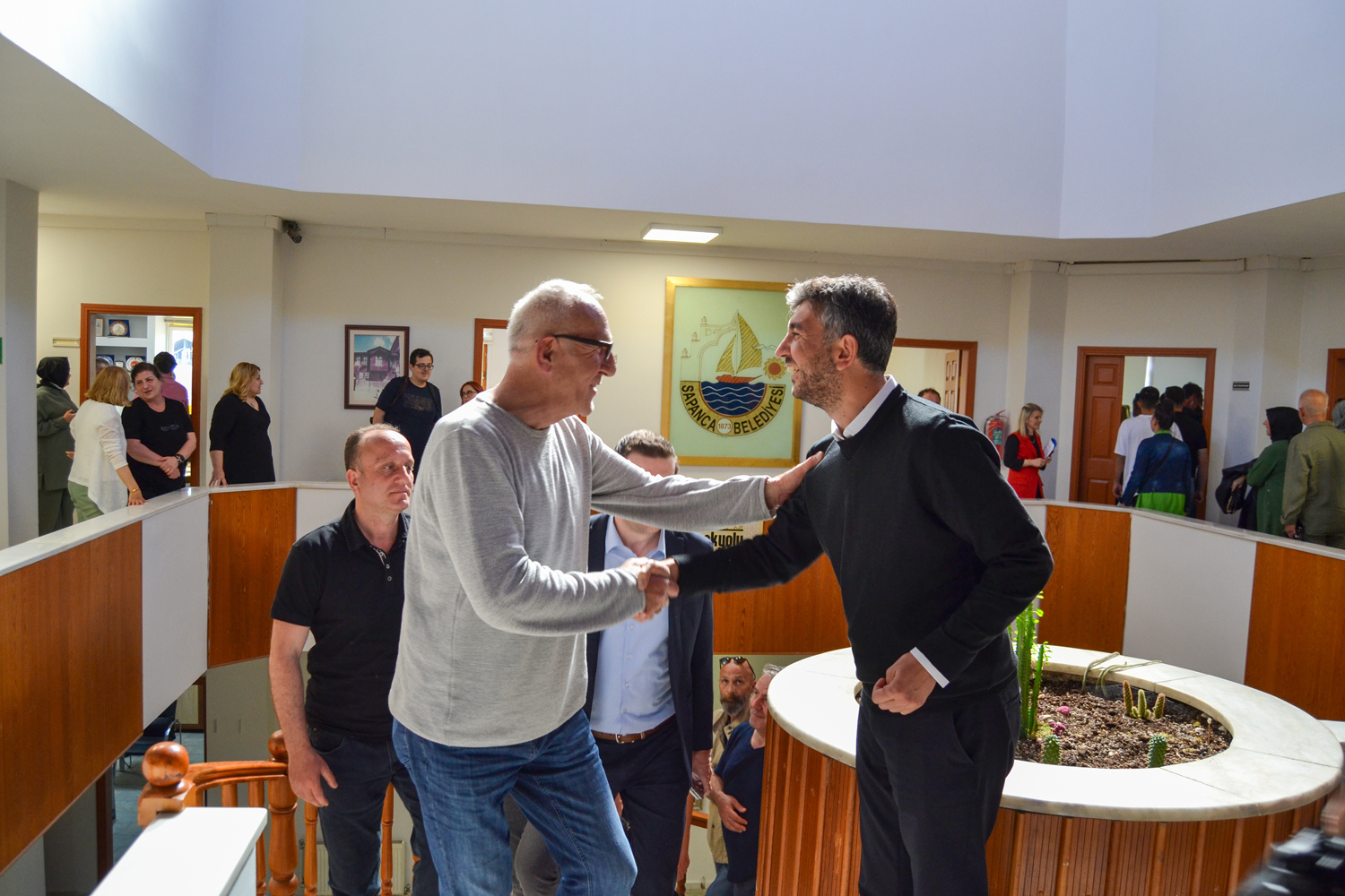 Belediyeye büyük bir kalabalık gurupla gelen SAVİBU üyeleri Başkan Şahin’i alkış ve coşkuyla karşıladılar. SAVİBU Başkanı Ali Sefa Alaçam ve beraberindekilere teşekkür eden Başkan Şahin, “Bu günkü bu ziyaretiniz beni çok mutlu etti gelen herkese öncelikle tek tek teşekkür ediyorum. Biliyorsunuz ki bizler en başından beri plansız ve projesiz bir yapılaşmanın Sapanca’yı felakete sürükleyeceğini belirttik. Gelişimin bir gerçek olduğunu ve gelişimin planlanarak daha sürdürülebilir bir hale gelmesi gerektiğini söyledik. Kaçak yapılaşmayı önlemek ve kontrol amaçlı bir sistem üzerinden takipleri gerçekleştireceğiz. Daha önce her şeyi yapıp belediyeye geliyorlardı, ruhsat istiyorlardı. Yapılması gerekenin tam tersini yapıyorlardı. Oysaki önce belediyeye gelip projelerini sunup uygunluğunu almaları gerekiyordu. Bugünü milat kabul edeceğiz ve artık kaçak yapılaşmaya izin vermeyeceğiz. Bugünden itibaren yeni bir yönetim anlayışıyla ilçemizi yöneteceğiz” dedi.
