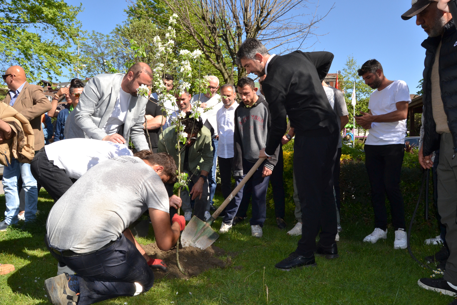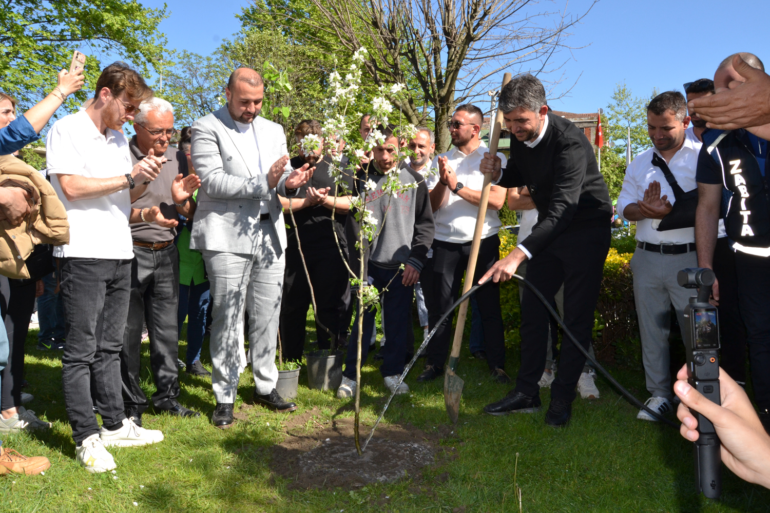 Ziyaret sırasında SAVİBU Başkanı Ali Sefa Alaçam, Sapanca Belediye Başkanı Nihat Arda Şahin’e bin adet meyve fidanı hediye etti. Fidanların kamusal alanlara dikileceğini söyleyen Alaçam, “Derneğimize kayıtlı 2 bin 132 çatı sayımız var. Her bir çatı sayısı için işletmemiz arazisine yeni bir meyve fidanı ağacı dikiyoruz. Bu sayede Sapanca’mızın dört bir yanına 3 bin 132 tane meyve ağacı dikeceğiz. İnşallah bu bir silsile olur. Daha yeşil bir Sapanca olur. Başkanımızın görev süreci boyunca her zaman yanındayız. İnşallah Sapanca’mıza güzel hizmet etmeyi nasip eder. Turizmci bir başkanımızın olması ayrıca bizi mutlu ediyor” dedi. Konuşmaların ardından ziyarete gelenlerle birlikte belediyenin bahçesine meyve fidanları dikildi.