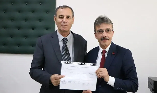AK Parti'nin adayı Rahmi Şengül'e 3.321 oy fark atarak Erenler Belediye Başkanı seçilen Şenol Dinç mazbatasını teslim aldı.