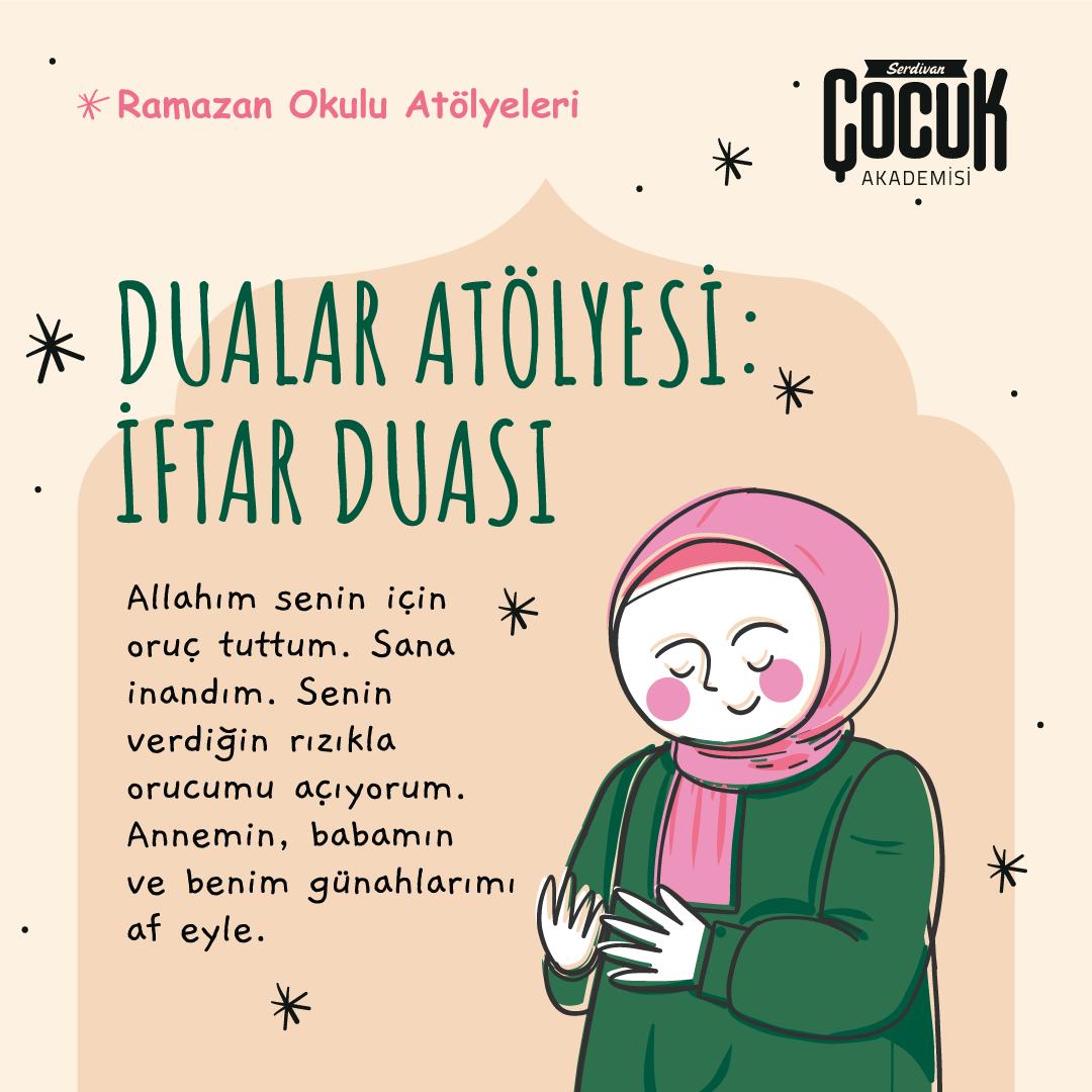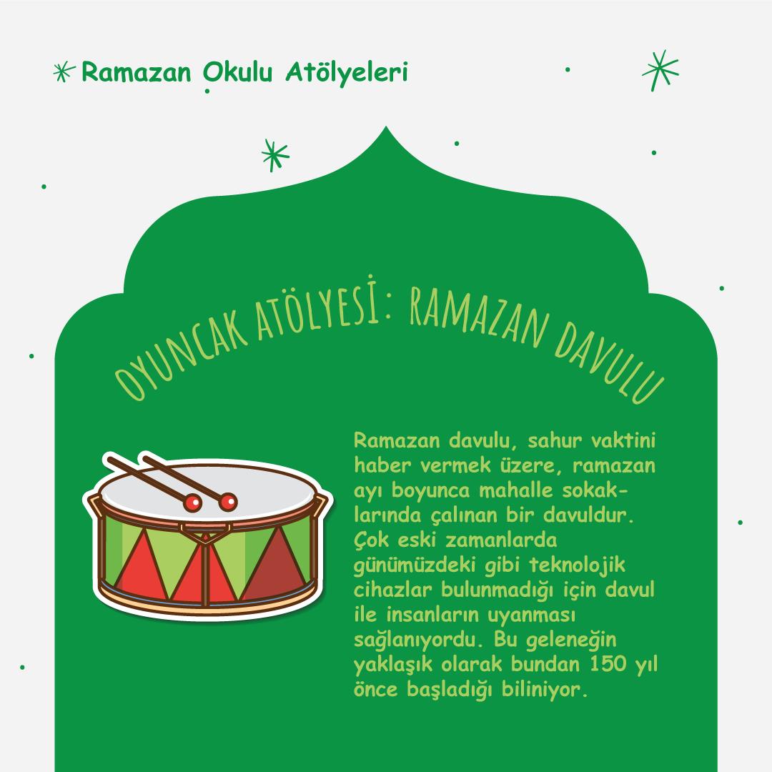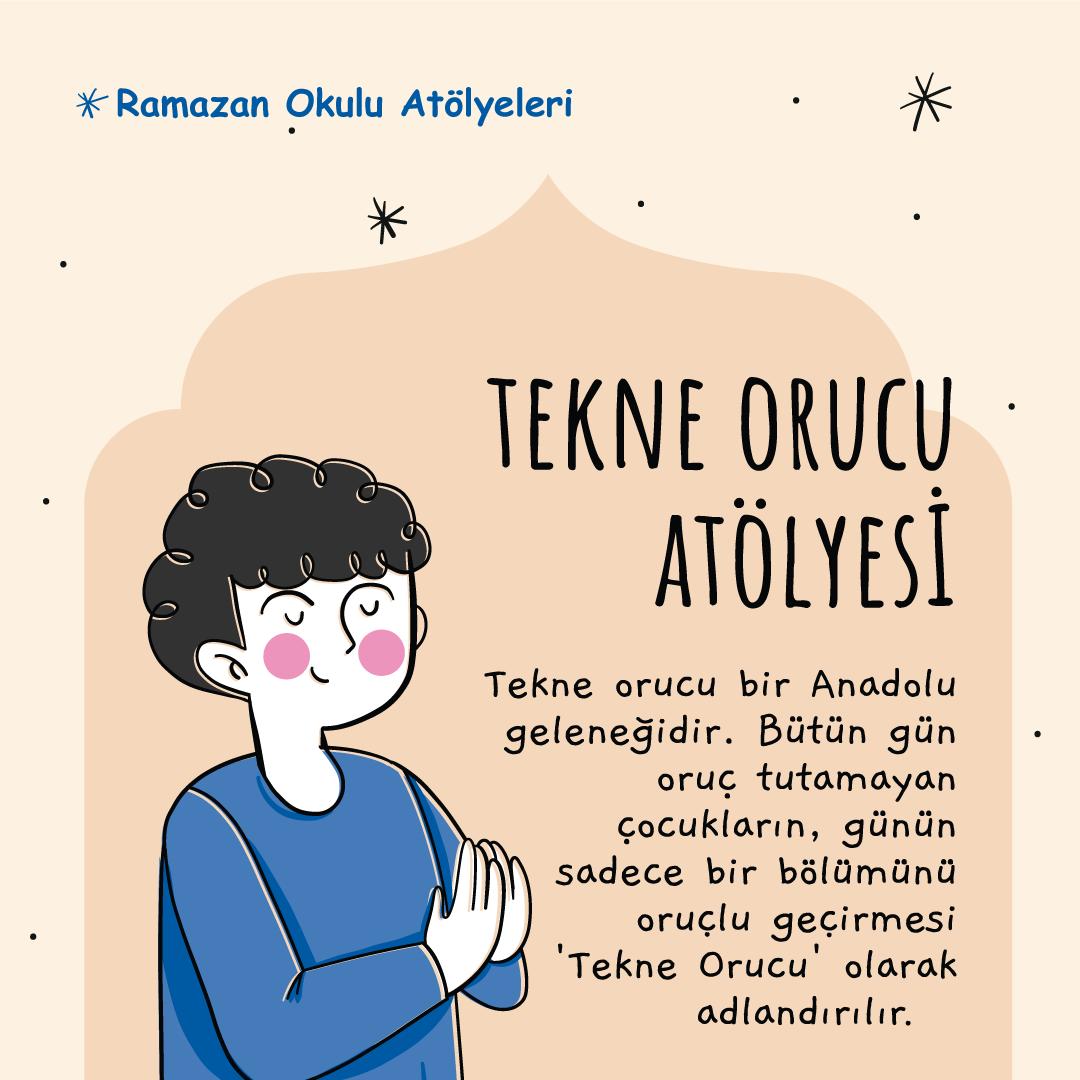 Ramazan ayı boyunca gerçekleştirilecek atölyeler; Ebeveyn-Çocuk Atölyesi, Peygamberler Atölyesi, Hoş Geldin Ramazan Atölyesi, Oyuncak Tasarım Atölyesi, Ramazan Davulcusu Atölyesi, Tekne Orucu Atölyesi, Hadis Atölyesi, Cuma Sünnetleri Atölyesi, Ramazan Terimleri Atölyesi: Teravih, Beceri Atölyesi, Parkur Atölyesi vb. Anadol’unun unutulmaya yüz tutan geleneksel tekne orucu Serdivan Çocuk Akademisi atölyelerinde tekrar hayat buluyor.