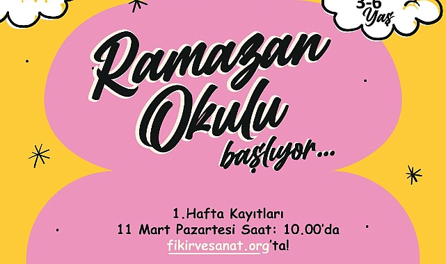 Akademiden yapılan açıklamada, 3-6 yaş çocuklar için Ramazan ayına özel içeriklerle hazırlanan atölyeler Ramazan ayı boyunca devam edeceği bildirildi. Her pazartesi günü saat 10.00'da fikirvesanat.org adresinden kayıtların alınacağı ücretsiz atölyelerde kontenjan sınırı bulunduğu belirtildi.